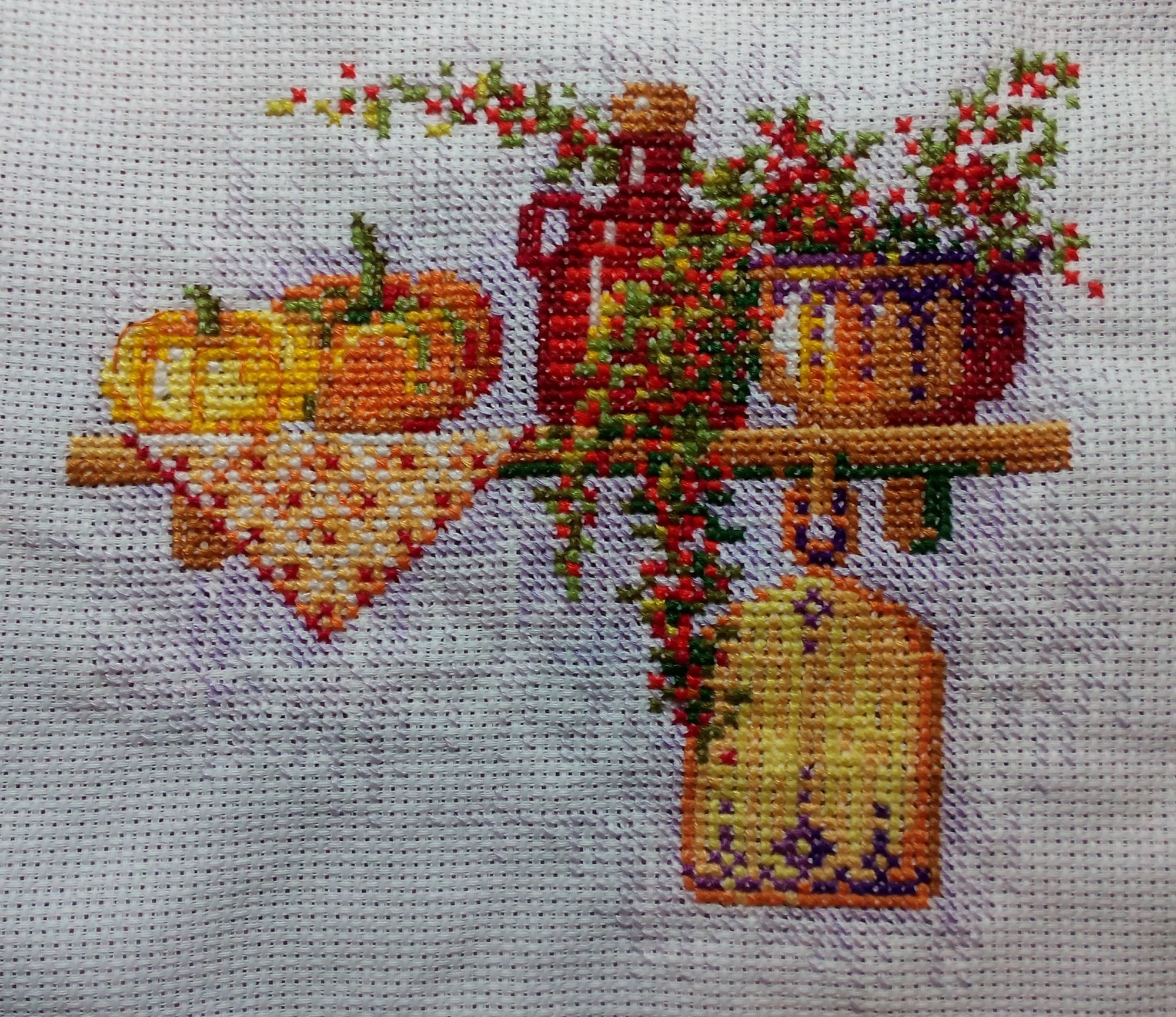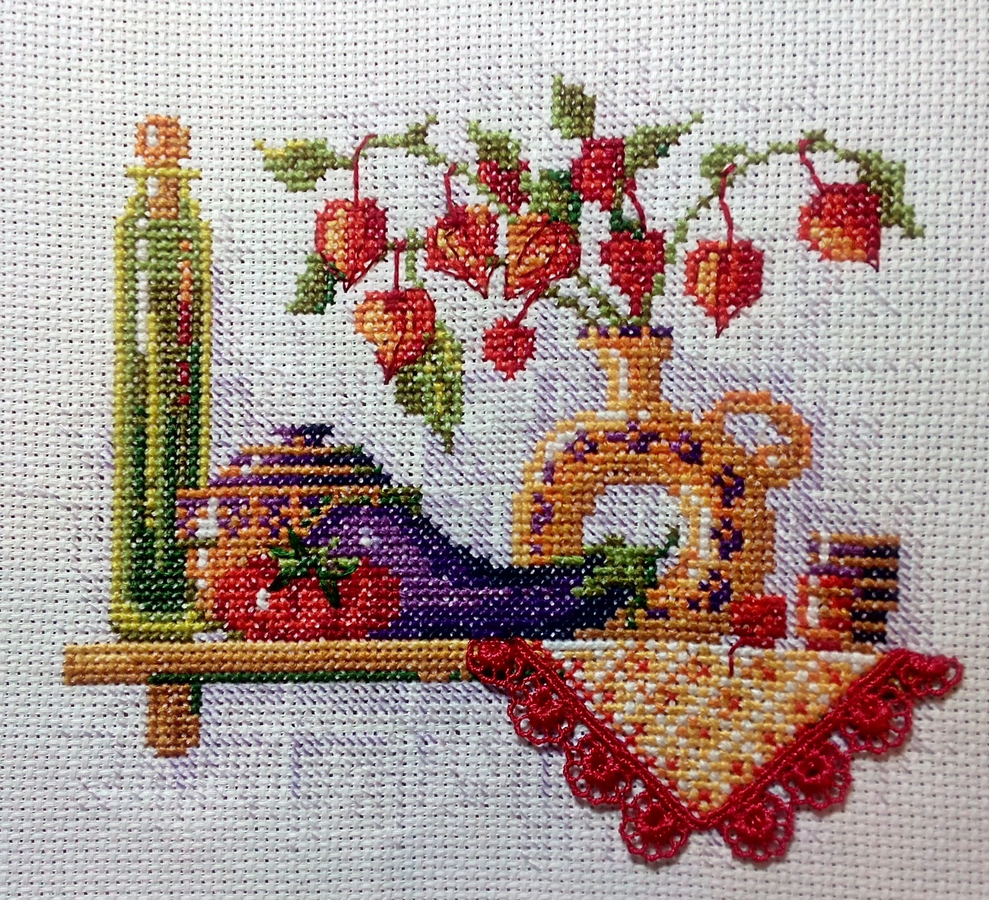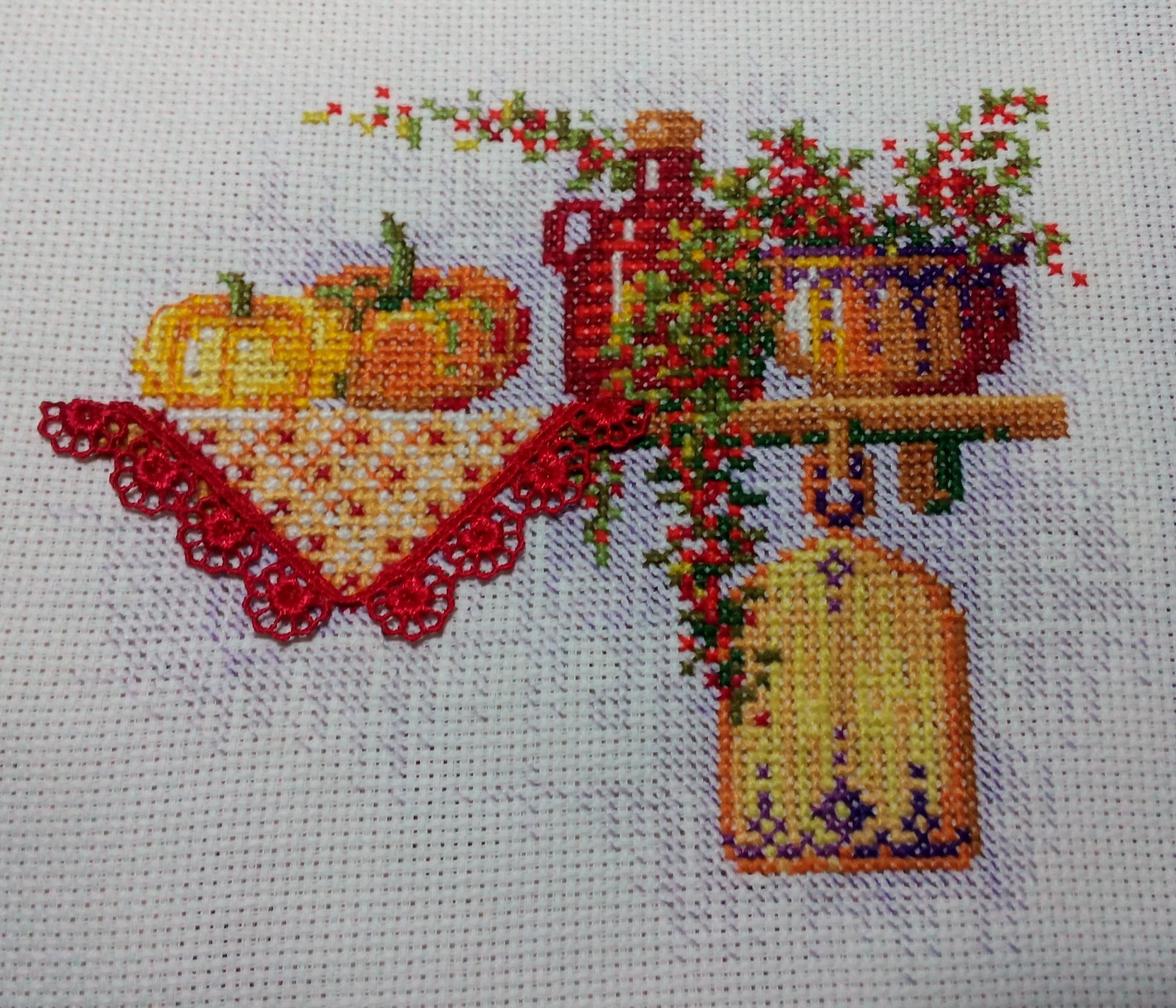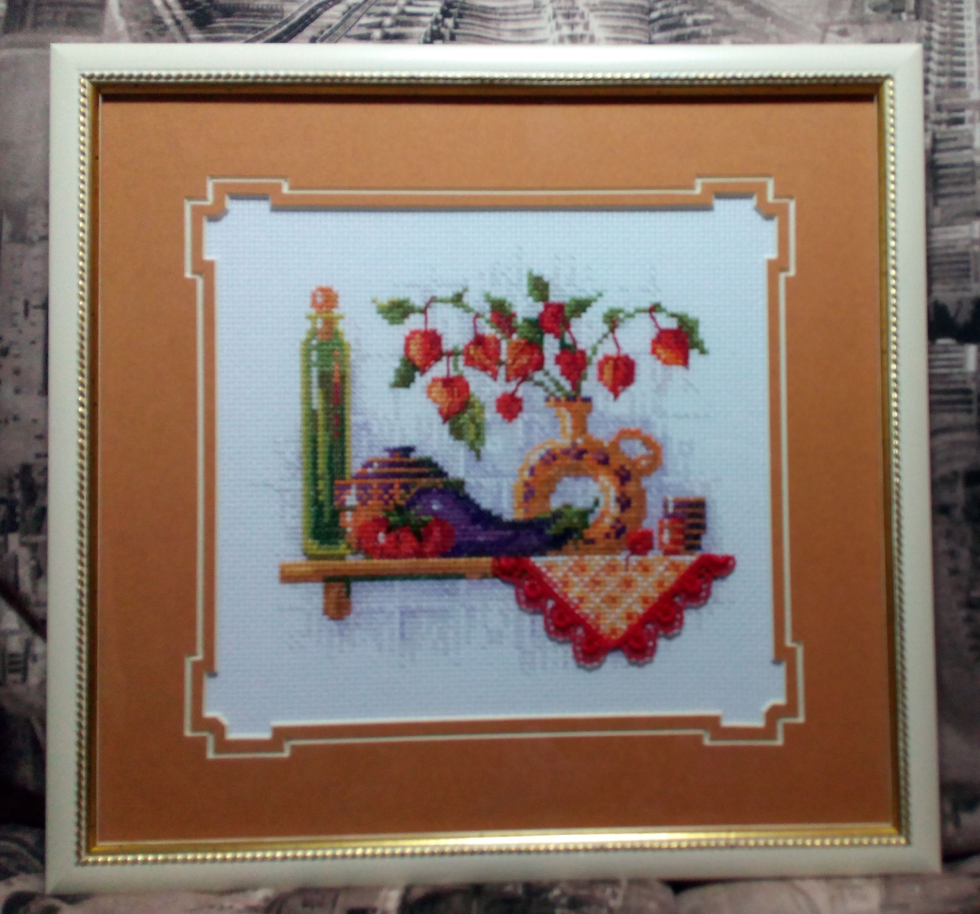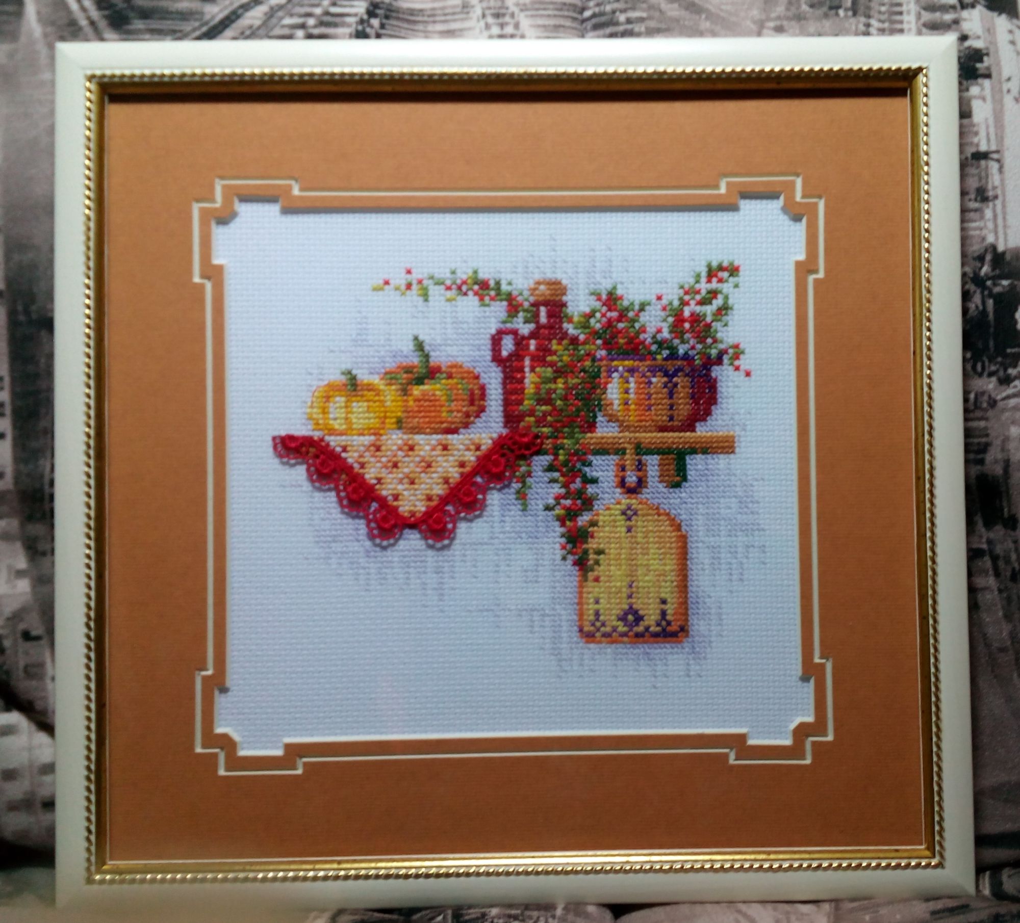 10 апреля 2016 Здравствуйте всем! Вот и готова ещё одна "конфетка", полученная в сентябре 2015 от Маши (sheyla55), "Натюрморт с тыквой". . Работа шла очень быстро, в общей сложности, дней 7 по 2 часа. Почти не отступила от схемы, единственное изменение - в салфетке вместо фиолетового цвета использовала вишневый, чтобы использовать вместо бахромы такое же кружево, как и "Натюрморте с баклажаном". Осталось оформить обе работы (эту и "Натюрморт с баклажаном") в едином стиле. Catopuma, Бондаренко, Платиновый Еж и 4 других сказали спасибо Поделиться сообщением Ссылка на сообщение