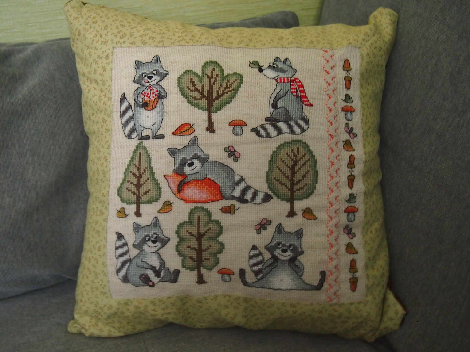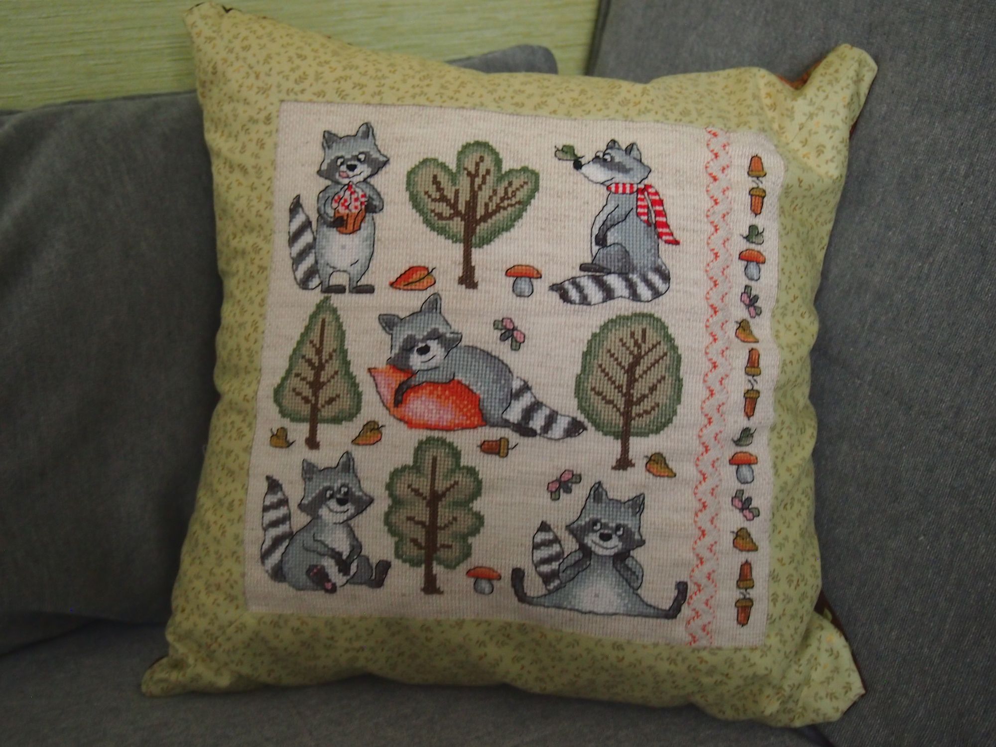 1 января 2019 Девочки, с наступившим Новым годом! Новых улыбок, новых радостей. новых успехов и новых свершений! В новый год - с новым отчетом! Начну я с елок. Перед НГ успела вышить три елочки. Две в "зимних воспоминаниях". Было приросло стало И одну монохромную. Вот такой вариант предлагался в журнале, но в процессе мне не понравилась верхушка и я ее заменила. Оленей взяла из другого журнала, а звездочка как-то нарисовалась сама. Эта елочка теперь украшает подушку. Размер 30х40, красное кружево, ткань для пэчворка. Эта подушка подарена дочке. Еще сшила две подушки для семьи старшего сына. Флис, тесьма с кардиналами, золотое кружево и золотой витой шнур. Размер 40х40. И раз взялась за подушки, сшила подушку с енотами для младшего сынули. Ткани, вложенной в набор, хватило и даже осталось по маленькому кусочку. размер 40х40. В журналах нашла несколько монохромных новогодних дизайнов, так что на одной подушке я не остановлюсь. В планах еще несколько. очень хотела успеть сдеалть еще одну подушку к НГ, но готова только вышитая часть. Вариант дизайна из журнала Мой вариант ЛАДОМИРА, Хельга, Наталья2013 и 25 других сказали спасибо Поделиться сообщением Ссылка на сообщение