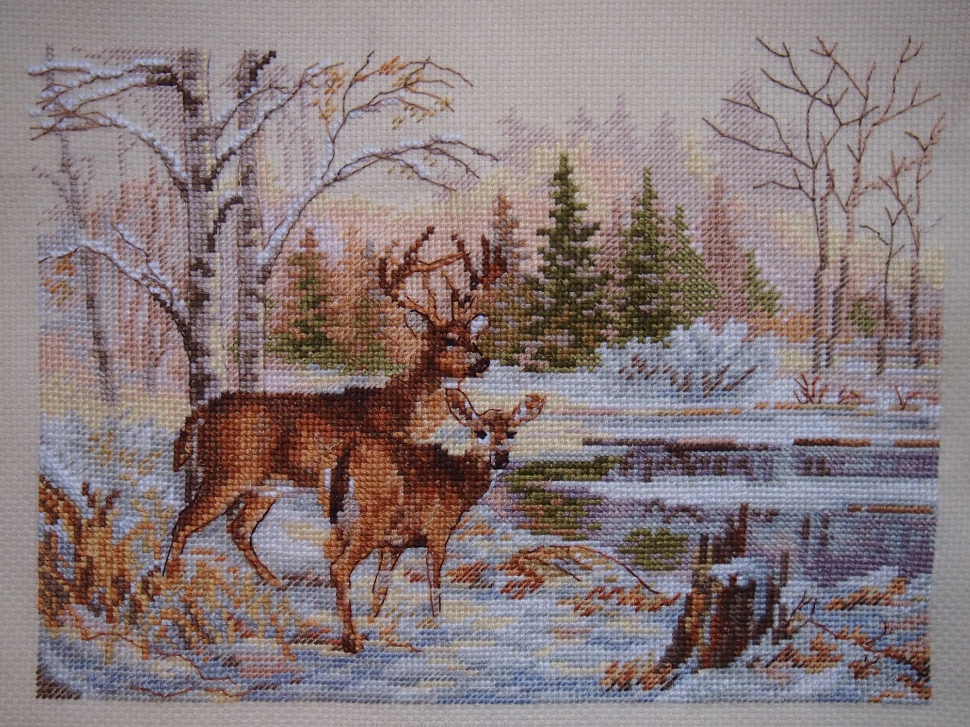20 ноября 2019 Девочки, всем большой привет! И еще раз у меня олений отчет. И не просто олений, а еще и озеленительный. Зеленим две оленьи гаечки. 1. Ожидаемо довышивала игрушку. Северный олень. Вот такой красавец получился. Хочется еще добавить блеска - Новый год все таки. Подумаю об этом после, В целом на пластике вышивать понравилось. Но пока я приноровилась к пластиковой канве - вышивать уже было нечего. Так что в следующий раз будет следующая игрушка. Девочки, кто уже имеет опыт с игрушками, подскажите, закрыть фетром как лучше: пришить или приклеить? Если приклеить, то чем? 2. У лесного озера. Мне нравится, как получилось. Олени вроде травоядные, но попили моей кровушки Я то думала, что это будет простой и легкий процесс - отдыхалочка. Но я уже упоминала выше: никогда и нигде я столько не ошибалась и не порола, как в этих оленях. Еще и поэтому очень рада, что они наконец готовы. Ветки на деревьях "рисовала" как мне понравилось, только в целом придерживаясь рекомендациям схемы. Немного добавила фон, и немного подправила его контуры полукрестом. Оформлять буду, когда вышью им в пару гусей. 3. Олени не отпускают. Смотрите, какой олень еще у меня появился. Не смогла пройти мимо, купила не задумываясь. Всё. Олени на сегодня закончились, новости тоже. Всем хорошего настроения! Каори, Хозяйка смешных зверей, Lenara и 29 других сказали спасибо Поделиться сообщением Ссылка на сообщение