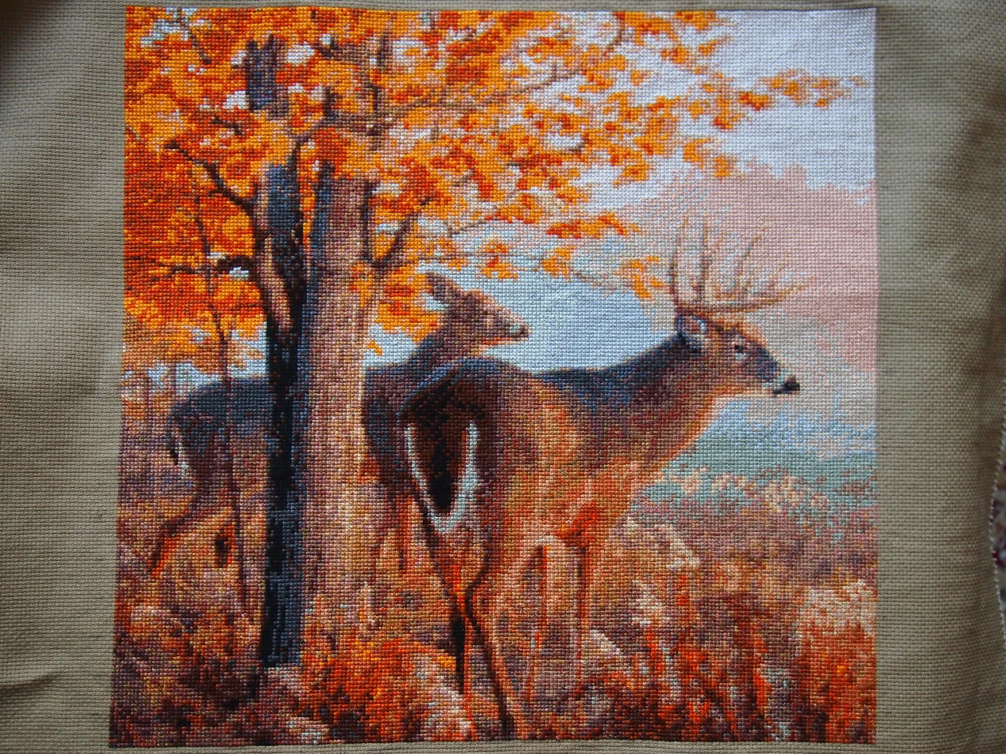 10 декабря 2020 Девочки, всем привет! Сегодня зеленим еще одну гаечку Кастом Крафтс Соблюдая осторожность. Финальное фото И в который раз я сделала по своему. ну не нравится мне, что на картине два самца! И вуа-ля: у меня парочка. Олень и олениха Покажу поближе: Обложка и мой вариант Конечно у художника два самца смотрятся очень гармонично, они чуть на возвышении и охраняют своих подруг. Я нашла оригинальную картину Александра Грегори. Но дизайнер позволил себе обрезать чуть ли не пол картины. А я позволила себе отрезать рога одному оленю Я бы с удовольствием вышила целую картину, без купюр. И на удивление, она есть в крестике. Это ранняя разработка Овен. Но к сожалению даже на фото видно, что и сама схема, и подбор ниток желают лучшего. Хотя... кто знает, может быть, когда вышью всех имеющихся у меня оленей, возьмусь переделать и этих. И традиционно несколько слов о наборе. Канва отличная, плотная, крестики на ней ложатся ровно. Нитки ДМС, всего 30 цветов. А вот к разработке схемы у меня есть претензии. Ствол дерева проработано на 5+, сами олени на 5-, а вот все остальное, включая листву и фон, так себе. на троечку. Но это мое личное мнение. Просто после вышитого Голубоглазого тигра этого производителя, я ждала чего то большего. Эти олени пока полежат в шкафу и скорее всего пойдут на подарок. (Ближайшие два- три года у родственников и друзей грядут юбилеи) И я обещала показать что то еще. Взяла я набор Чудесной иглы 100-143. Нежность сердца. Убрала все лишнее (на мой взгляд лишнее), и не стала делать бэк. Получилась у меня вот такая заготовка для подушки. и фрагменты поближе. Очень мне нравится это цветочное сердечко. Подушка будет подарена семье старшего сына. Фото процесса нет. Разогналась по привычке, а когда вспомнила, что надо бы фото сделать, то уже больше половины было вышито. Чаривна мыть. Фонарик. Небольшое продвижение: Было стало Планирую его доделать в ближайшее время. На этом сегодня все вышивальные новости. Juliay, оленек, Дикая белочка и 26 других сказали спасибо Поделиться сообщением Ссылка на сообщение