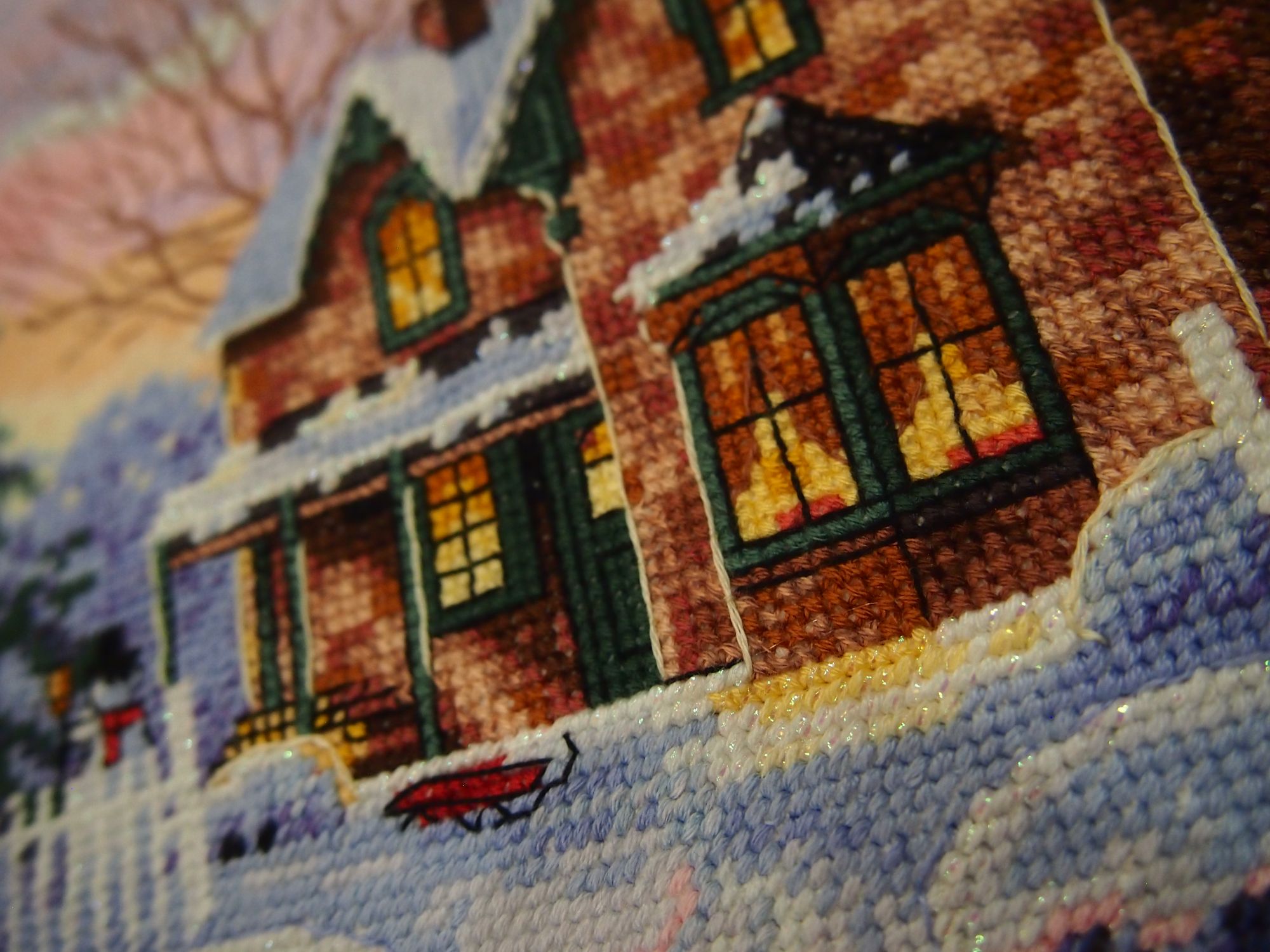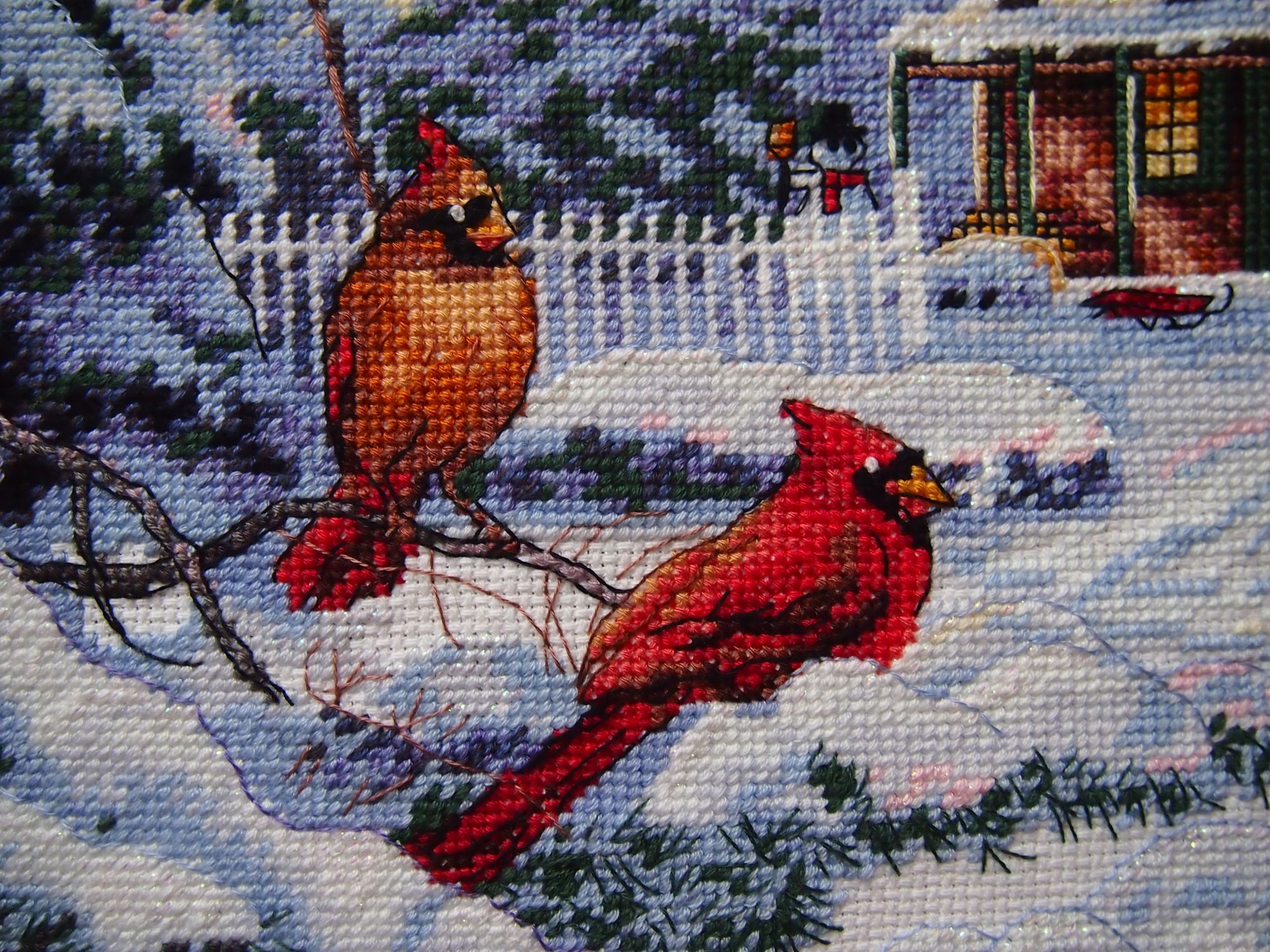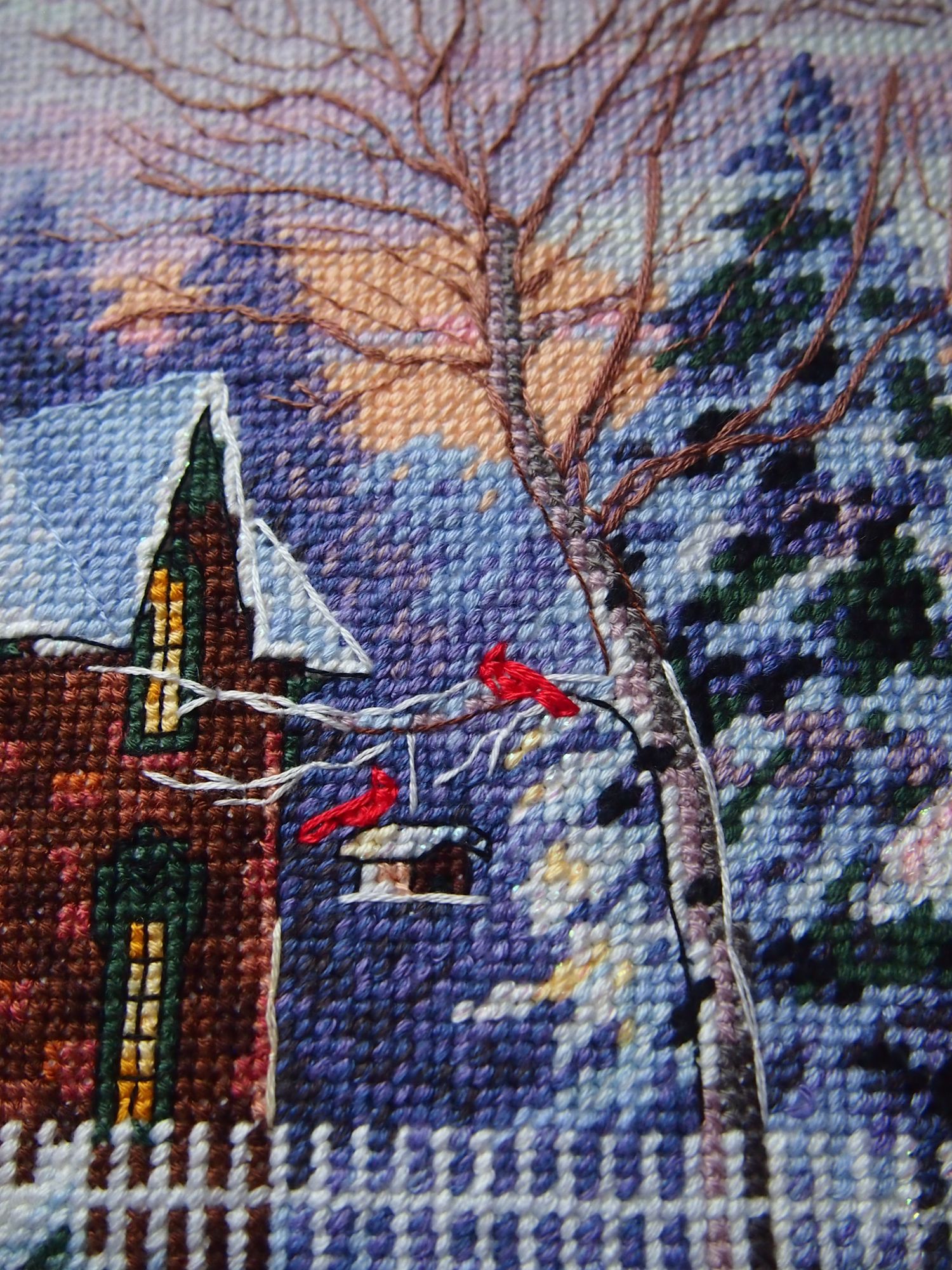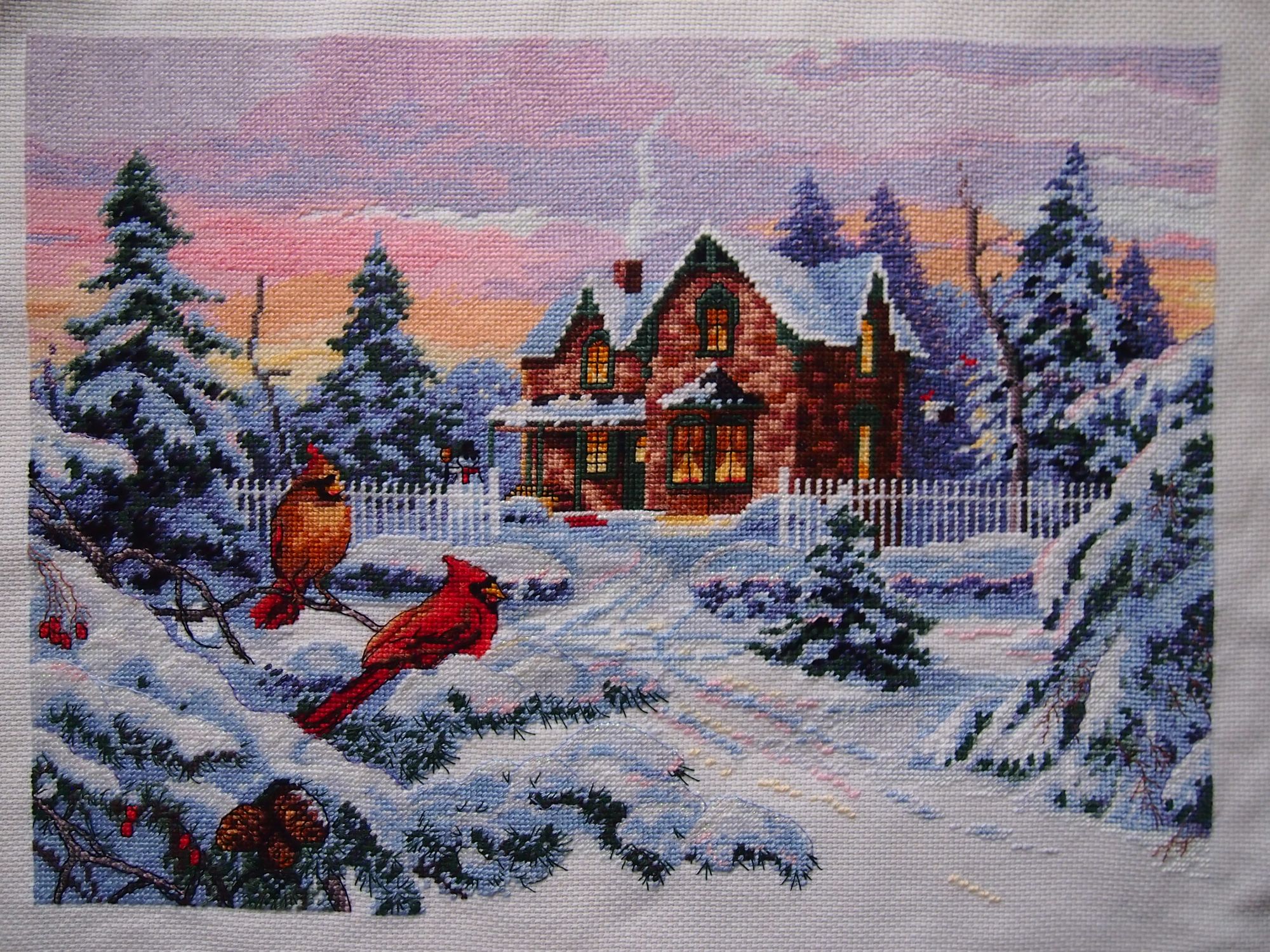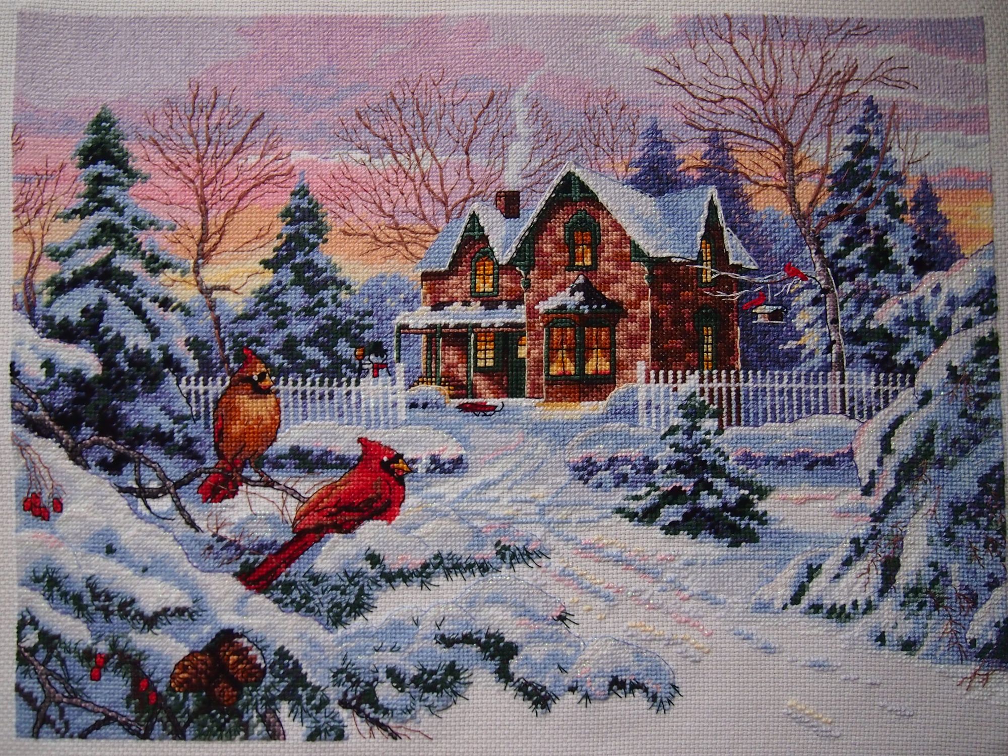 21 января 2021 16.01.2021 в 15:32, ОлюшКа сказал(а): Девочки, всем большой привет! Я сегодня снова вне графика, но очень хочется позеленить гаечку! Я просто в восторге от того, как получилось. Ну примерно так: Обычно я показываю уже финальные фото, но в этом случае для сравнения: было стало И конечно подробности. Особенно мне нравятся кардиналы возле кормушки. Всего 3 крестика и бэк, а получились узнаваемые птички. Что я могу сказать по итогу? Дим есть Дим. Давненько я его не вышивала. И несмотря на мою нелюбовь к полукретам, а особенно в полукрестам в 5-6 ниток, результат превосходный. Набор из перевыпуска. Лично я не заметила какой либо разницы с предыдущими наборами Дим, произведенными в Китае. Хорошая, средней жесткости канва, 14 белая. Нитки, как обычно. Размер после стирки на удивление ровно 30х40 см. И даже схема на глянцевой бумаге мне совсем не мешала. Тем более, что глянец там не такой уж сильный, как некоторые рассказывают. При электрическом свете совсем не бликует. Я уже отметила в прошлом отчете, что снова не обошлось без отсебятины На этот раз только добавила блеска. Крейник 032 в одну ниточку: под окнами, на дороге, на верхушкам снежных лап и сугробов. Эффект искрящегося на солнышке снега. Мне очень нравится, как получилось. На этом сегодня все вышивальные новости. Пусть ваша зима будет такой же уютной и яркой, как эта картина. Оля, очередной раз не могу не восхититься твоей скоростью! Браво! Результат прекрасен! Могу только сотый раз повторить, Дим есть Дим! Какие краски, какое небо! Крейник так красиво сверкает! Прекрасная работа! lenning сказал(а) спасибо Поделиться сообщением Ссылка на сообщение