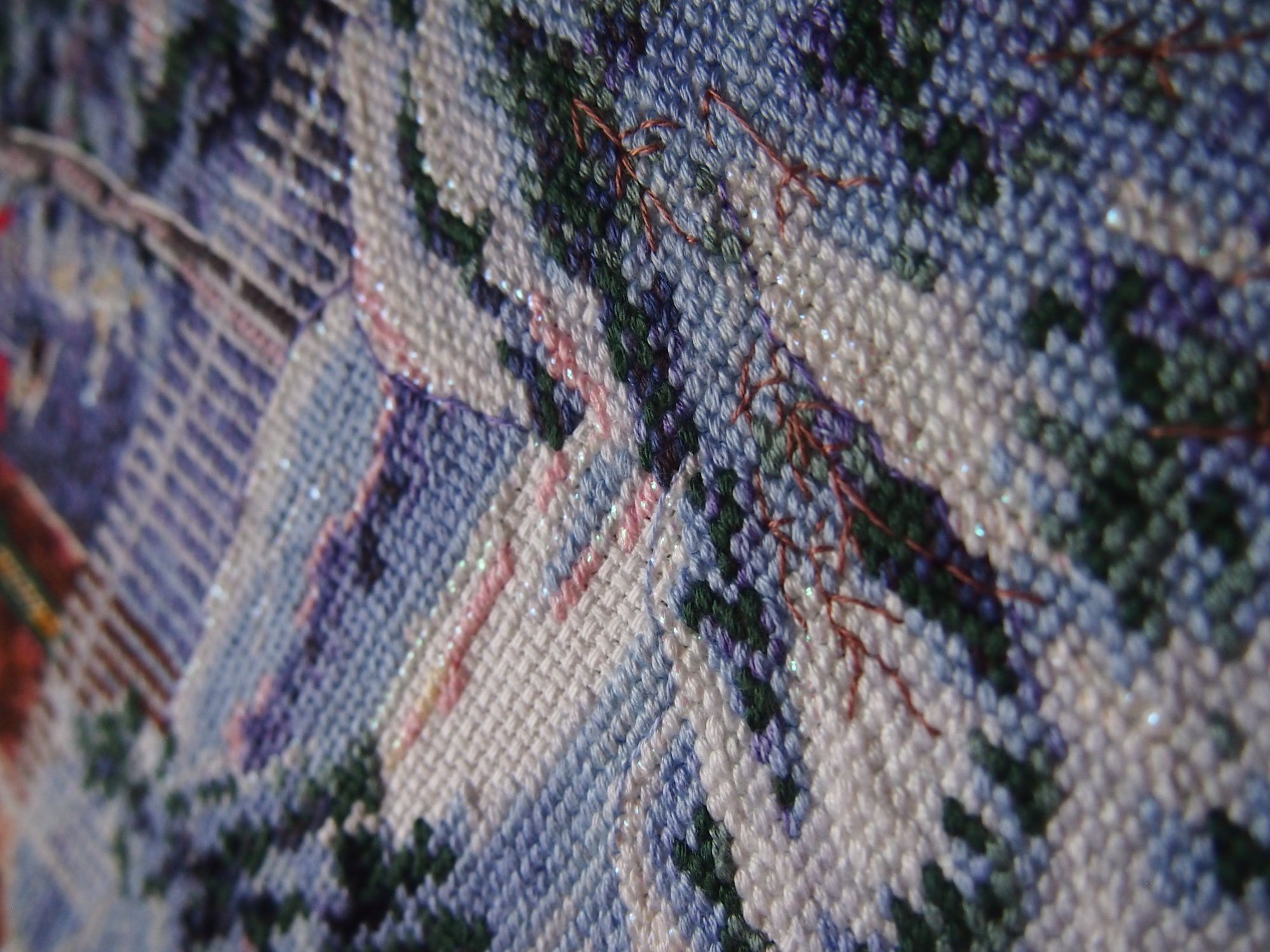 22 января 2021 Девочки, всем привет! Остановилась, чтобы сделать фото. А то состояние: "ну еще одну ниточку" может продолжаться до финального крестика. Итак, я долго перебирала, какой из процессов взять. В итоге взяла один из самых "древних". Анкор. Маковое поле. Начала я его еще до 2013 года, это точно. Потому что в сентябре 2013го завела свою тему на форуме, и к тому времени было вышито примерно треть. Уважаемые модераторы, если можно, замените пожалуйста первое фото в процессе на это, где вышивка чистая и выглаженая. Должна сказать, что вышивка была в не очень хорошем состоянии, пролежав столько лет. Канва вся в желтых заломах. Я ее несколько раз замачивала и стирала, пока не привела в божеский вид. Зато теперь можно смело делать бэк по ходу. А его там немеряно. И вот что вышилось за 6 дней. Схема сначала показалась мелковатой, но за пару дней глаза привыкли. В целом схема простая, логичная, крест в две нитки и полукрест в две и одну ниточку. Это делает второй план очень реалистичным. Довольно много четверть крестиков, и на 16 канве это то еще удовольствие, но отступать некуда. Сегодня все новости. Постараюсь впредь не сбивать с графика отчетов. viola33, ole4k@, Lucia-del-Umago и 26 других сказали спасибо Поделиться сообщением Ссылка на сообщение