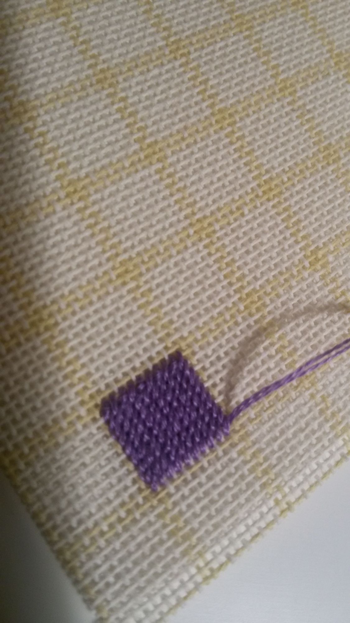 14 октября 2016 8 часов назад, alla_lad79 сказал: Ой, МарСанна, хочу-хочу!!! Сегодня самый- самый примитив. Если дальше будут нужны инструкции - всегда пожалста. Итак, гобеленовый стежок, нулевой уровень. Сразу договоримся, чтоб не путать - лево - со стороны левой руки, право - со стороны правой. Две клетки, по которым проходит желтая полоса, считаем соответственно последней клеткой из квадратика на десять клеток и первой клеткой из следующего квадратика. Практически все гобелены шьются в две нити. Я шью слева направо и снизу вверх. Начинаем. Вводим иголку с изнанки в верхний правый угол первой клетки квадратика - то есть второй (она же правая) желтой клетки. Я шью в два прокола - в один не позволяет размер сетки мелко. Часть нитки выводим, иголку вводим с лица на изнанку в нижний левый угол этой же клетки. Закрепляем петелькой. Второй стежок: иголку вводим с изнанки в верхний правый угол следующей (второй) клетки . Протягиваем нитку, вводим иголку с лица на изнанку в нижний левый угол второй клетки. И так до конца ряда. Главный алгоритм - иголка сначала вводится в ДАЛЬНИЙ по ходу угол. То есть - идем направо - стежок начинаем с правого угла; идем налево - стежок начинаем с левого угла. Переходим ко второму ряду . Вводим иголку с изнанки в нижний левый угол первой клетки, выводим на изнанку в верхний правый. И так до конца ряда. Закрепляется, протягивая га изнанке под протяжками. Основные тонкости: Не нужно шить квадратами, потом эти квадраты будут видны. Если кусок одним цветом попадает на два листа схемы, лучше шить их сразу, чтоб не проявилась граница между листами. Не нужно шить очень туго - возможен перекос. Еще от тугого затягивания нитки усиливается просветка разметки. Я шью по цветам. Не нужно начинать с максимально встречающегося цвета - зашьется разметка и сориентироваться потом будет сложно. Я начинаю с цвета, который средний по распространенности. Желательно, чтоб это был контрастный по отношению к канве и другим ниткам цвет. Максимально встречающийся цвет шью последним. Закрываются протяжки и практически не надо смотреть в схему. Получается вот так Изнанка aleksaA, Каори, alex_sterh и 28 других сказали спасибо Поделиться сообщением Ссылка на сообщение