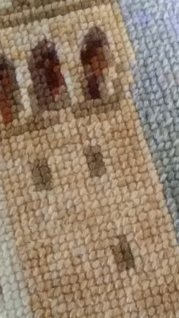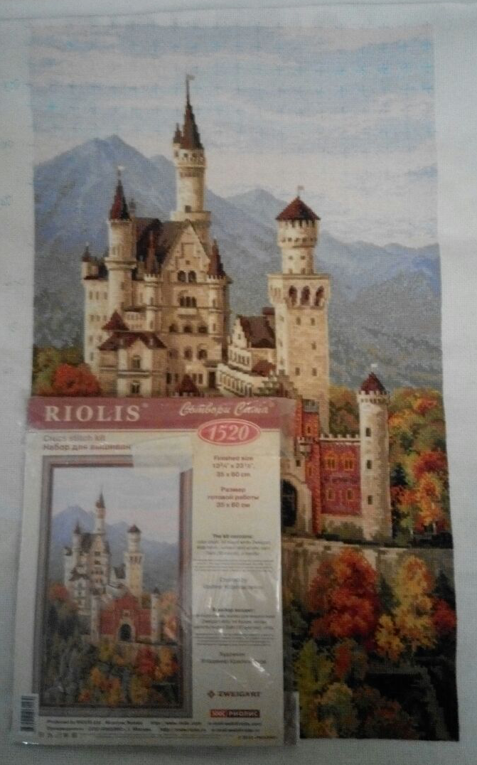 3 декабря 2016 Сегодня я вас приглашу в Германию, а точнее в Баварию, а еще точнее - в замок Нойшвантайн. Но этот замок - часть мирового наследия. А вот вам мой собственный и своими руками по кирпичику выстроенный Нойшванштайн, он же Риолис 1520. Самый мой долгий процесс - бывает без году неделя, а у меня год с неделей. Самый большой мой процес - в сантиметрах 60*35, в клеточках 330*190 (ну гобелены ваще-то больше в клеточках, но в 2 раза меньше в стежках). Это для масштабу - обложка набора стандартного размера Аида 14, нитки шерсть несвойственного Риолису разнообразия - 30 цветов +9 блендов. Бленды просто безумные - салатно-зеленый с коричнево-рыжим, яркий желтый с ярким оранжевым. Кстати, нет ни белого, ни черно цветов. Крестик в 1 и 2 нити и полукрестик в 1. Зачем чередовать один и тот же цвет то в 1 нить, то в 2 , я так и не поняла. Разница заметна только на горе. Во всех остальных местах вышитое в одну нитку смотрится как попробованное привередливой молью. Мои изменения - на небе полукрестик шьется в одну нить, а розовый крестик - в две. Я розовое шила в одну нить, чтоб снизить интенсивность розового. Да и не полуденные июньские кучерявые облака это, а рассветная дымка, вот мне и не хотелось явного доминирования розового. Еще не стала делать бэк на скатах крыш. Там бэк получался или грубый - если шить по крайним точкам крестика, захватывая кусочки неба, или бессмысленным - если шить полностью по темному, где его не видно. С самого начала не покидало ощущение, что нитки стали толще. Они настолько тяжело впихивались в каунт канвы... Долго раздумывала, показывать ли вам эту кривоту, ну ладно, так и быть, попозорюсь слегка. И насколько лучше укладывается, когда в одну нитку В целом дизайн для очень усидчивых. Тут все - и размер, и феерическая цветовая мешанина, и занудное небо на три цвета. Я довольна. Я очень довольна. Возможно, львиная доля моего удовольствия относится не к тому, что он у меня теперь есть, а к тому, что я его дошила. monstrochka, lessik, Ан4оус и 46 других сказали спасибо Поделиться сообщением Ссылка на сообщение