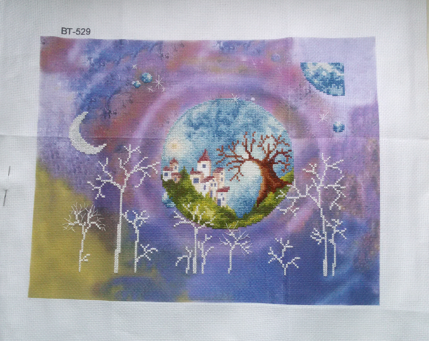 13 января 2019 Хорошо быть несерьезной. прыгать, сумерки встречая... Возвратиться поздно-поздно И мечтать за чашкой чая... Проскакать козой все утро, Прохихикать весь обед. Ах внутри мне почему то До сих пор семнадцать лет! Встречайте готовую Любопытную планету. без бека\совсем готовая Фото без бэка сделано утром, при дневном свете. поэтому там цвет как есть. Что имею сказать? Симпатичная хрень, выбранная добровольно и неоднократно обматеренная, поначалу показавшаяся детским мультиком, но оказавшаяся воплощением снов - когда леденцы висят на деревьях и несъедобны, когда близкое далеко, а недостижимое в руках, когда живое неживое, а обитаемое - пустынно. Это если пофилософствовать. А если повышивать, то тут весело. Нитки вязались в узлы столь вдохновенно и насмерть. словно возомнили себя китами, на которых держится мир. Бэк не по клеточкам, поэтому я очень быстро пошла в произвол, делая бэк и пришивая леденцы. Кстати, я собиралась пришивать бусины сразу вместе с бэком. Как бы ни так - чтоб бусина лежала, ее надо достаточно плотно затянуть. Но это идейка не для чмошного бестекса. Поэтому пришлось бусины шить капроновой ниткой. Бусины - отдельная история. Они оказались... грязными. Замочить их в воде я не рискнула и потратила два часа на протирку. Увешавши леденцами первое дерево, я очень неожиданно поняла, что хочу без бусин! Но вовремя полученный дружеский пинок направил мои мысли и ручки в должном направлении. Несмотря на все гадости и подлянки, итог мне нравится своей укуренной нереальностью. И вот сижу я и думаю - а как давно у меня не было секса хью? Оказалось, с сентября - целую вечность! Поэтому вот - новый процесс! Xiu Crafts 2800147, размер 28х28 см, 32 цвета плюс 8 блендов, канва с тонировкой и нет иероглифов. Morning Glory, он же Ипомея. Вьюнок, Утреннее сияние - кому как нравится. Очень люблю это цветок, даже его сорнячно-беспризорную версию за следование солнцу, за складывающиеся граммофончики-рюмочки. и пока вот без\сы бэком Если напишу хоть слово ощущений, то точно сорвусь на пару страниц восторженных воплей. Поэтому кратко: как же давно у меня не было секса хью! оленек, ОльгаВл, -Solovey- и 44 других сказали спасибо Поделиться сообщением Ссылка на сообщение