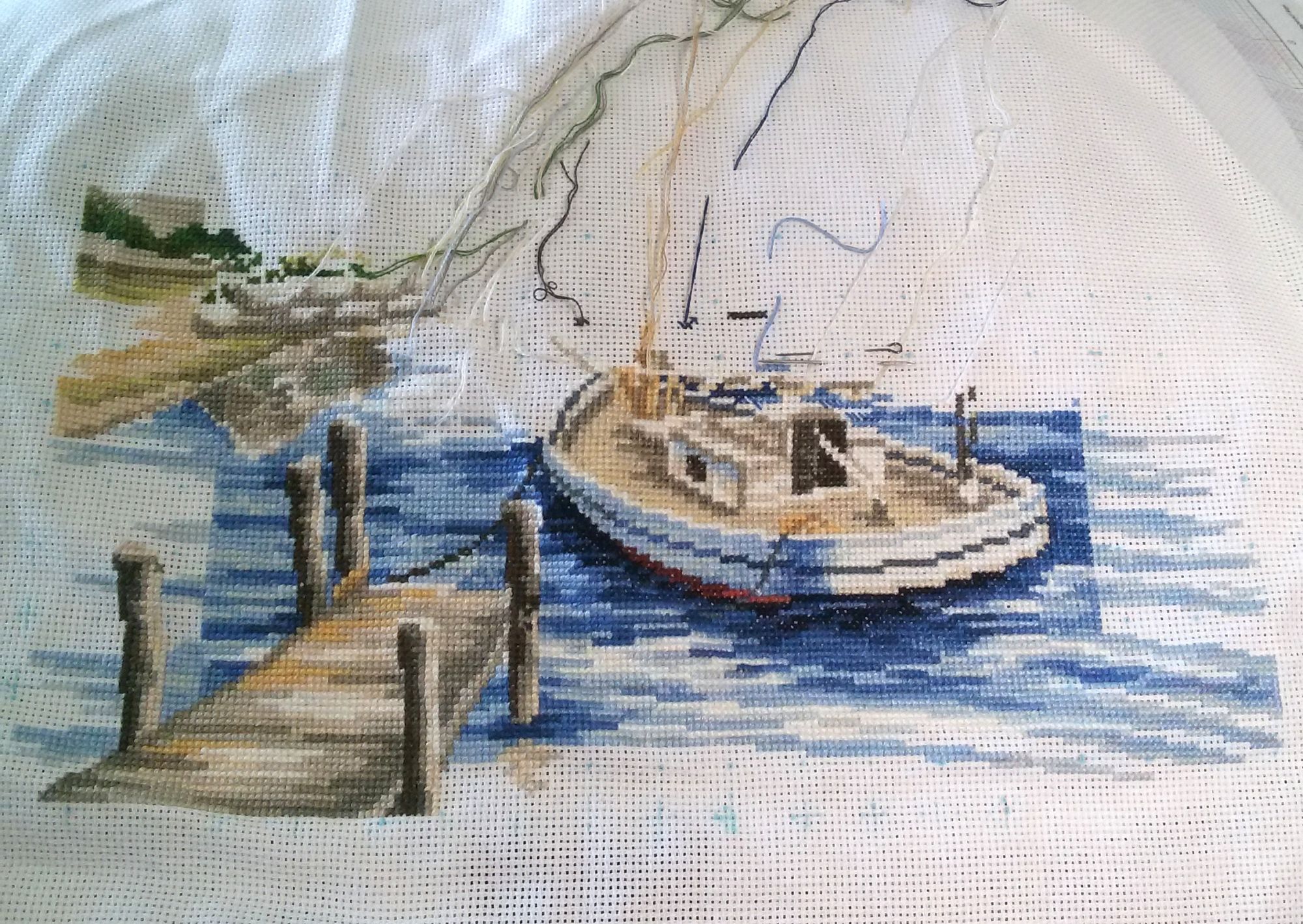 19 мая 2019 Я думаю, каждого из нас клевал в одно место, которое у вышивальщиц тоже должно считаться рабочим, один товарищ, поименованный жареным петухом. Ничего не предвещало ничего... Шпарился очередной процесс... Отвела взгляд от вышивки, посмотрела на огни ночного города за окном... и поняла, что прям вот сейчас мне нужен новый процесс. и новый процесс пришел, благо, эта схема давно просилась в руки, благо давно были заготовлены нитки, оставалось выбрать основу. Я открываю ящик, не глядя цепляю верхнюю тряпочку... (которой при покупке предназначалась совсем другая роль) и нитки мгновенно ложатся на эту вроде как незапланированную и неподходящую ткань. Итак, Ерохова Алла "Итальянский полдень" по иллюстрации Анны Гузий Размер 74х105 крестиков, 28 цветов, 5 блендов, крест, немного 3/4 креста, полукрест, бэкстич Основа Ева 28 каунт 4041 золотистого цвета, нитки дмс\схс, большей частью схс Получается совсем не полдень, хоть и явно где-то в жарких странах (а изображенное на картинке и не может быть полуднем, слишком густые и длинные тени). По моим ощущениям, это время на границе дня и вечера, когда камни, раскаляемые за день южным солнцем, начинают отдавать накопленный за день жар. И вопреки законам физики мое воображение пририсовывает этому жару именно такой цвет - цвет охры, растворившейся в расплавленном меде. Стартанула я весьма резво, благо все сошлось - пламенное желание, вполне адекватная схема, полукрест, который я люблю. Но разве может быть все хорошо? Очередной раз меняя нитку, обнаружила отсутствие следующего цвета. Учиненная ревизия выдала результат - нет трех цветов. Вот скажите мне милость, как так я могла заказать нитки? Короче, люблю я наборы - открыл и шьешь. Короче, феерический полет нового процесса по расплавленному меду был прерван собственным головотяпством. Но за отчетный период я не только занималась перекладыванием ниток из кучки в кучку. Посему продвижения Малина и шиповник было\стало стабильные плюс 30 рядов. РТО "У причала" Было\стало От процесса, кажись. отлип ярлык "вечно второго". Лукасин тигр было\стало Ну исключительно нефотогеничный процесс! Фотографироваться не желает ни в какую! Да еще скотина кот поспал в пяльцах. пока я не видела. Теперь у тигра. как у Шарика из Простоквашино. волосатость повысилась. Всем повышения именно того, в чем есть нужда - повышения настроения, производительности, гемоглобина и уровня самооценки! Ветер, Lusha73, monstrochka и 49 других сказали спасибо Поделиться сообщением Ссылка на сообщение