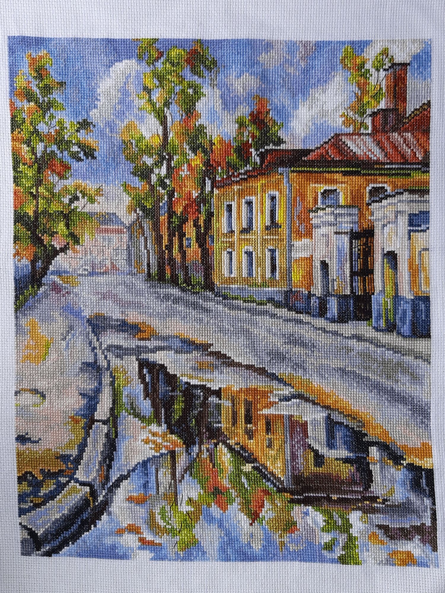31 мая 2020 Внезапненько… Дошивать не входило в ближайшие планы. Но Лужа просто отказалась выпускаться из рук. Своего рода наркомания - «Еще ниточку и меняю процесс». Не, еще ниточку и точно сменю... Вот еще крестик... У художника – автора исходника – картина называется «Лужа», мне такой вариант нравится гораздо больше, чем версия РТО. Мне, похоже, пора прилеплять себе хэштег Опятьнеобошлосьбезотсебятины. Тут я меняла много. 1. У меня нет автомобилей. Для меня это улица тихого провинциального городка году эдак в 1910-ом. Какие уж тут авто? 2. У меня нет собаки. Одиноко шляющийся кот может быть кем угодно – героем-любовником, бродягой-исследователем, добытчиком пропитания, но одиноко шляющаяся собака – всего лишь одиноко шляющаяся собака с унылым хвостом. В моей картине мира собаку позвал хозяин и они сейчас где-нибудь в лесу, пес радостно нарезает круги вокруг хозяина и сводит с ума аборигенов ёжиков. 3. У меня нет засохших деревьев. Сухие ветки – да, но не больше. Если №№1 и 2 были запланированы заранее, то решение убрать сухостой возникло во время зашивания фона под этот самый сухостой. Я внезапно поняла, что моя любовь к геометрии голых веток распространяется только на ветки зимние и поздннеосенние, когда древесная обнаженка обусловлена засыпанием, а не засыханием. Кстати, в дизайне набора сухие ветки и их отражения (читай бэк сверху и снизу) вообще не конгруэнтны и вообще не соответствуют друг другу. Правда, пришлось выпороть отражения стволов из лужи, но это мелочи. Зато теперь эта улочка абсолютно соответствует тому, как я люблю осень - когда на губах уже горчинка, но еще не горечь. Когда липы (а это безусловно липы) медово-золотые, когда воздух, сохранив прозрачность, густеет и насыщается воспоминаниями, когда небо наивно полагает, что зима не придет. Ощущение полного и безмятежного счастья, приправленного капелькой жгучей ностальгии о невозвратимом прошлом… Хельга, BlueeYeS, Аринесса и 44 других сказали спасибо Поделиться сообщением Ссылка на сообщение