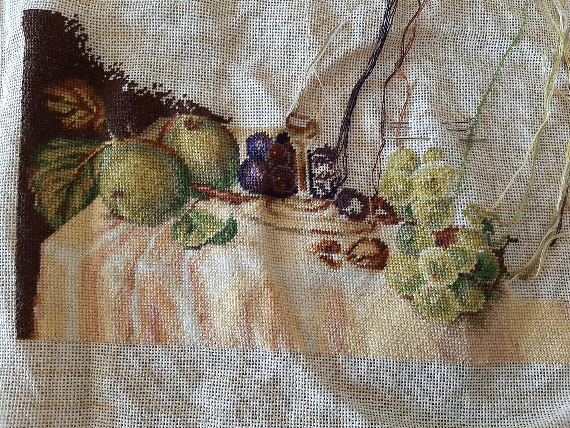 11 октября 2020 С пламенным приветом! и с плановым отчетом, разумеется... Сегодня даже можно проветриться. Действо сие подразумевает показ продвижения по всем (нууу, или почти всем) имеющимся процессам. Поехали! 1. Хью было\стало На этом этапе фотки довольно скучные - и было серые кругляши, и стало серые кругляши. Терпи, мой добрый зритель, серых кругляшей будет еще ооочень много. 2. Пуансеттия от Риолис Тут просто взрыв цвета. Мне показалось интересным на этом этапе показать постепенное рождение живого лепестка. Чудесатые крестики без верхнего стежка\ полностью готовые И было\стало Скоро перестанет умещаться в кадр, буду показывать частями. 3. Натюрморт от Луки-с было-стало Подсыпали виноградику. Шьется медленно, но неуклонно. 4. Нарциссы, ой, Лимонад было\стало Не процесс, а наваждение. Невозможно выпустить из рук. Еле остановилась, чтоб хоть сфоткать, а то такими темпами в процессе будет три фотки. Очешуительный цветочек. На этом проветривание можно считать состоявшимся. Но у меня есть еще что показать - забрала так долго оформлявшегося Дракона. Очень довольна. Единственное, теперь начала думать, что было бы хорошо устранить форму яйца и зашить все сходящими на нет снежинками. Но и мысля сия пришла поздно, и крейник голубой у меня на тот момент уже кончился. оставлю идею до следующего раза. Вот на фоне дракона и раскланяюсь. Всем нужных мыслей именно в ту минуту, когда еще не поздно и чтоб было чем их воплотить! maui, Маса, TheSunniestDay и 48 других сказали спасибо Поделиться сообщением Ссылка на сообщение