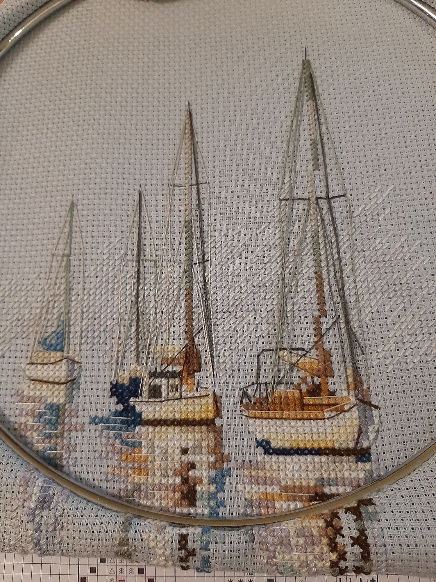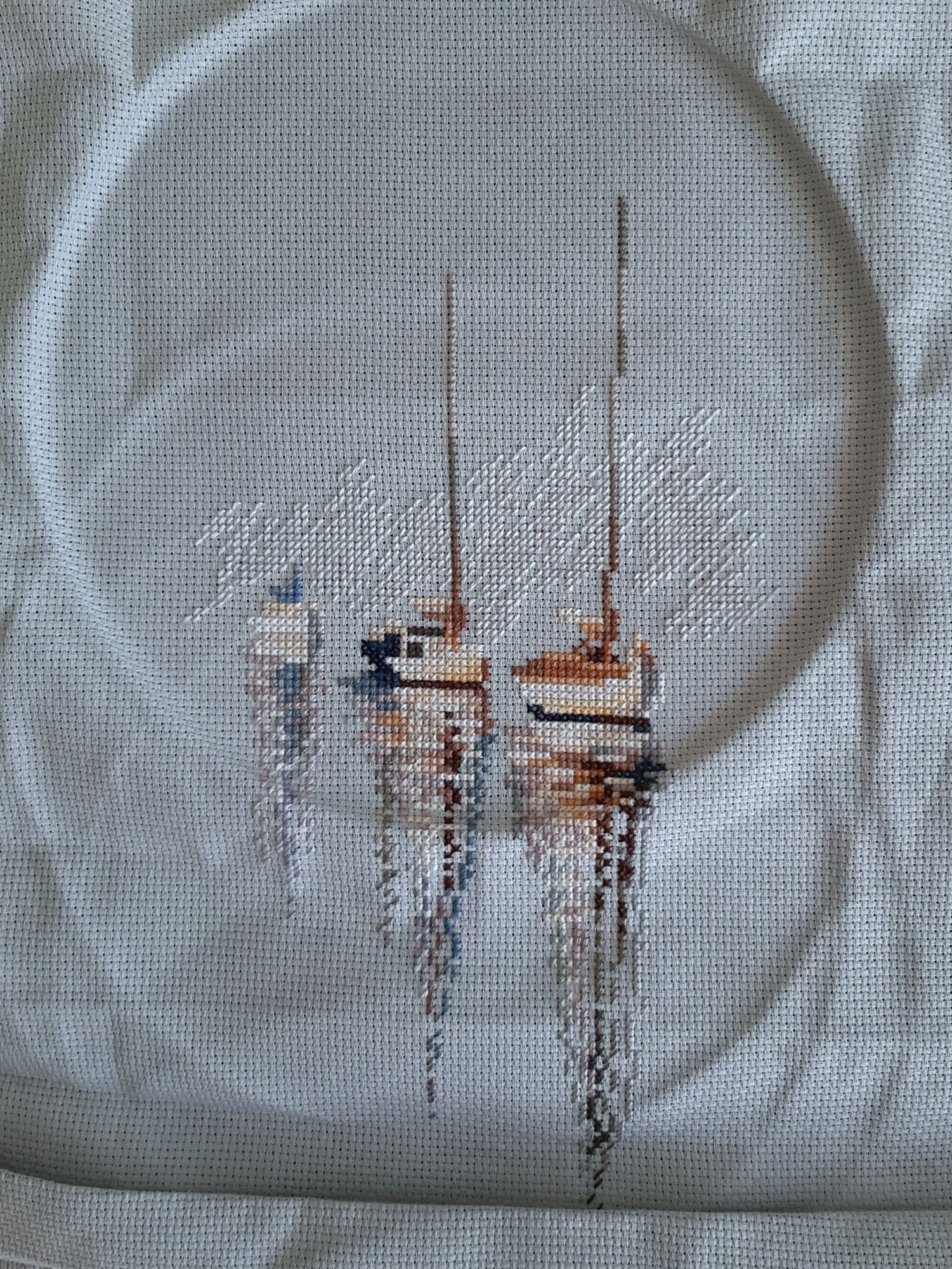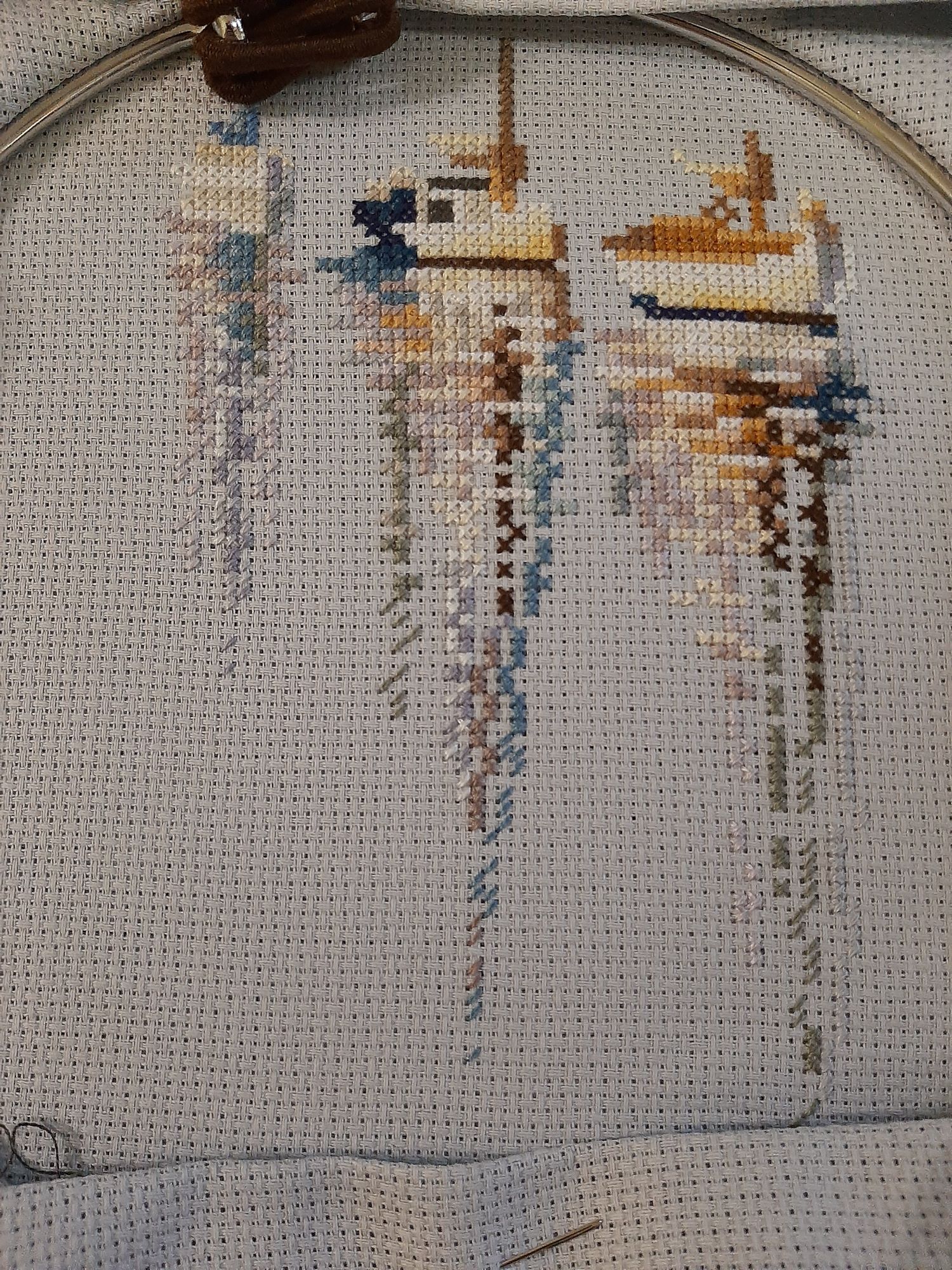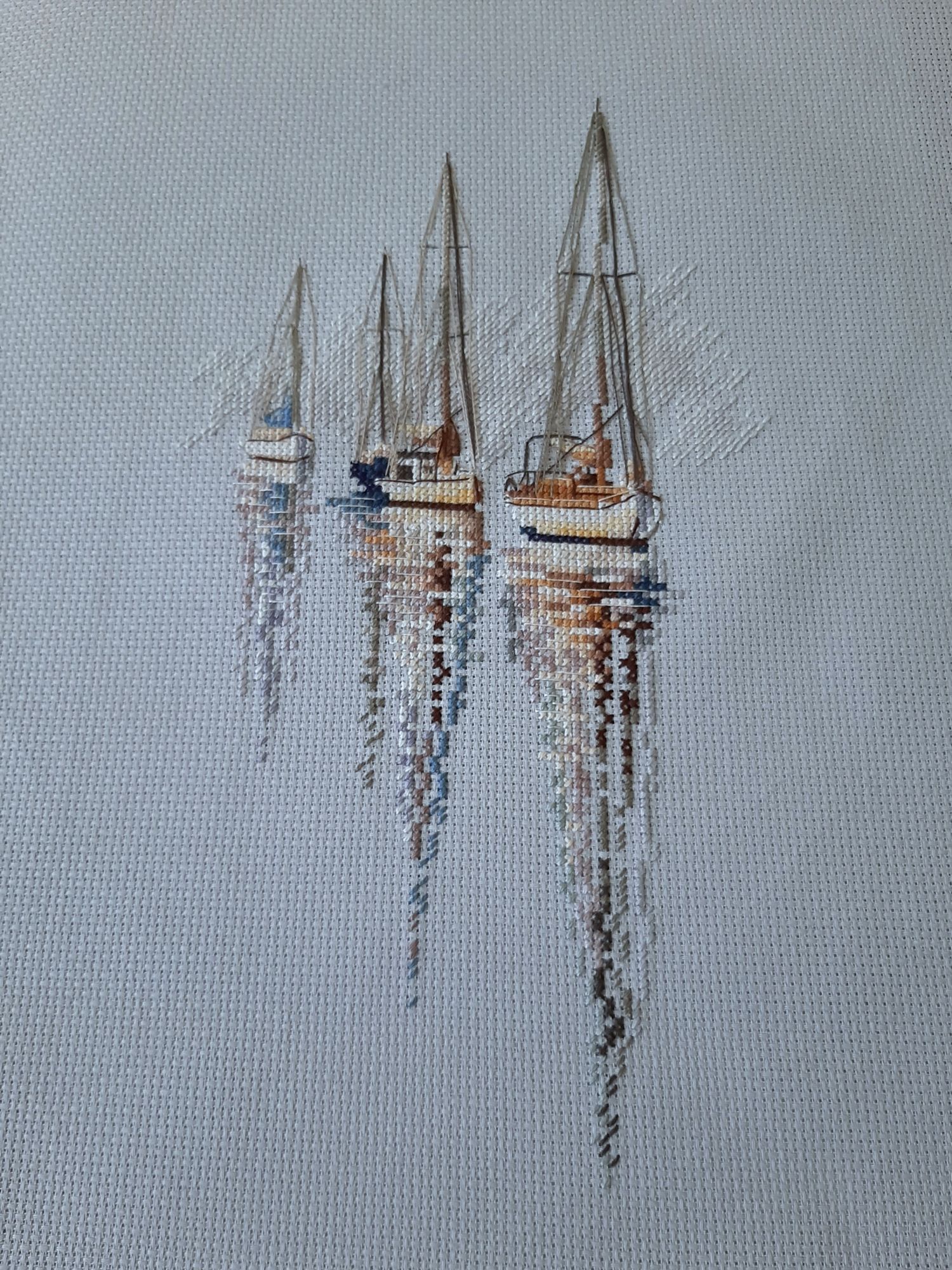12 марта 2021 Это будет отчет! Столь же внезапный и стремительный, как процесс, о котором пойдет речь. Это был чистой воды вжжжик! И любовь вжжжжикнула при первом взгляде, и процесс не разочаровал! РТО М850 "Со вкусом соли, ветра и солнца" Рабочее прозвище "Лодки а ля Вотье" (прозвища волей неволей пришлось выдумывать, чтоб разобраться, какой именно "вкус соли и др"из доброго десятка одинаково названных новинок. размер 14*26см, аида 14 серого цвета, нитки 30 цветов +1 бленд. Во время покупки набора присутствовали, конечно, опасения, что лодки окажутся айсбергами, то есть опять с кучей технических выкрутас на грани маразма, как уже я один раз напоролась у РТО. Но ничего подобного! Да, частая смена цвета, но это оправдано. Да, очень много для такого маленького дизайна цветов, но что вы ожидали от ряби на воде? И кроме того, многоцветность не превратилась в пестроту, а напротив, создала столь обожаемое мной отражение в водной глади. Бэка куча вариантов, но он тоже не создал трудностей (частично делала выкладной, и на удивление, понравилось). Отсебятины мало - по схеме часть полукрестиков делается в две нити чистым цветом, часть - блендом в 4 нити. Я начала по схеме, но мне эти толстые пупырки категорически не понравились и я все это распорола и перешила блендом 1+1. На слайде справа - бленд в 4, слева - в 2. Это не в гайку Резюмирую сказанное - быстро (4 дня), красиво и с удовольствием! "По секрету - скоро покажу еще один новый процесс) TheSunniestDay, maui, Nat717 и 38 других сказали спасибо Поделиться сообщением Ссылка на сообщение