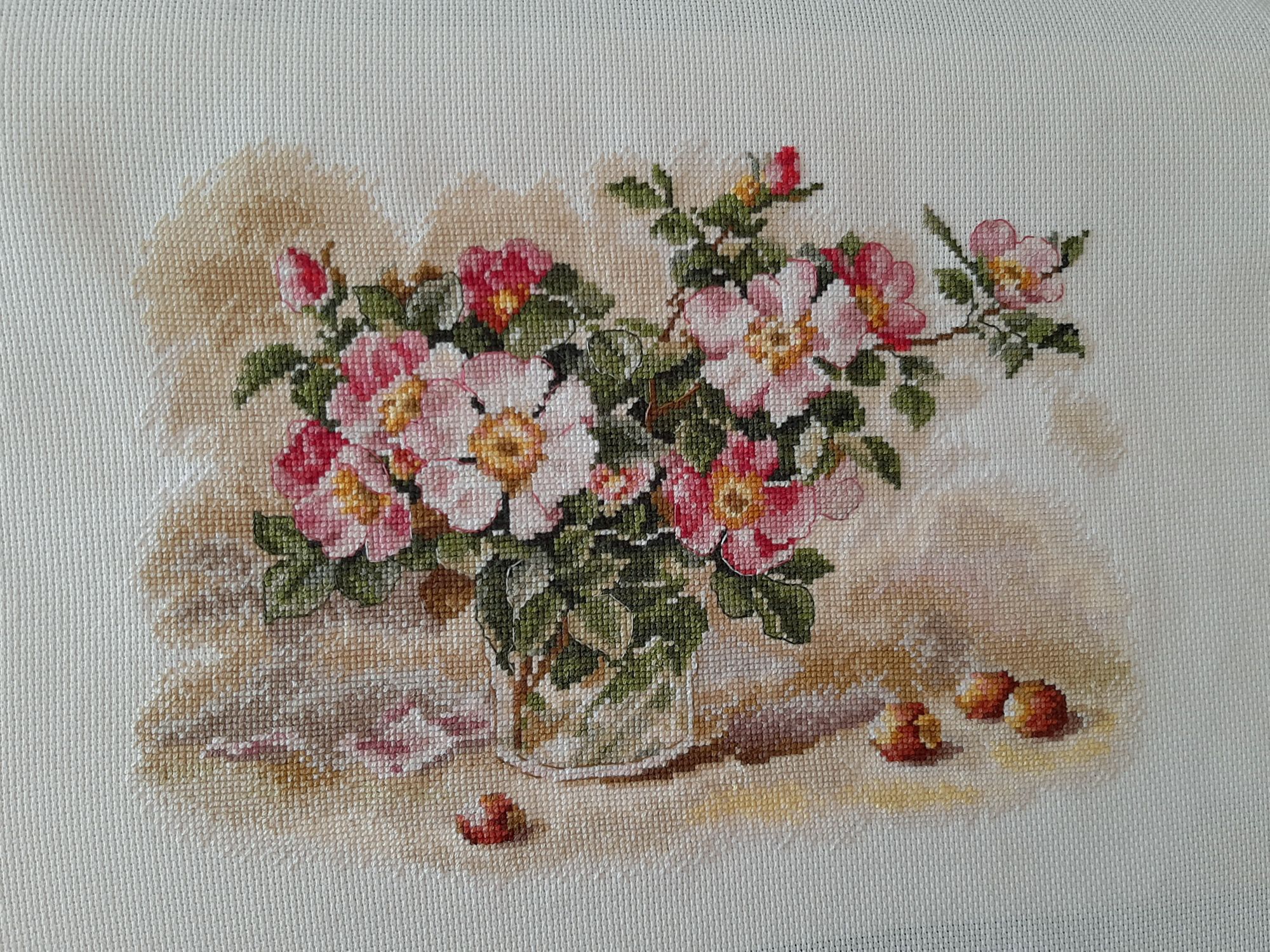 7 июня 2021 Кто дошьет процессов пачку, голосом героини Мордюковой из Бриллиантовой руки "Тот получит водокачку!" (с) Я дошила, вот только водокачка мне нужна не простая, а с горячей водой. Сволочи, отключили горячую воду безо всякого предупреждения, а прошлый водонагреватель мы год назад выкинули и покупку нового, естесстно, отложили до следующего раза. следующий раз упал на голову абсолютно внезапно, как снег зимой выпадает. Ну ладно, хватит о бренном, перенесемся к высоким материям, а именно - к перминовскому льну 28 st и цвайгардовской аиде 16 каунта. ФИНИШ №1 Схема Ланкевич Ольги Розы "Luxor" Процесс дважды подарочный - схему подарила Марина Маняша, а ткань для вышивки Ирина irisheckin. Лен чудесного цвета 086-257, называется golden, 46 цветов ДМС. Крест в 2 и 1 нити, полукрест в одну, довольно много бэка в 1 и 2 нити. Должна выразить истинное восхищение работой дизайнера! При взгляде на схему приходишь в ужас, но стоит лишь начать шить - и понимаешь, что при всей сложности схема предельно комфортна для работы. Особенно это относится к бэку, он вообще прорисован виртуозно (не судите по моему отшиву, моему бэку до виртуозности не доплыть никогда). Перминовский лен тоже не добавил простоты в отшиве - чуть только малость перетянешь нитку, тут же образуется дырища, на мое счастье, устраняемая. Но поскольку я льняные основы люблю глубоко и безответно, то трудностей не видела, кривых крестиков в упор не замечала, а исключительно получала удовольствие. Результат нравится безмерно. Это какая-то совершенно особеная вышивка, которая заметно отличается от всего, что я обычно шью, хоть это и розы. ФИНИШ №2 РТО M523 "Шиповник" 28*20см, аида кремового цвета 16 каунта, 47 цветов ДМС, крест и полукрст в 2 нити, чуть бэка, практически постоянная смена нитки, поскольку крестики кучками по 3-5-7 штук. Процесс был приятным, результат получился замечательным. Некоторые непонятки по ходу работы выплыли, но каких-либо затруднений, кроме мыслей "Нафига оно было надо?" они не вызвали. Непонятки: -зачем надо было чередовать крест и полукрест одним цветом в одинаковое сложение нитей? Когда полукрест на краю, это я понимаю, но когда островками... Эффекта от такого приема я не увидела -с десяток одиночек. Из разряда тех, которые спокойно можно заменить соседним цветом -два тричетверть крестика. Не, я понимаю, зачем делают тричестверть крестики на границе розового и зеленого, но почему только в одном цветке (далеко не центральном и самом крупном) и почему только два? -ну и перебор с количеством оттенков. Но такими мелочами нас не напугать и можно гордо минусовать парочку текущих процессов и плюсовать эту парочку в дошитое. Татуся, ОлюшКа, IrnKA и 43 других сказали спасибо Поделиться сообщением Ссылка на сообщение