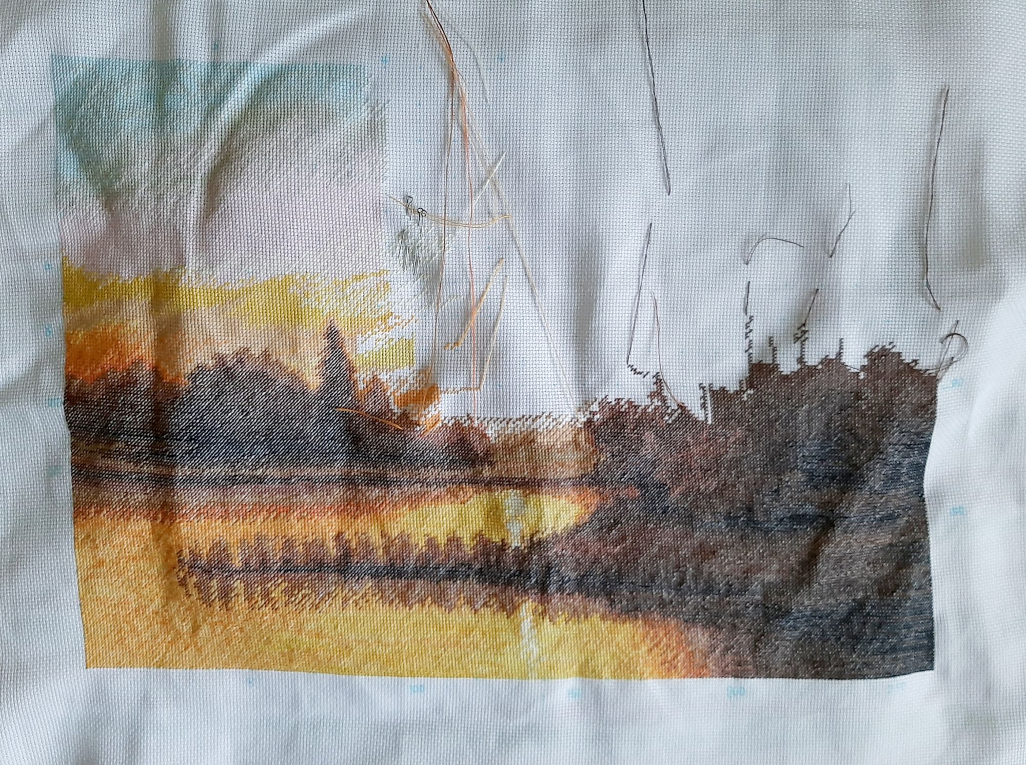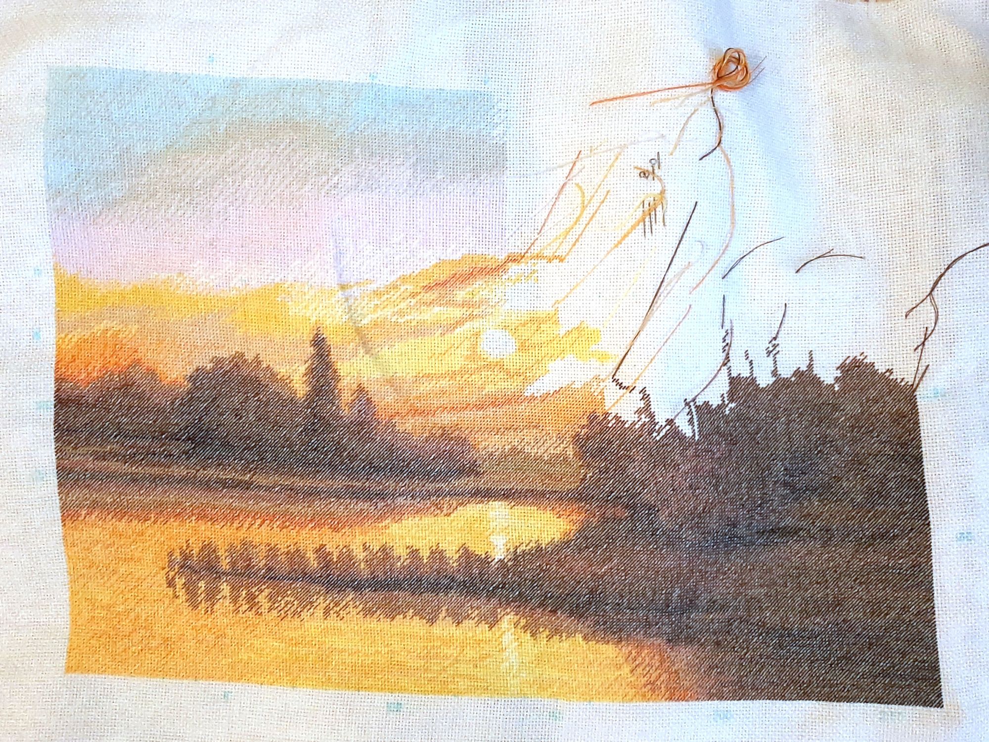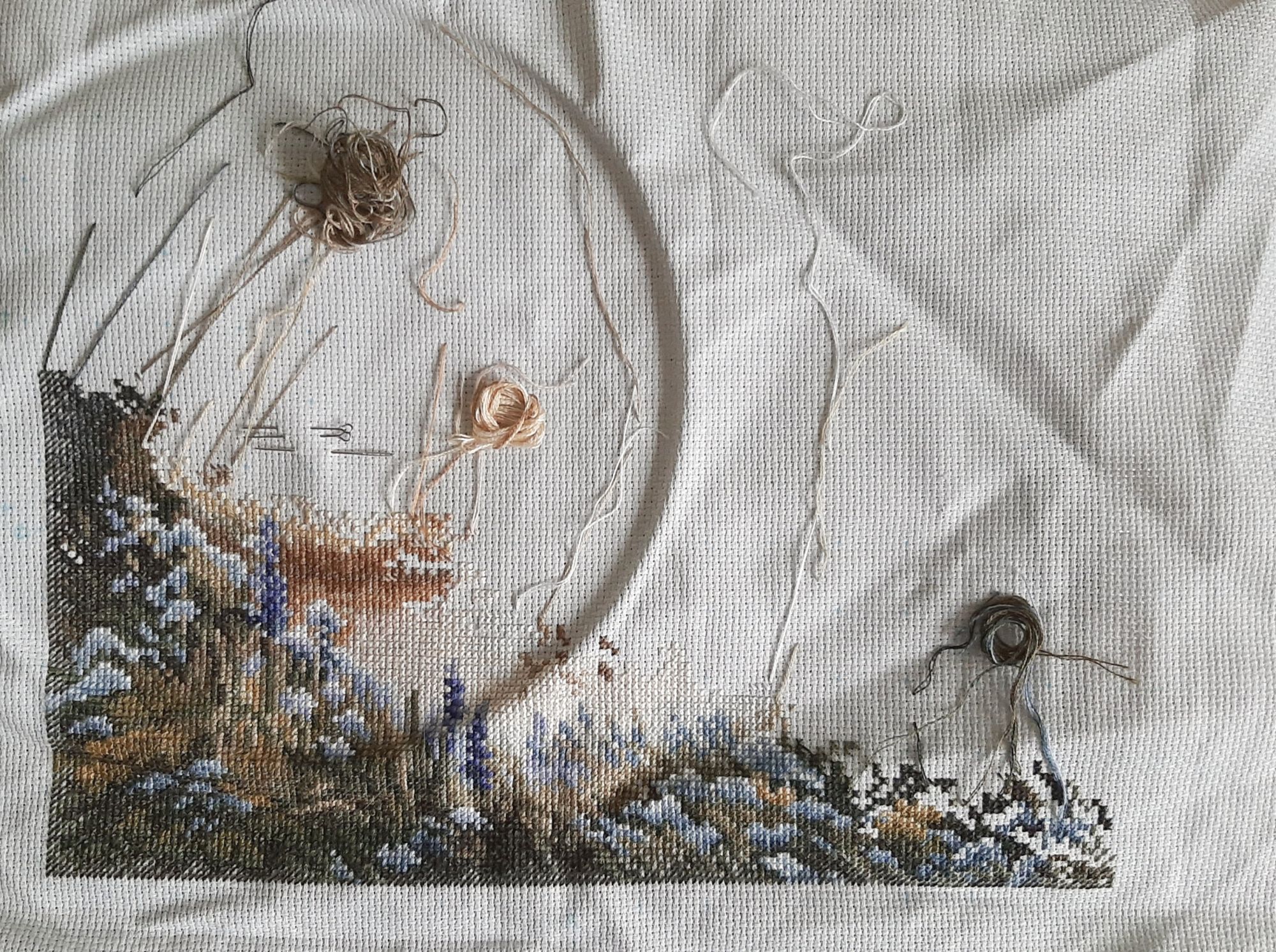 21 ноября 2021 Сообразим на троих? То бишь на три процесса - как показывает практика, бодро у меня они шьются именно по трое. 1. Кружева от РИолис было\стало Безумно нравится. Заставила себя от них оторваться, чтоб не съесть весь торт за один присест. Пока ни одной, даже самой крошечной, проблемки. 2. Несиреневый сиреневый от РТО было\стало и макрик, а то самой все время собственные крестики кажутся кривущими. Чем выше, тем меньше травяной разнооттеночной каши и тем проще шить. Как и ранье, из относительно четких объектов - только метелки дельфиниума. 3. Закат от НС было\стало Вот тут я покорячилась, поломала себе голову! А всему виной солнце (которое я почему-то все время называю луной, так что если ошибусь очередной раз, не удивляйтесь). Вся проблема состоит в том, что картинка выглядит так, что солнце висит впереди гор, чего в принципе быть не может. Ну или впереди облаков, что столь же невозможно. Первоначально я планировала поднять светило выше уровня гор. Но по ходу строгания неба убедилась в 2 вещах: -переделывать придется крайне много, поскольку кусок неба вокруг солнца придется высветлять, а делать это придется из головы -таки это не горы, а облака, поскольку пропахав все эти крестики собственными очками, поняла - не может линия гор быть такой рвано-пропадающей. Короче, было порото несколько раз и до сих пор не найден вариант, который бы устроил. Сейчас применена следующая отсебятина - линия горооблаков сглажена, убрала псевдо-горные вершины. Солнце задвинуто (как минимум была попытка задвинуть) за тучки - то есть по поверхности светила пущена некая облачная дымка. Итог задвигания - если затуманивать светлыми оттенками (как у меня сейчас), то никакой дымки не видно. Если брать на тон темнее (а перепробовано все, включая ДМС и остатки от наборов всех мастей) - получаются чужеродные пятна. Живьем на расстоянии 30см от носа, видно, что это облака. На фотке или на расстоянии больше метра облака неизменно уплотняются в горную гряду. Короче, кусочек вышит. Вышит специально короткими кусочками ниток в целях облегчения дальнейшей порки. Пока решила так - дошью, и только потом буду смотреть и думать. Не так не нравится и не эдак. Вернее, нравится все, кроме солнца. Засим раскланиваюсь. Всем правильных солнц на правильных местах! Tata44, Вазязька, Lusha73 и 33 других сказали спасибо Поделиться сообщением Ссылка на сообщение