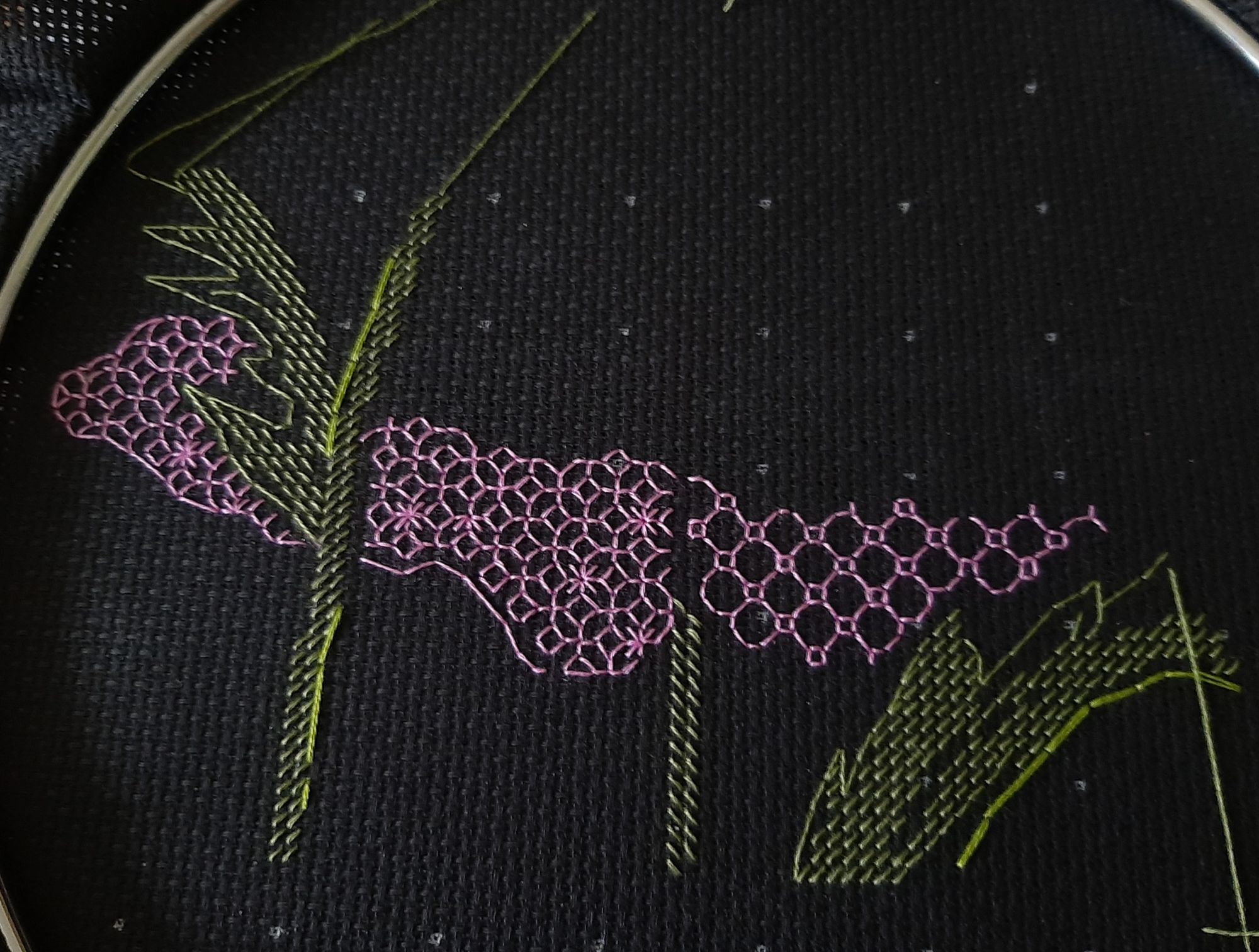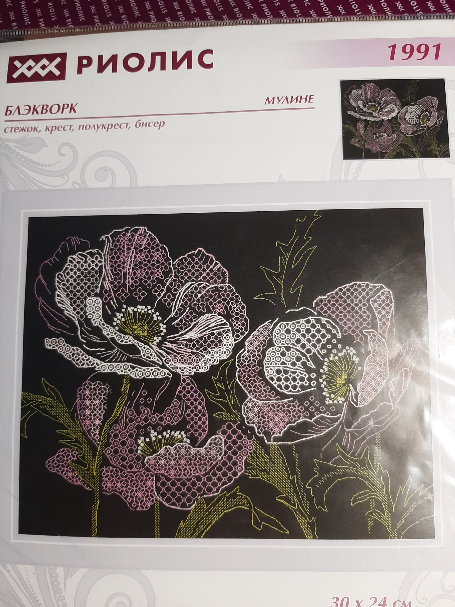 14 ноября 2021 Тадамммм! Новый процесс. Юбилейный - стописятый. Мне стало сразу же понятно, буквально при первом взгляде на анонс новинки - меня чаша сия не минует. Риолис 1991 "Кружевные маки" Размер 30х24см, 6 цветов мулине Анкор, бисер 1 цвет, аида 14 черная, вышивается в 1 и 2 нитки. Если сравнивать с двумя предыдущими блэкворками, то в этом у меня нет претензий по оттенку зеленого, по чрезмерной интенсивности изображения, как у Шиповника. В этом дизайне все тонко, изящно и умеренно. С учетом того, что начала я только вчера вечером, весьма шустро. Ну, этож блэкворк - если его любишь, он отвечает горячей взаимностью и укладывается под пальцами, как ласковая кошка. Все! Юбилейным процессом похвасталась и бегу к нему обратно - зовет он меня и манит. Да здравствует блэкворк! Людмила Мизина, Nadinka-Blondinka, maui и 37 других сказали спасибо Поделиться сообщением Ссылка на сообщение