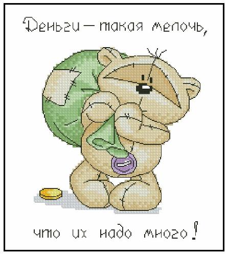 17 августа 2014 Девочки, огромное спасибо вам за похвалы, это так приятно!!! Давно планировала вышить забавную картинку на тему денег, свободного времени, т.е. безделья и ещё чего-нибудь с этим связанного. В общем, некая "мечта идиота". К тому же у меня завалялось несколько рамок из Икеи с паспарту из трёх окошек. Выбрала в нете схемы мишек "Физзи мун". Все три работы вставьте, пожалуйста, в одну гаечку, они будут оформлены вместе. Аида 18 каунт, нитки ДМС. Схемки простые, шьются очень просто, вот только бэка очень много. Одна картинка готова, вторая - на подходе. Rezavy, Juliay, zoarka и 12 других сказали спасибо Поделиться сообщением Ссылка на сообщение