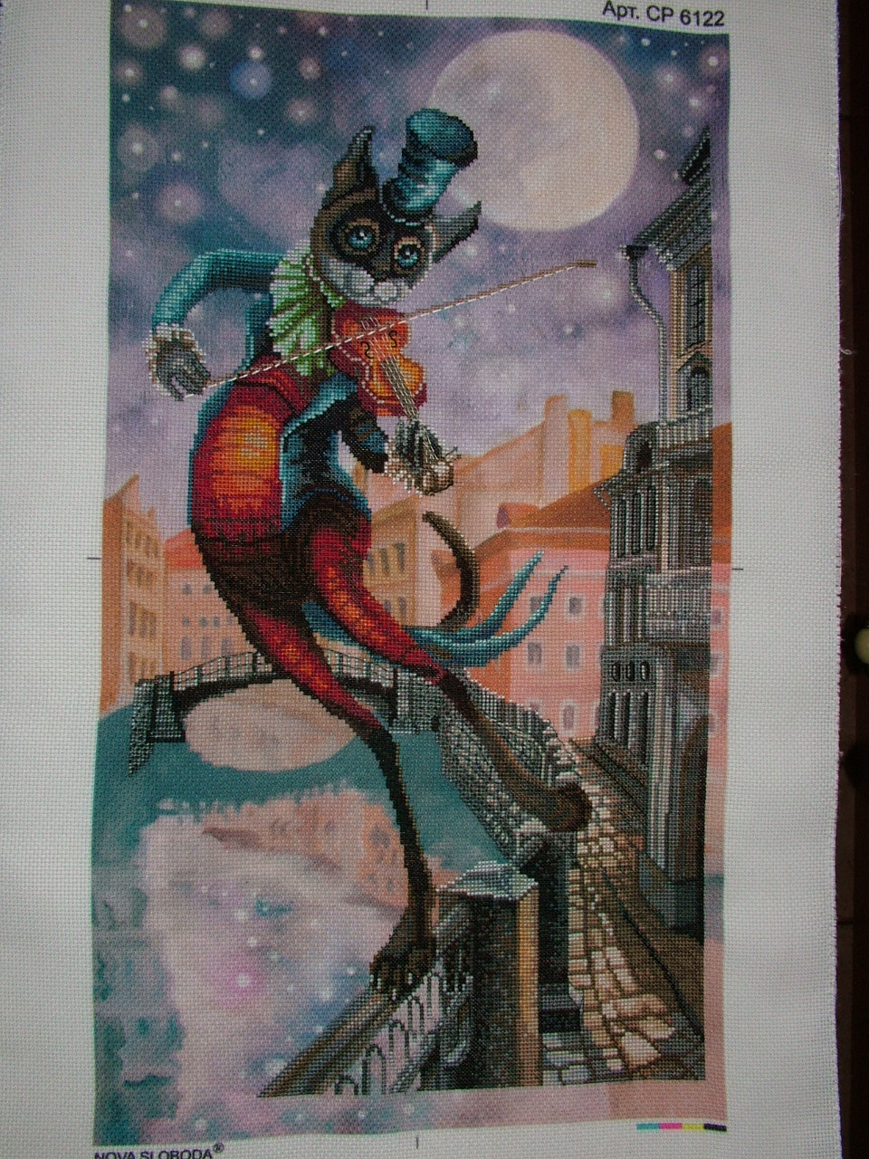 6 июля 2015 Ну как, к розам не вернулась еще? Не-а, и пока не тянет что-то... Вчера было на редкость вышивальное настроение, сошлись все факторы. Выходной день, у нас резко переменилась погода, стало пасмурно и холодно. Муж целый день играл очередной турнир по гольфу, занял первое место в своей категории и даже привёз приз - набор из 6-ти хрустальных бокалов. А я с удовольствием вышивала. У кота появилась вторая... (так и хочется сказать рука)... лапа и непонятно-зелёного цвета жабо. Всё-таки он модник! Наталья2013, ole4k@, fenix34 и 2 других сказали спасибо Поделиться сообщением Ссылка на сообщение