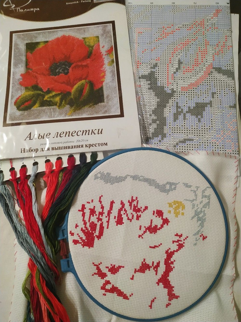 22 августа 2019 10 часов назад, МарСанна сказал(а): Юля, со всеми юбилеями! Здорово, когда семья большая! Полюбовалась на маки. Красивый красный - люблю такой чистый, без примесей, цвет. Мариночка, спасибо! Сама от красного балдею!!! Я посмотрела по схеме, серединка в 3 нити шьется, более темным красным, мне кажется должен получиться эффект полупрозрачности краев лепестков.... интересно получится ли... 1 час назад, AssOlka сказал(а): Юля, с началом нового процесса!) Маки в вышивке всегда смотрятся эффектно! А какие насыщенные красные оттенки... ммм))) И схемка, видно что хорошая) Спасибо, Ольчик, давно хотела мак какой-нибудь вышить, этот набор и приемлемый, и легкий, и понравился, и можно будет подушечку сделать... А схема, да, очень простая. Короче я кайфую!!! Egelia, vasilisa-1977, МарСанна и 1 другой сказали спасибо Поделиться сообщением Ссылка на сообщение