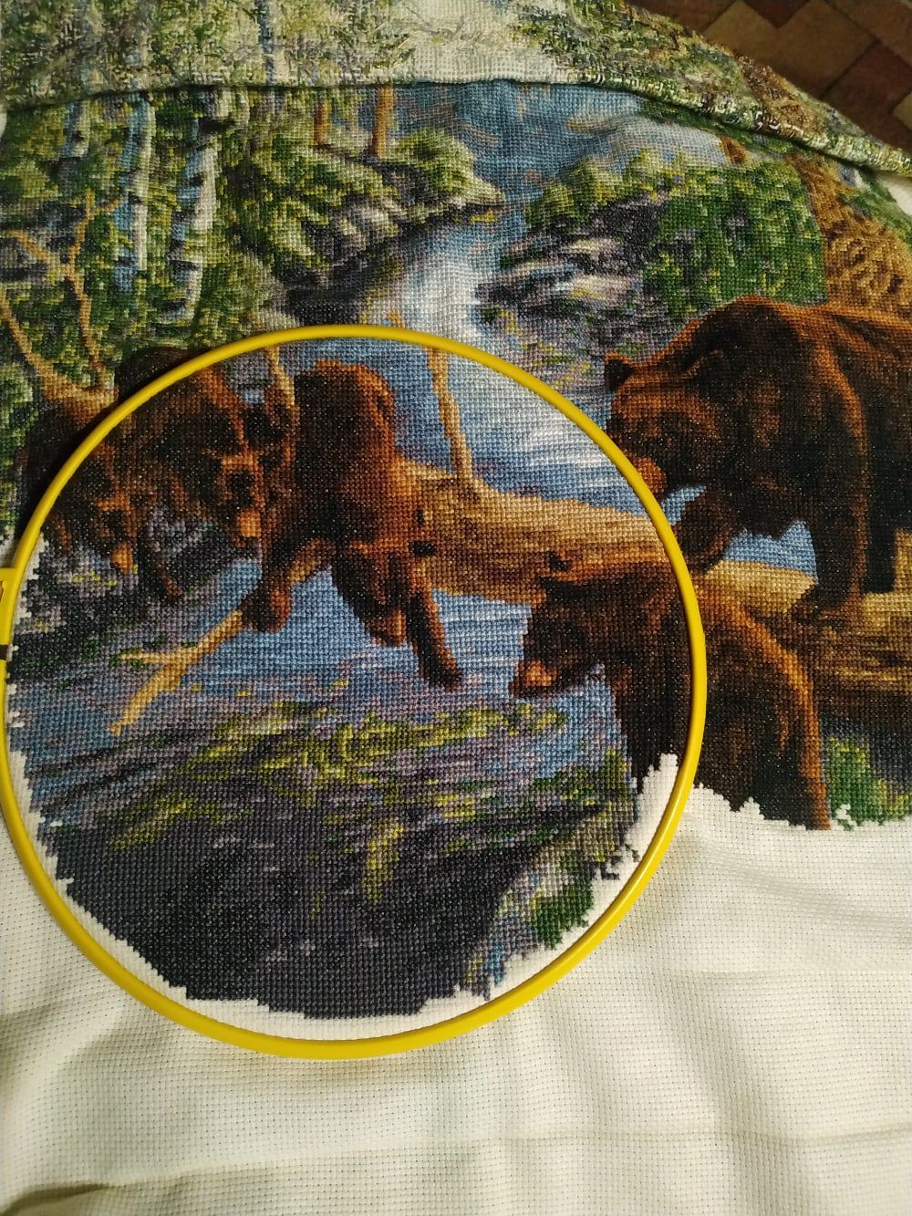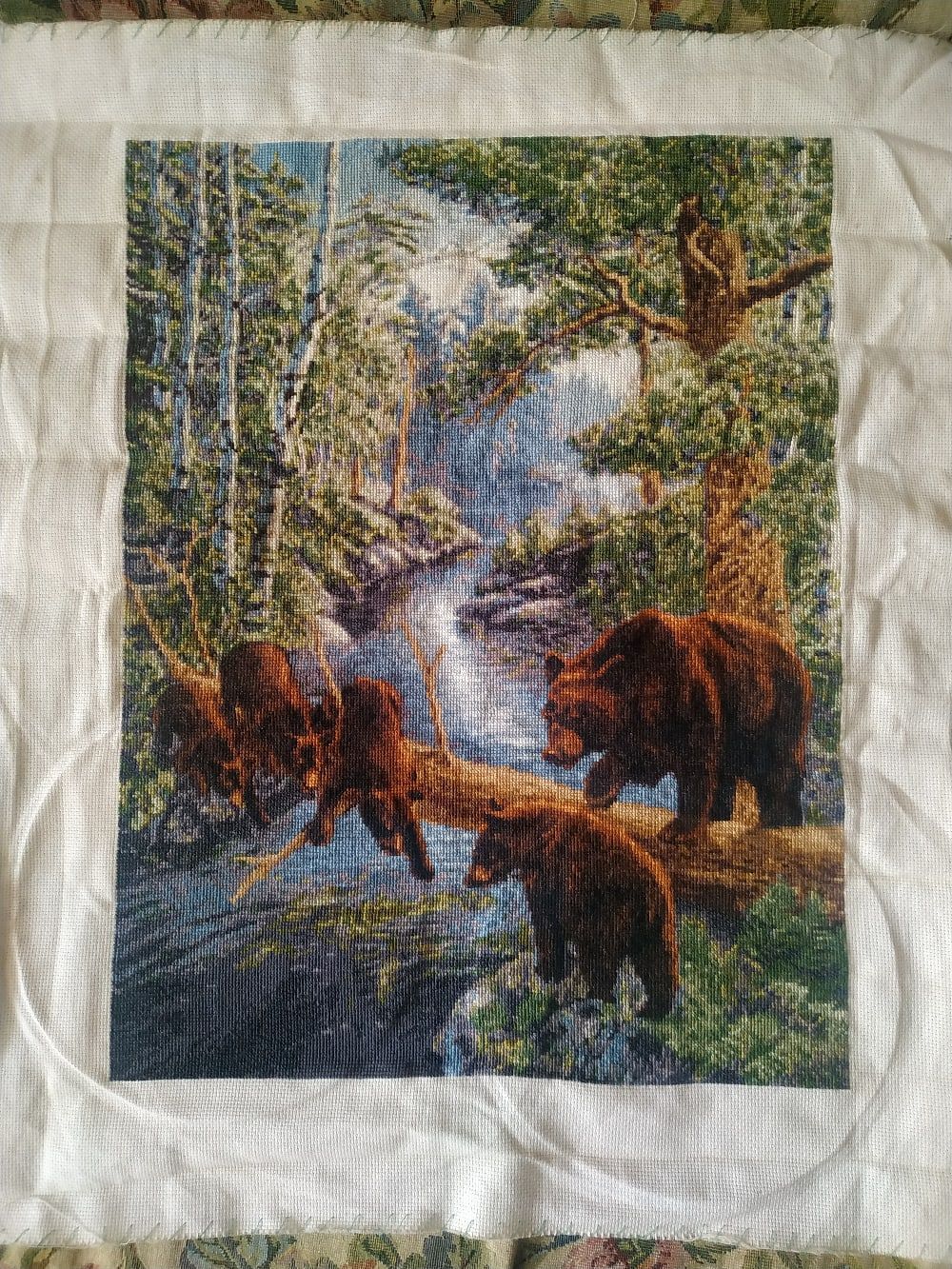18 августа 2020 Всем добрый день!!!! К сожалению не получается быть постоянным посетителем форума, только забегаю по возможности. Даже за всеми подписками не успеваю следить, так что, девочки, извините, если давно к кому-то не заходила. Я закончила "Медвежий край" от ЗР!!!! Ура-ура!!! Очень рада этому событию! Начинала аж в марте 16-го года, потом на три года забросила вышивку вообще, а в 19-м снова взялась, думаю, если отбросить периоды простоя, то я бы эту работу могла бы осилить за год. Но я никуда не гонюсь! Вешать пока некуда, дом строим, надеюсь когда-нибудь повесить эту картину над камином и любоваться зимними вечерами))) Мечты-мечты.... пока полежит не оформленная, подождет своего часа. Итак было: Стало: Постирана и выглажена: А это в сравнении с оригиналом: Конечно не скажу, что нет вопросов по разработке, но, это все же вышивка, а не рисунок, я все равно довольна! Ну и сразу же начала новый процесс "Пионы" от Алисы, сразу такой цветовой контраст с медведями не может не радовать: Еще у меня случилось такая вышивальная история, которая дала мне кое-что понять для себя в вышивке. Моя очень хорошая подруга со дня на день должна родить долгожданного ребеночка, где-то в начале июня, я решила начать для нее вышивку "Полеты во сне" от ЗР, начала, понимала, что для моих темпов времени маловато, еще и отпуск мужа, в общем я вышила, где-то треть к середине июля и поняла, что я не успеваю, процесс не приносит радости из-за спешки и давления "надо" и я обратилась к маме за помощью. Мама закончила за 10 дней и теперь готовая картина, ждет своего часа. На обратной стороне напишу метрику. А я поняла для себя, что я не умею вышивать в спешке, если и браться вышивать что-то к дате, то или очень заблаговременно или не браться вообще. Как-то так. Это все вышивальные новости! Всем всего наилучшего!!! Хельга, махно, Любушка1985 и 22 других сказали спасибо Поделиться сообщением Ссылка на сообщение