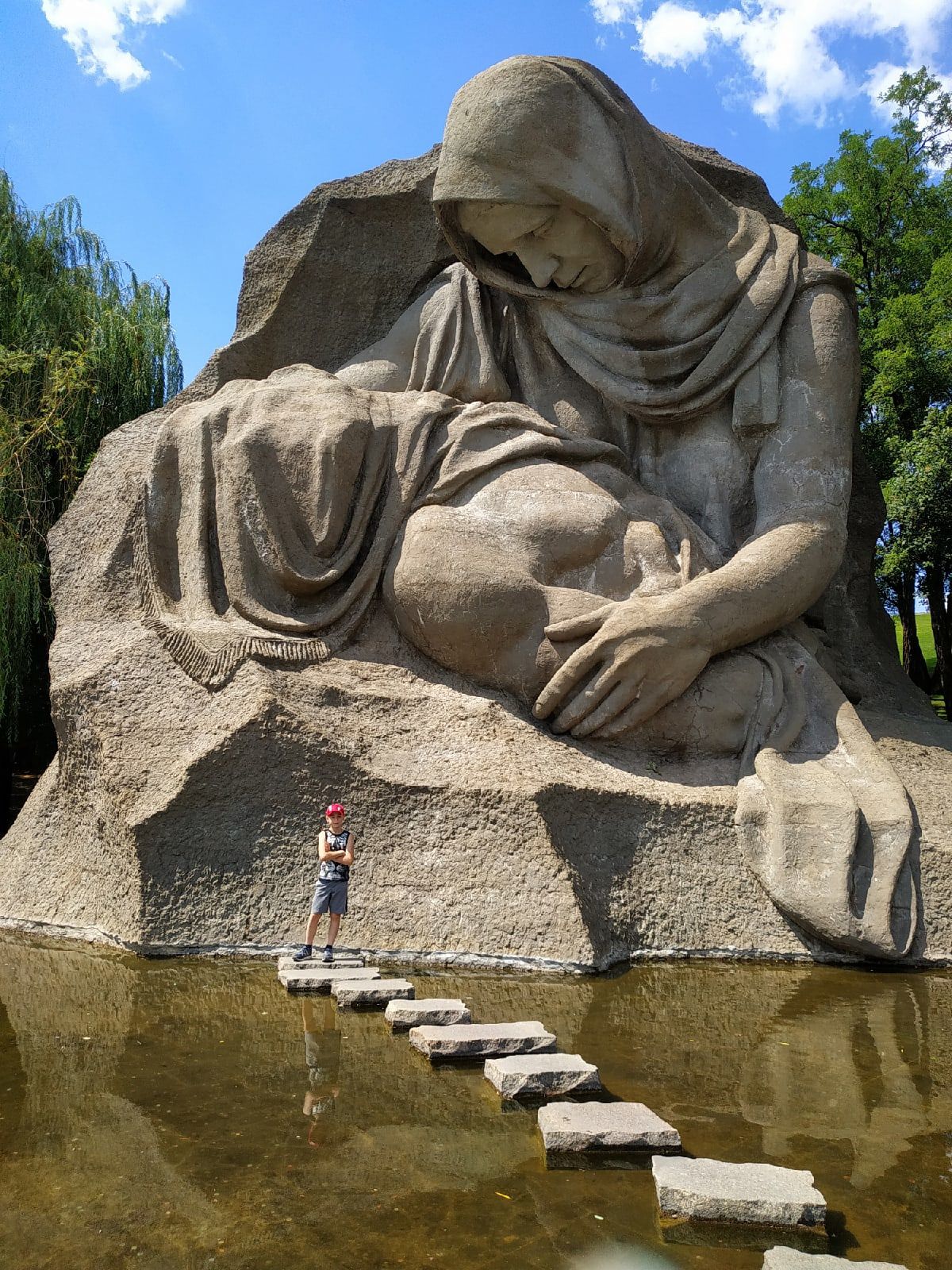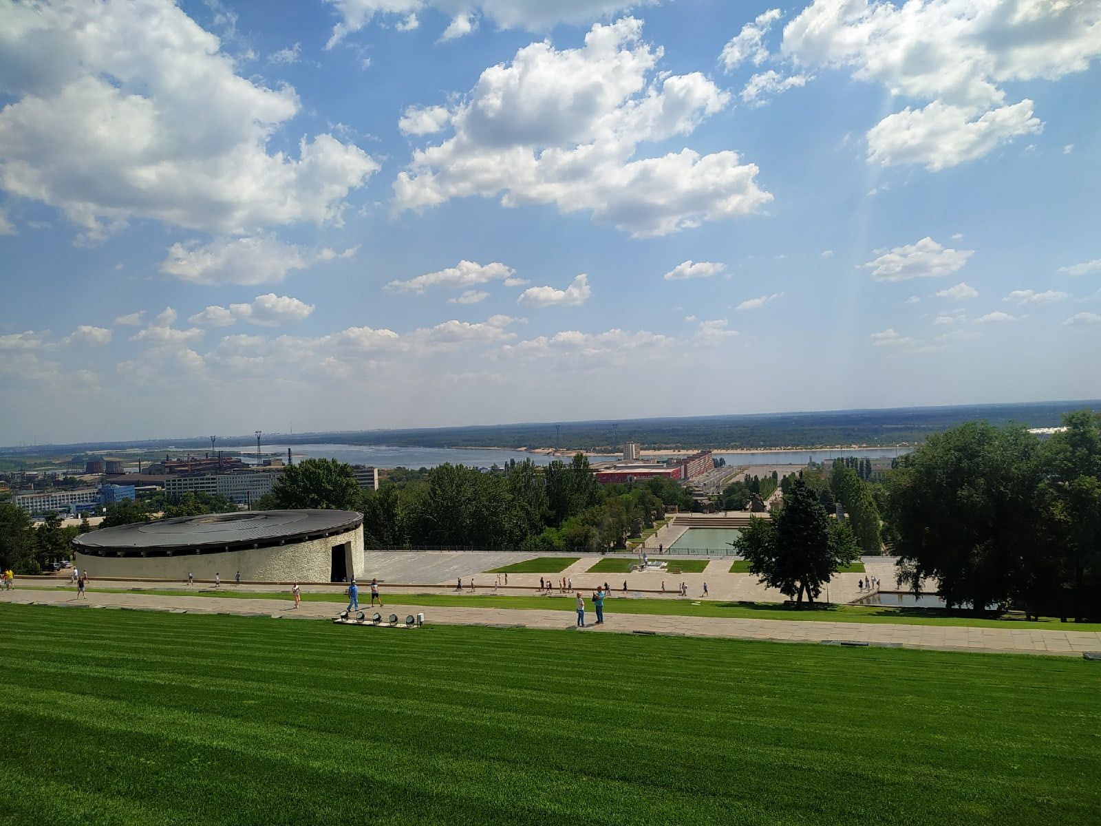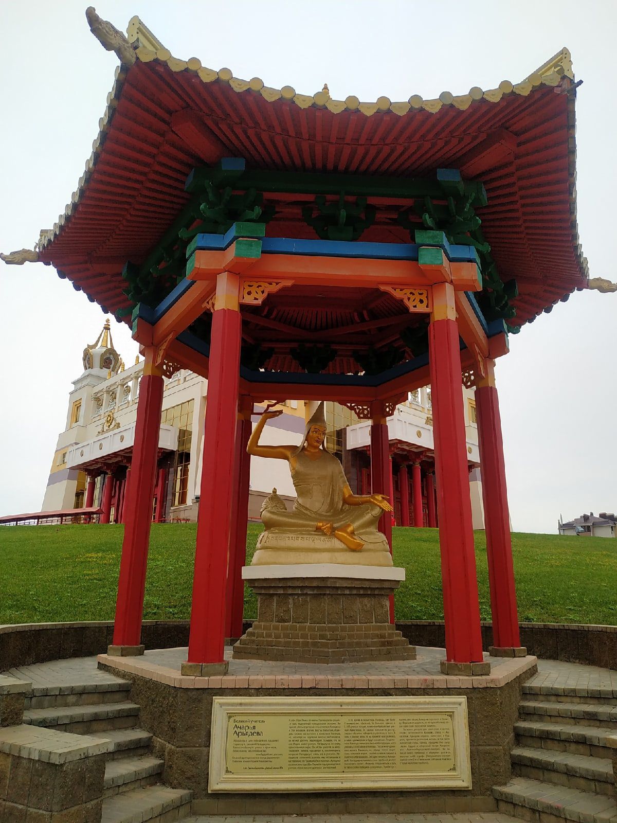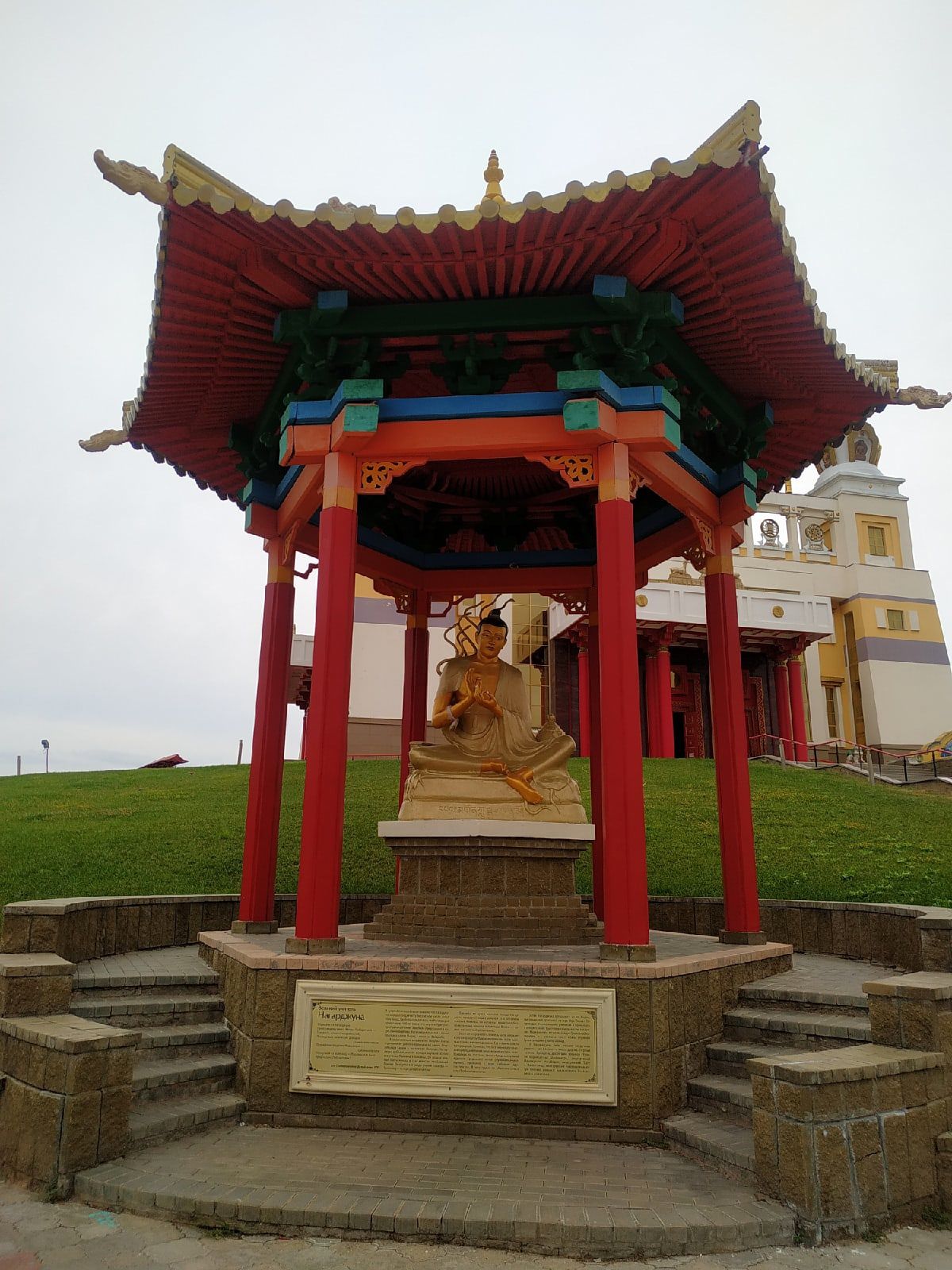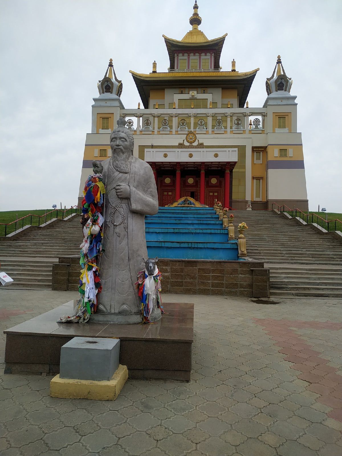 13 августа 2021 Всем привет! По традиции - сначала о вышивке. Продвижение в Розе! Отличный процесс! Все очень нравится! Немного цвет более яркий получился на фото "стало". было: стало: Продвижение в Кофейне! Очень нравится процесс и как получается! Стройка у меня идет фантастически - сверху-вниз))) Но уже появляются двери! По-моему во всей работе есть немного проблема с перспективой в фасаде, но я не хочу придираться, мне все-равно всё нравится! было: стало: В кой-то веке и у меня случились покупочки! Хомяк мой совсем не навязчивый, но даже он иногда просит, чтобы его побаловали. И вот в первый раз в жизни я ощутила, что мне очень хочется вышить что-то новогоднее. А у Чудесной Иглы в этом плане такие классные разработки появились. Так как и Роза и Кофейня все же уже ближе к завершению, возможно следующим процессом как раз станет новогодний. Ну и Французик! Не смогла удержаться! После появления этой породы в моей жизни, я в них влюбилась! Про вышивку всё! Про путешествия! В этом году вместо моря мы решили съездить в город-герой Волгоград! Давно хотели туда съездить и сами посмотреть и детям показать места боевой славы, и в этом году решились таки, тем более на Краснодарском побережье и народу много и катаклизмы всякие. Был вариант опять в Дагестан на Каспий, но решили все-таки на Волгу! Наш маршрут пролегал через республику Калмыкию и ее столицу Элисту. Поэтому заодно мы естественно посетили интересные достопримечательности этого города. Дорога до него очень скучная, степь да степь, ни деревьев, ни рек, ни-че-го. Да еще и дождь с туманом пол дороги. А сама дорога - стиральная доска В общем, именно в пути было тяжко и не интересно. Только небольшие кустики перекати-поле перебегали иногда нам дорогу. В Элисте мы посетили Золотую оби́тель Бу́дды Шакьяму́ни — крупнейший буддийский храм Республики Калмыкия, один из крупнейших буддийских храмов в Европе. Расположен в центре Элисты. Ну что сказать - необычно! Вся территория и сам Храм симметричен со всех четырех сторон. В интернете нашла фото сверху этого храма, для наглядности. Внутри храма фотографировать было нельзя. Заходить в него можно только разутыми, девушкам в брюках даются куски ткани с веревочками, чтобы можно было сделать типа юбки. Внутри расписные стены различными изображениями будды и какими-то фантастическими животными и 9-ти метровая статуя самого Будды. Стоят низкие лавочки и все на них сидят. Перед Буддой помост, на который можно заходить только верующим. Ворота тоже расположены с четырех сторон, но открыты были только одни. На них навязаны множество тряпочек, по-видимому с молитвами. Также есть барабаны, на которых тоже написаны молитвы и их надо крутить (чтобы помолиться, я так поняла) На центральной площади города расположена Пагода Семи Дней (название связано с семью Буддами пришедшими в наш мир) в центре также расположен молитвенный барабан. Правда дети, которые там гуляли - просто хватались за него руками, поджимали ноги и крутились - такое развлечение, и никто их не ругал мы своим такое, конечно, не разрешили. Тут же на площади и чуть дальше еще несколько национальных достопримечательностей. В общем, немного погуляли и поехали в Волгоград! Город нам понравился! Волга, конечно впечатлят! Погуляли по вечерним улочкам, посетили Мамаев курган и Родину мать! сходили в музей-панораму Сталингр