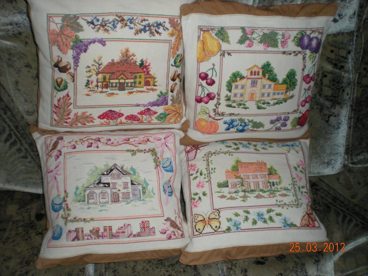 19 августа 2021 1 час назад, maui сказал(а): Юля, мама твоя - супер - женщина! Спасибо. Оленька 1 час назад, vasilisa-1977 сказал(а): Юля, это немой восторг! Это Не просто много подушек! Она же ещё и цвета сама меняет в наборе и очень удачно! Представляю, какая у неё дома " думочная " красота!!! Или дарит? Спасибо, Танюш Я уже как-то где-то писала, что моя мама уникальна в плане вышивки, даже для меня. Ей особо нет разницы ЧТО вышивать, конечно себе она предпочитает цветы или пейзажи, но ей главное не "в шкаф", сестре она вышивала фэнтези, которое ей самой вообще не нравилось, другой сестре обнаженную девушку - тоже не ее сюжет совсем, мне африканские сюжеты. Т.е. лишь бы это нравилось обладателям! Поэтому ей и не составляет никакого труда вышивать повторно одни и те же сюжеты и даже большие. Например она дважды вышивала ЗР "К дальнем берегам", а там размер 40*40 примерно на 16-й канве, причем второй раз подбирала нитки к остаткам. В плане подушек - она их тоже дарит всем желающим, причем абсолютно не переживает, что ими будут пользоваться, а не ставить в качестве декора, мне, например, свои работы жалко. У нее самой 4 маленьких подушечки, которые она вышивала раньше, такие же "Орнамент с розой" назову их так, пользуются ими все постоянно. Вид, конечно уже немного потеряли, но ей не жалко. Мне и двоюродной сестре вышивала комплекты с домиками - времена года, те что были у меня, к сожалению уже пришли в негодность, но детки выросли с ними. (почему-то фото не вставляется в текст, просто прикреплю в конец сообщения). Вышивает она на руках и очень быстро, а в зимний период - времени предостаточно, тем более внуки все уже подросли и мы ее практически освободили. mag, fenix34, Egelia и 16 других сказали спасибо Поделиться сообщением Ссылка на сообщение