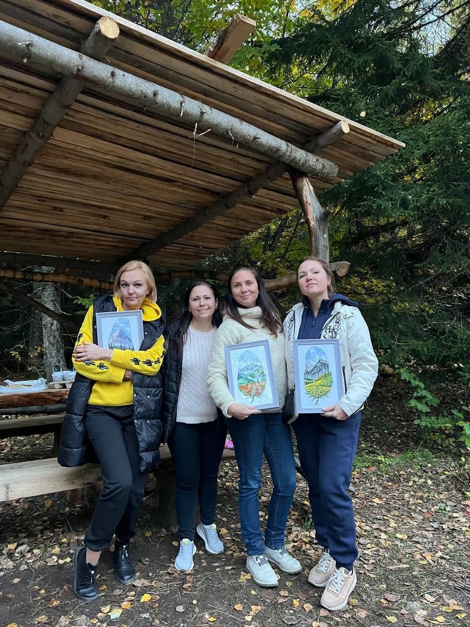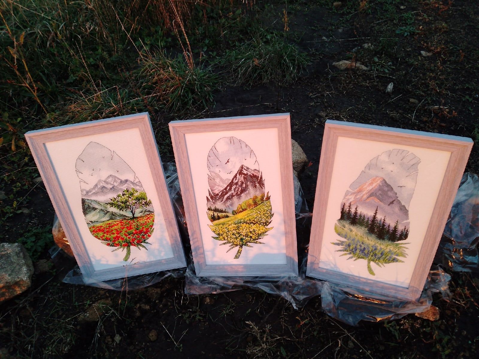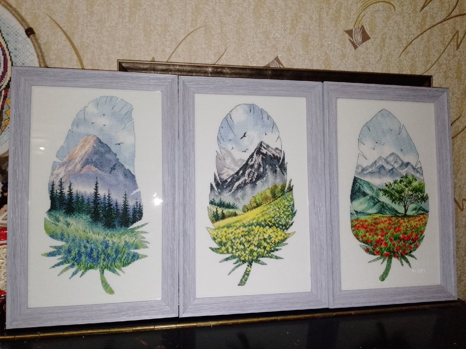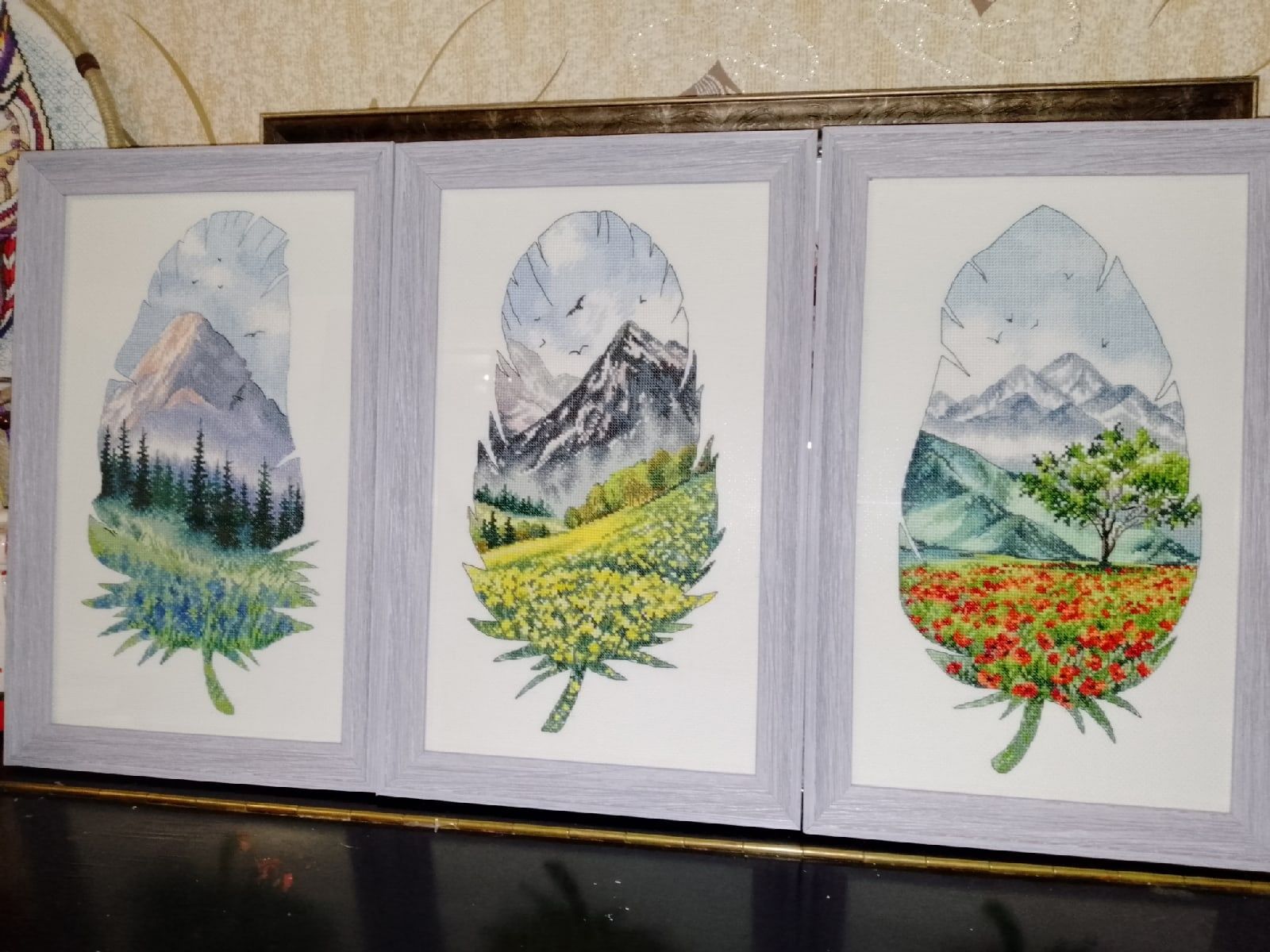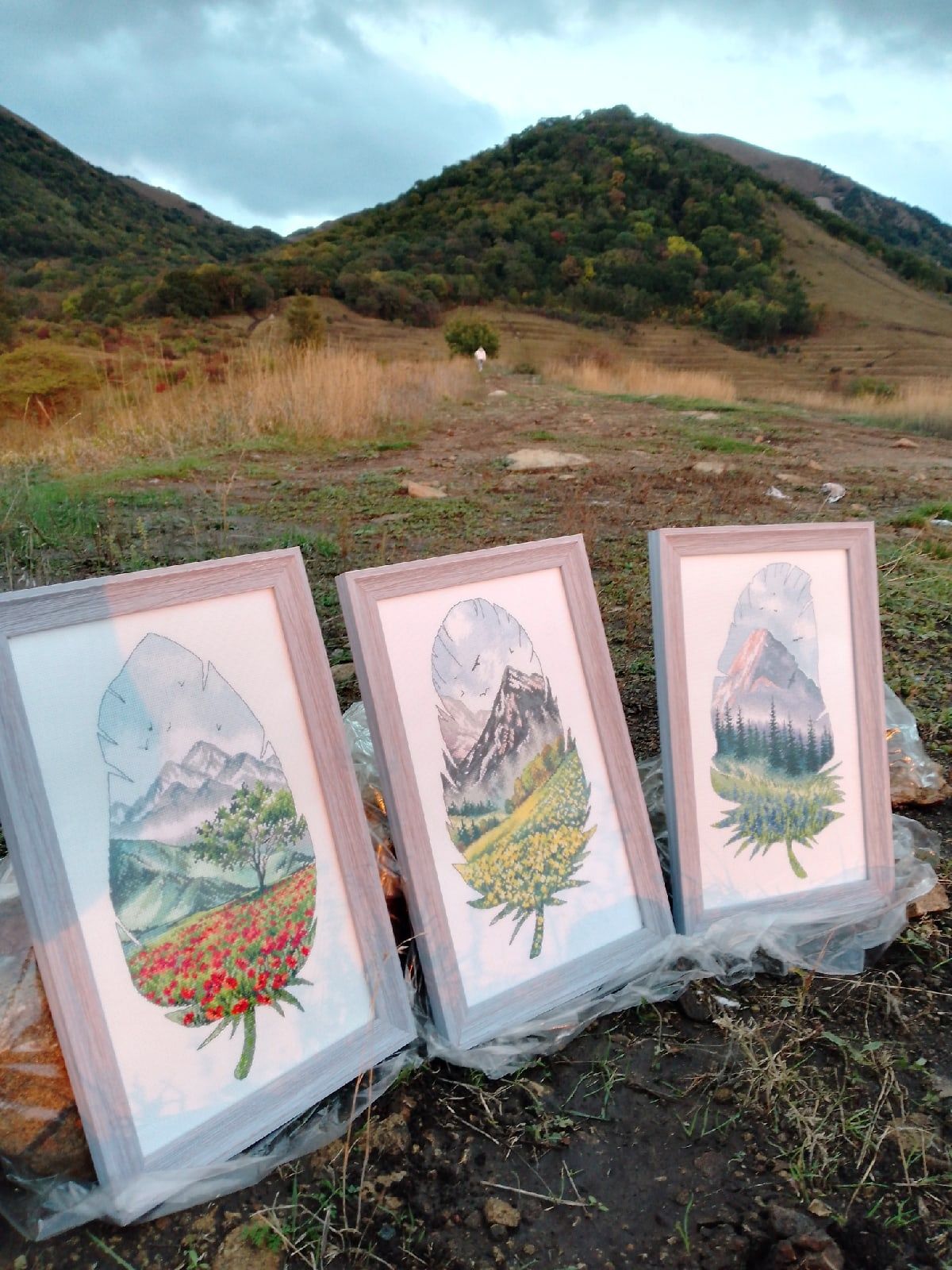 20 октября 2022 14 часов назад, Juliay сказал(а): Ну что ж, что-то я никак не могу настроиться на рабочий лад, поэтому напишу-ка отчет. Всем привет!!! Еще раз всем огромное спасибо за поздравления и пожелания!!!! Очень-очень приятно!!!! Но отдельное спасибо хочется сказать девочкам, которые меня еще и одарили в мой день рождения! Олечка @Путешественница, Олечка @OlkaY, Наташенька @Lorans, Танечка @vasilisa-1977 и Машенька @Маса, спасибо вам большое-пребольшое!!!! Ваше внимание ко мне так приятно!!! Я так рада, что вы есть! Девочки подарили мне денежку и я сразу же заказала два наборчика, которые просит душа! Они сказочные, волшебные и воздушные Смотрите сами. Ну что ж, если кто-то ждет продвижений в процессах, то их не будет. Не вышивала уже больше недели. Готовилась к встречи подруг! Надеюсь вы помните с какой задумкой я вышивала перышки?! Так вот, подруги все таки ко мне прилетели, хотя события конца сентября в стране, как и в феврале не располагали к путешествиям, но мы решили, что пока есть возможность встречаться - надо это делать, не известно, что будет завтра. И я отключилась от внешнего мира на целых 4 дня! И реально смогла отвлечься и не думать, что где-то страшно, так не хочется возвращаться в реальность.... Ну что ж, 13-14 октября прилетели девочки! Радости от встречи не было предела! И сразу сказали - веди нас в горы, веди на Бештау! Еле отговорила, маршрут явно "не с дороги", и как оказалось очень правильно. Повела их на небольшую гору Остренькая, так они трусишки даже до середины не поднялись Потом поехали в термальный источник купаться. Ну а потом отдыхать и праздновать! Ростовская подруга привезла раков, с Севера прилетела вкуснейшая рыбка, ну и конечно же Карачаевское пивко и Прасковейское вино. Я почти не пила, потому что на следующий день планировалась поездка в Домбай и я за рулем. Утром проснулись погода очень-очень сомнительная - идет дождь и туман. Но мы в любом случае едем, вроде бы в Домбае по прогнозу переменная облачность и небольшой дождик. Подъезжая к Черкесску, туман стал рассеиваться, а дальше стало вообще замечательно. В горах видимо последние пару дней не было дождей, вода в реке чистая и голубая! Первый наш маршрут к Шоанинскому храму!!! Я сама там первый раз побывала и так рада, что именно сейчас - в золотую осень - это тааааак красиво!!! Фото не может передать то что видели наши глаза. В самом храме есть вышитая икона В беседке можно позвонить в колокол, что мы и сделали, загадав желание! Едем дальше, до Домбая уже не далеко! Дорога потрясающая!!! Перед поездкой планировали заказать одинаковые футболки для фото, но посмотрев погоду решили, что лучше дождевики))) Но по факту оказалось, что и они не нужны, поэтому мы решили купить одинаковые шапочки. Зато легко было не потерять друг друга из виду))) Поднялись на канатке, полюбовались горами и орлами! Сказать, что девочки были восхищены - ничего не сказать!!! Просто восторг!!! А глинтвейн какой вкусный....ммммм.... Начинает темнеть, пора домой, а я еще не осуществила задуманное. На обратном пути находим деревянную беседку, останавливаемся, чтобы перекусить и я вручаю девочкам свои Перышки!. Ну что могу сказать: сюрприз удался! Им очень понравились, а я довольна, что им останется память об этой встрече. Ну и еще фото перышек, когда забрала из багетки пыталась сделать фото на природе, но уже был закат и фото не вполне удались. И