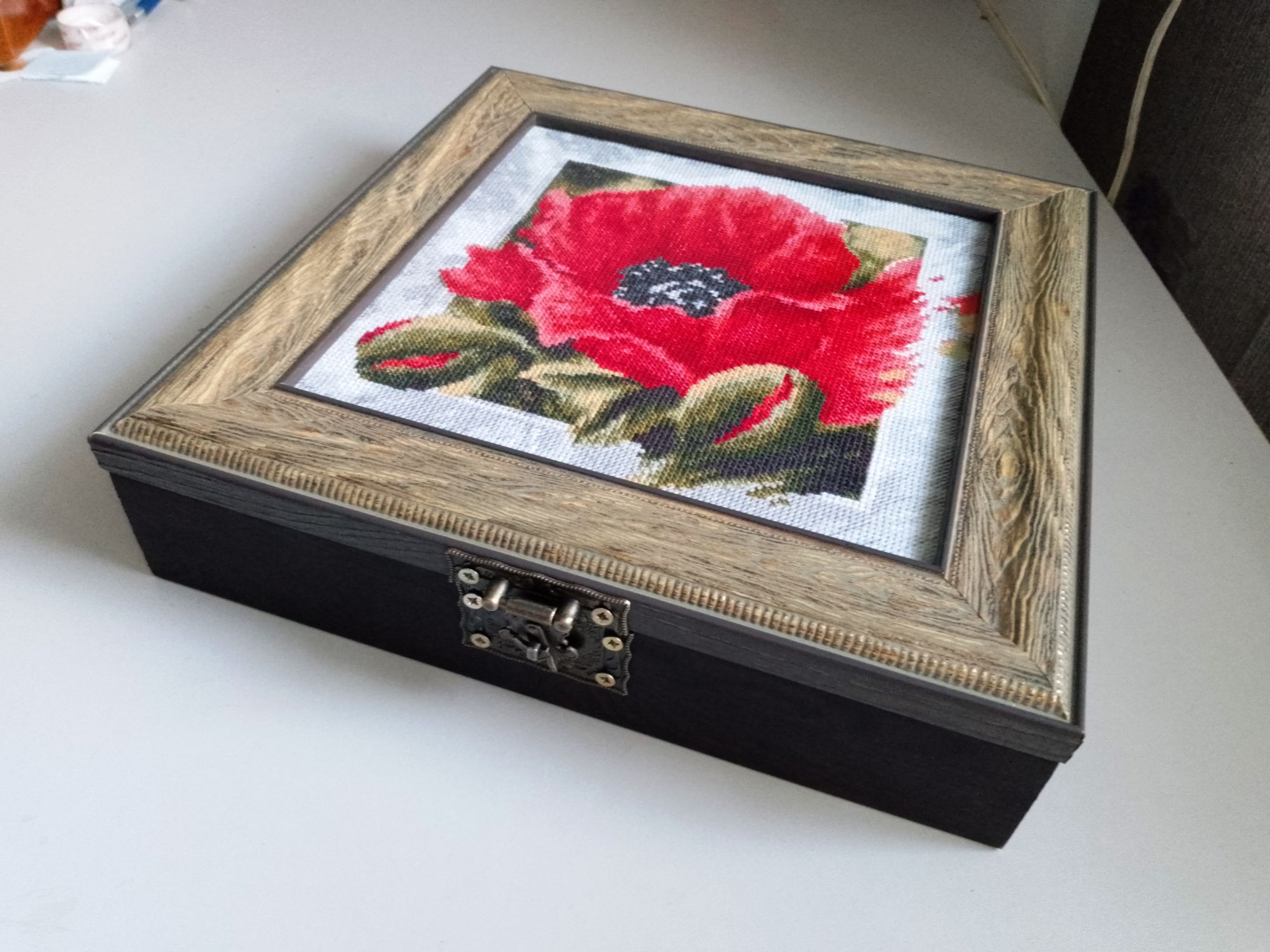 26 октября 2022 Только что, Juliay сказал(а): Всем привет. Хотела взять паузу, дать обет молчания, объявить период (день, неделю,месяц) тишины, но для меня, болтушки, это очень сложно. Почему я так хотела сделать - просто какие-то неприятности навалились, за 13 лет вождения автомобиля, за последнюю неделю у меня случилось две аварии Ничего сильно серьезного, но это все-равно очень расстраивает и наводит на определённые мысли: что-то хочет мне сказать вселенная.... что? Вторая авария случилась вчера, когда ездила в багетку за оформленной вышивкой, была тааааакая довольная и радостная и тут бах..... Ладно, не буду думать о плохом, как сказал муж "Не ссы, всё будет хорошо" (П-поддержка) поэтому этим и буду руководствоваться! Хоть и не с радостной ноты начала, но продолжу о хорошем! Давно я мечтала о шкатулке! Когда дочка спросила "зачем она тебе?", я ответила "не нужна, но очень хочу!" И вот у меня на конкурс есть второй претендент. "Алые лепестки" от Палитры. Сначала, когда думала об оформлении планировала рамку какую-то резную и не широкую, но такие варианты совсем не нравились. Не резные рамы даже смотреть не хотела, но когда девочка приложила этот багет - я влюбилась! Мне кажется он просто идеально подошел. Фото к сожалению все равно не передает как оно в живую, но получилось очень стильно! А еще она довольно большая получилась, размер вышивки 20*20 (но правда немного "съело" все-таки оформление) и плюс рама примерно 4-5см. Не знаю как будут голосовать в конкурсе, но для меня моя шкатулка уже победила, я в нее просто влюбилась! Фото, которые мне скинули из багетки: И мои, уж как смогла. (Попробовала на улице по Надиной инструкции, какой-там для меня оказалось не реально) Ну вот такие дела, успела все-таки отправить вторую заявку на конкурс. Теперь будем ждать начала, голосовать и болеть за свои работы и за фаворитов! Всем удачи. (Еще, кстати, забыла написать, что оформление вышло вполне приемлемое, видимо у нас в багетке цены не поднялись, даже дешевле вышло, чем в прошлом году мне примерно считали) Юля ,как хорошо, что ты успела к конкурсу. Оформление шкатулки мне ооооочень понравилось! То,что надо! И мак такой чудесный, яркий,а багет подчеркнул его красоту. И я тебя понимаю в желании иметь такую вещицу. Тоже люблю всякие штучки. А черная полоса все таки должна закончиться. Сама не знаю кого в этом убеждаю,себя или тебя.... наверное всех нас... vasilisa-1977, Fascinata, Аринесса и 5 других сказали спасибо Поделиться сообщением Ссылка на сообщение