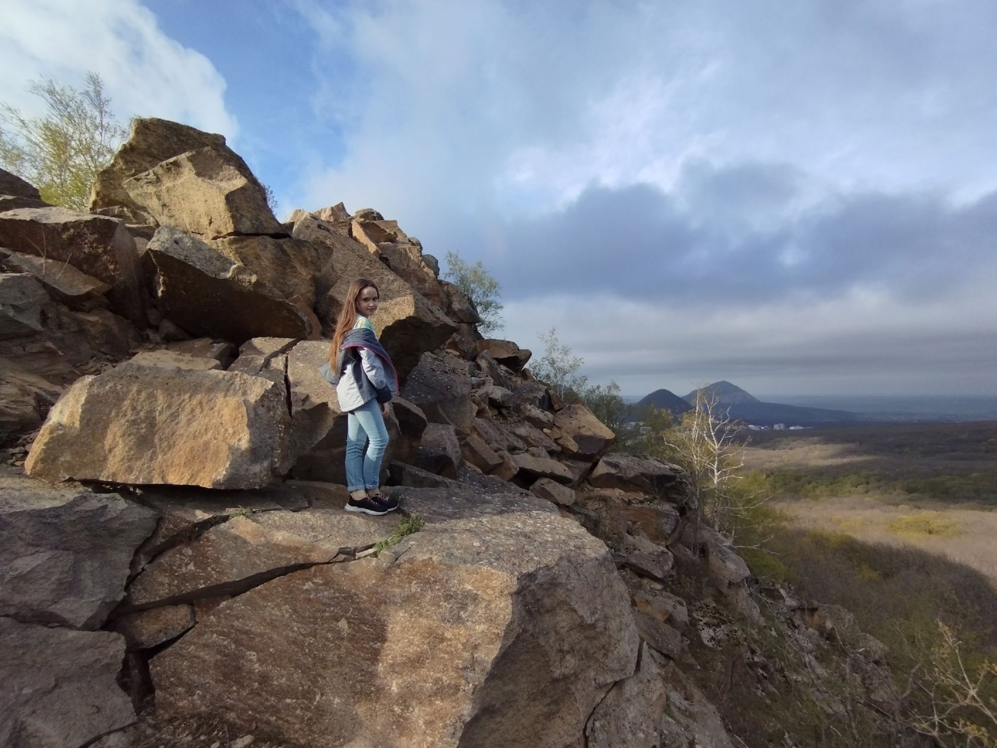 25 апреля 2023 1 час назад, Juliay сказал(а): Девочки, все привет! Сегодня Радоница, у нас в Ставропольском крае официальный выходной. Отдыхаем с Лизаветой. Я решила написать отчет, вышивального по традиции будет мало но начну с него. Итак 3/4 части в фонариках вышито, переставляю пяльцы и берусь за девочку. Ну что сказать, для меня процесс сложноватый, прямо заставляю себя браться, эта мешанина из малого числа полукрестиков очень напрягает, уже хочу быстрее закончить этот процесс. Было: стало: И немного о жизни. У Лизы в театральной студии был бенефис, она участвовала в сценке, играла этакую девочку-модницу, а "бабка" ей подражала. Не скажу, что у нас прямо хорошая театральная студия, но для местного масштаба нормально, деткам нравится и хорошо. Лиза заканчивает 4 класс, а значит скоро закончатся и проекты по окружающему миру))) Но когда у тебя в школу ходит уже не первый ребенок с проектами становится значительно проще)))) Сплагиатили свой же проект, который делали с Ксюшей в 4 классе Ну и в выходные была хорошая погодка и мы с Лизком пошли прогуляться на гору Остренькая. Интересно там полазить конечно! В основном лезешь по огромным камням и между ними, но есть одно место, что нужно пролезть под ними, странное и жутковатое ощущение, если честно. и вот в эту дырку надо лезть обратно Прямо до самой вершины не дошли, но даже от туда куда дошли насладились видами! По пути конечно радовались каждому цветочку и листочку. А такие нарциссики сфоткали еще в городе, когда шли - необычные. Напоследок покажу фото, которые я сделала по дороге на работу с одного места в разные стороны. Видимость была прекрасная и я не удержалась - остановилась, чтобы сфотографировать. На этом всё! Всем всего хорошего! Юля, какая чудесная прогулка! И пугающая: там, где надо лезть в дырку Была несколько раз у вас в Кавминводах, природа замечательная, люблю горы... Lorans, Leutnant Ripley, Tata44 и 4 других сказали спасибо Поделиться сообщением Ссылка на сообщение