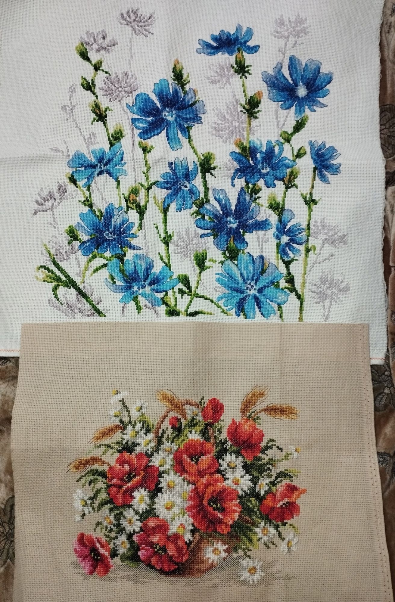18 мая 2023 Всем приветик! Ну что на улице еще весна, значит мой отчет будет в тему. Сегодня он будет исключительно цветочным!!!! На меня прямо напало вышивальное настроение, хочется вышивать каждую свободную минутку и хочется, чтобы этих "свободных" было больше, поэтому освобождаю всё что только могу, откладывая всё что хоть немного терпит и засиживаясь до поздна. И причем хочется вышивать оба своих цветочных процесса, поэтому я очень хорошо продвинула и "Зонтик" и сделала бэк на клематисах, теперь смогу пойти дальше. Итак клематисы: было: и с бэком: на втором фото более правдоподобные цвета. Теперь зонтик: было: стало: На первом фото под белым цветом видны следы от маркера, пришлось простирнуть. Очень нравится и в работе и то что получается! Крестики очень пухленькие из-за этого не очень аккуратные, ну да и ладно, я не этот самый)))) не перфекционист)))) По моим вышивкам всё. Но я сходила к маме и её цветы сфоткала))) Она всё вышивает быстро, даже сейчас, когда началась дача. Наташа @Bogdan только подарила наборчик с маками, а мама его уже вышила (спасибо, Наташенька!) правда бэк делать не стала, ну это у нее обычное дело. Ну и подушку от РТО, которую я на 8 марта ей дарила, она уже давно вышила. Ну и в продолжения цветочной темы немного природной красоты! Даже елочка можно сказать цветет))), а каштан похож на фейерверк! Всем цветочного настроения! OlkaY, Snow, Bogdan и 26 других сказали спасибо Поделиться сообщением Ссылка на сообщение