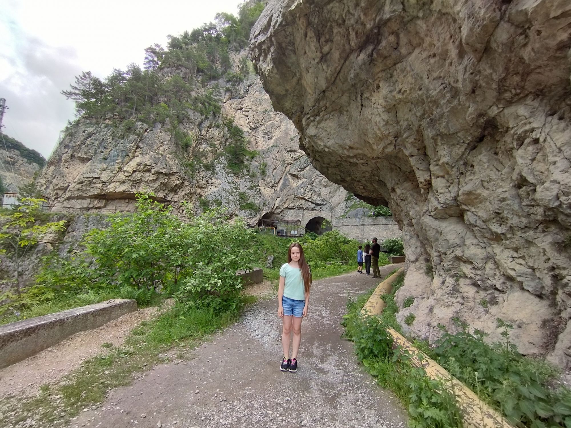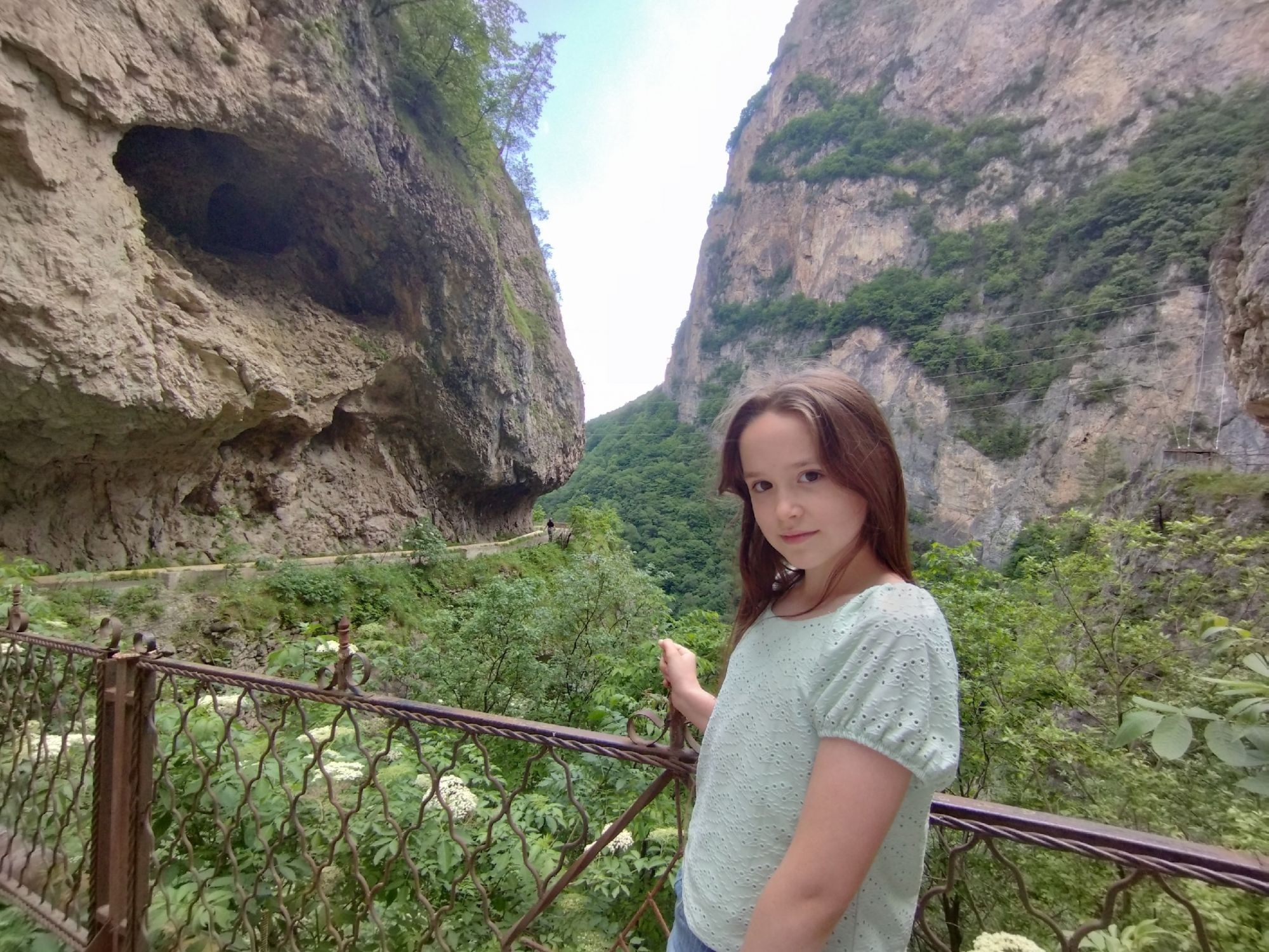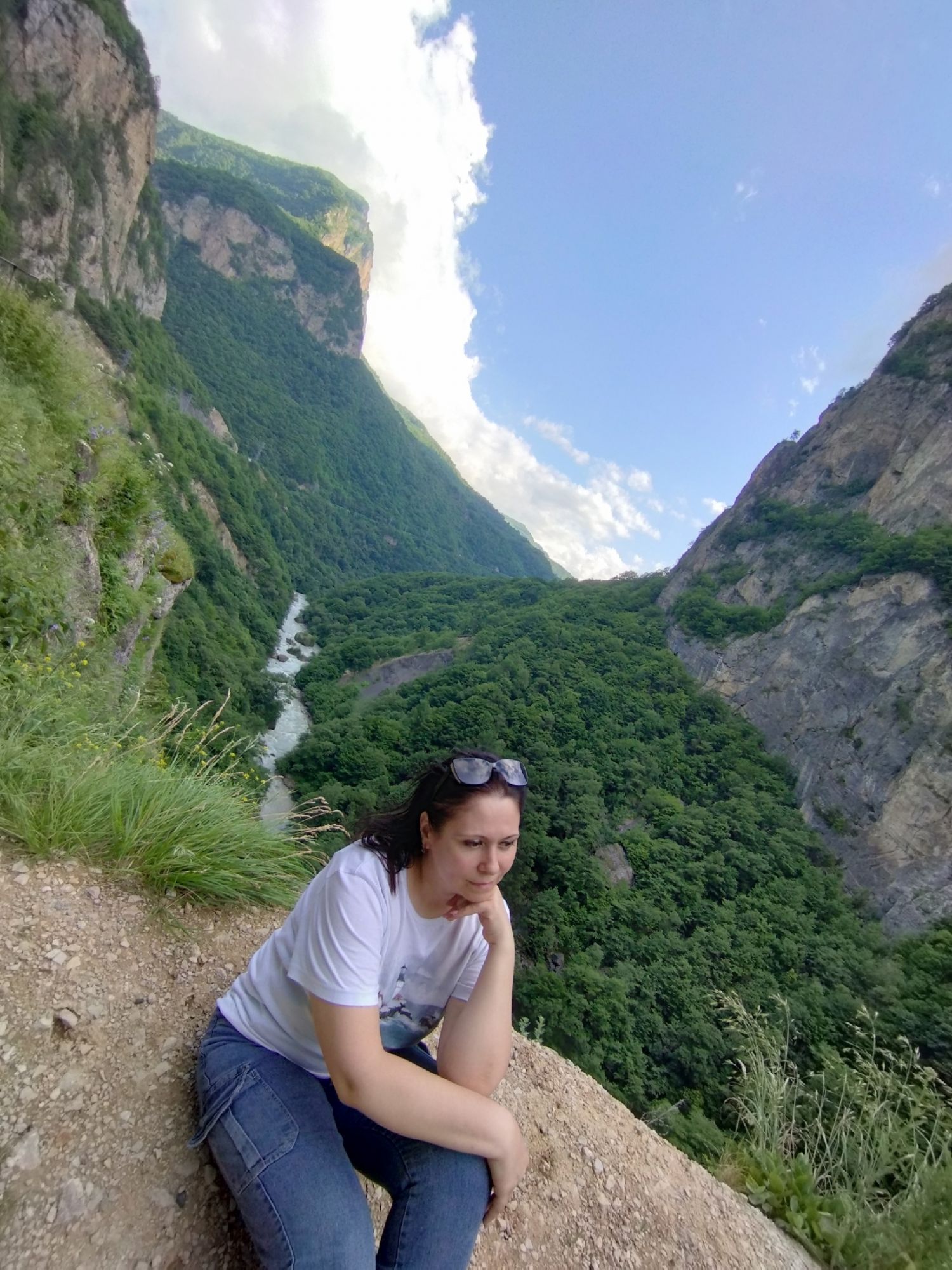21 июня 2023 Ну что ж, а я с отчетом! Всем приветик! По традиции немного обязательной вышивальной программы и много произвольной Продолжила вышивать бабушкин зонт. Ну что сказать, ощущения двоякие: во-первых, после того, как я простирнула канву, она из сильно жесткой превратилась просто в тряпочку, что мне совсем не нравится, чуть крестик затянешь, уже дырка, края ползут не смотря на обмётку, бр, все-таки больше люблю канву пожеще... Во-вторых, сами крестики шерстью больше напоминают просто какие-то пухлые квадратики, а если это бленд, то вообще выглядит как-то не аккуратно..., в-третьих, я немного укосячила, в паре мест, но переделывать не захотела, вроде бы не сильно заметно. Ну и полукрест по схеме должен быть по верхнему стежку, а я делаю по нижнему, по привычке, но вроде смотрится нормально. Ну и в чем двоякость, в том, что не смотря на эти минусы, мне все равно нравится то что получается! Было: стало: А да, еще зашила участок под синим цветком в листике, когда шила, показался какой-то порванный лист, потом, правда, при рассмотрении поняла, что это наверное два листика, один свернут, второй просто и немного зеленушки к синенькому бутончику, но сразу не поняла и сделала просто листик, пусть будет так. (не в гайку) Ну и вернулась к клематисам, правда продвижения совсем не большие, так набросала схематически следующие цветочки, теперь буду раскрашивать))) Было: стало: Ну и так для прикола фото под кодовым названием "сама себе Сага")))) (не в гайку) Ну всё, короткую программу откатала, перехожу к произвольной. Сынок "отслужил" уже второй год, можно сказать привык, сейчас, слава богу, нет ковидных ограничений и увольнения давали без проблем. По учебе чуть съехал, тяжко им самим себя организовывать. Но в любом случае второй год позади. А у Лизы позади первый год танцев! Как же я рада, что попали в этот коллектив, столько за этот год было выступлений и конкурсов, ни одно наше городское мероприятие не обходится без наших танцев, сколько разных и интересных номеров ставит наша руководительница для трех групп (младшая, средняя-наша и старшая), девчонки ее любят, а она их, и видно, что работает с душой. Не буду грузить фотками, просто коллаж, хотя в него далеко не весь репертуар вошел. На выходных получилось собраться всей семьей и съездить куда? конечно в горы))) Ксюша даже посмеялась: "конечно, куда же еще", правда добавила, что они все однотипные, а я ей сказала, что может и однотипные, но неизменно прекрасные. В этот раз поехали в КБР на голубое озеро. Были там очень давно, а дети не были вообще, только Ксюша и то в животе Вообще правильно - Голубые озера, их там несколько, но реально голубое только нижнее. Озеро конечно красивое и очень прозрачное, цвет очень сильно зависит от освещения, в солнечную погоду прям очень голубое. Максимально известная глубина примерно 370 метров, но может и еще глубже, т.к. пока глубже не спускались, вот такое фото нашла в интернете: Ну а дальше наши многофото: Покушали хычинчики на берегу прекрасного озера и поехали дальше по дороге в Черекскую теснину, тоже очень красивое место, давно уже сделали туннели в горах, но раньше была старая дорога на краю пропасти. Чем мне нравится это место, что ты находишься как бы посередине, что вниз, что вверх огромные скалы, чувствуешь себя песчинкой, а когда смотришь вверх или вниз кружится голова. Потом мы отправилис