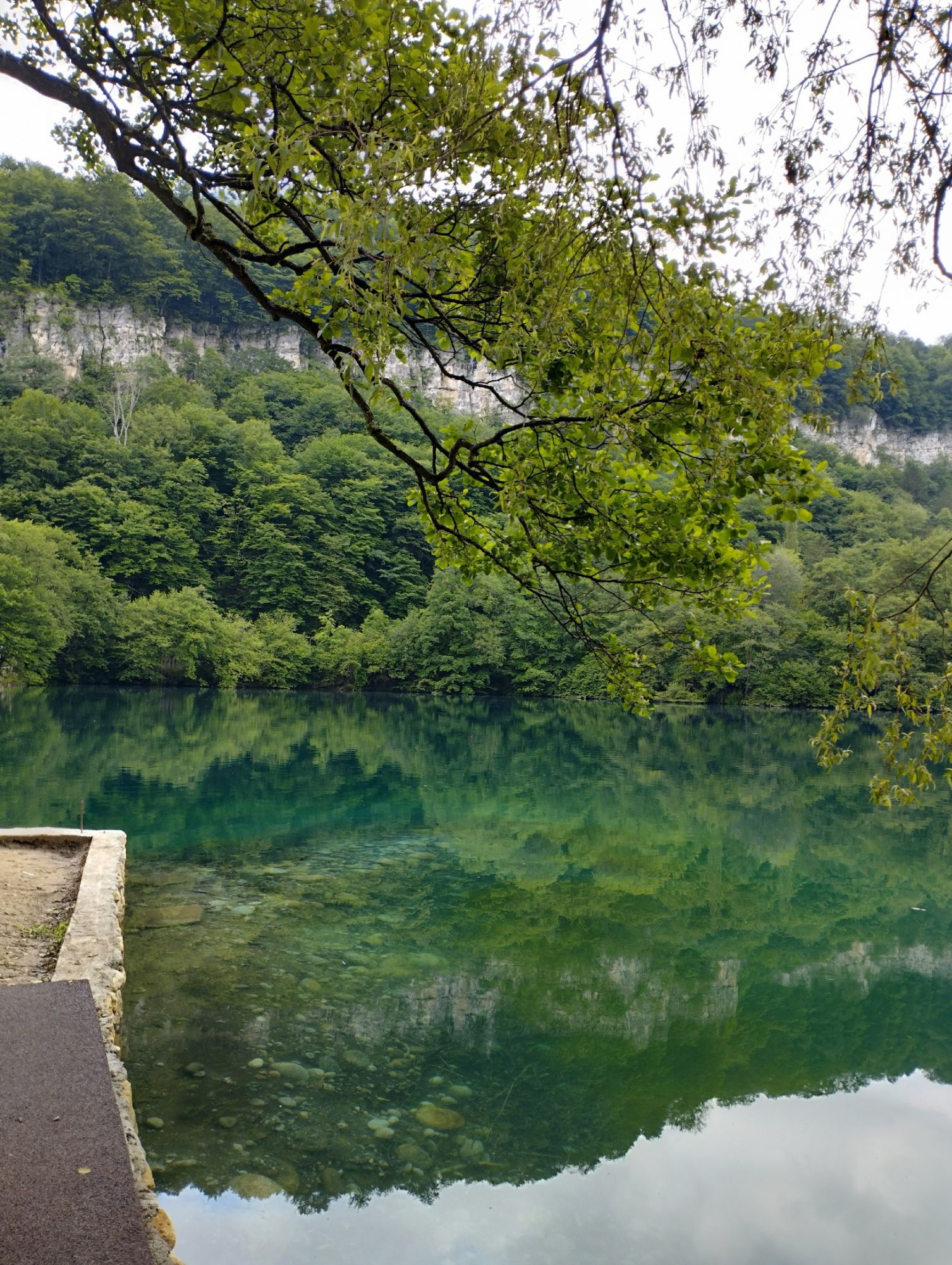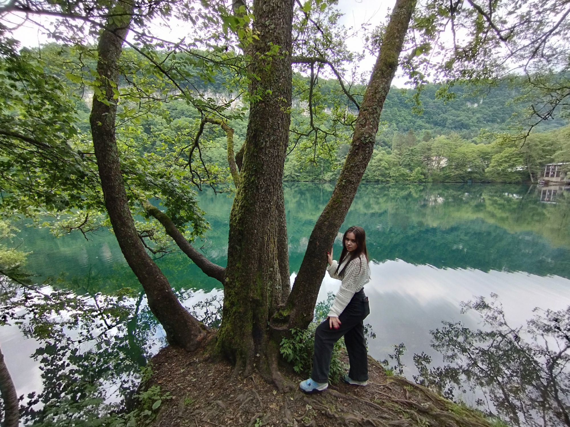 21 июня 2023 19 минут назад, Juliay сказал(а): Ну что ж, а я с отчетом! Всем приветик! По традиции немного обязательной вышивальной программы и много произвольной Продолжила вышивать бабушкин зонт. Ну что сказать, ощущения двоякие: во-первых, после того, как я простирнула канву, она из сильно жесткой превратилась просто в тряпочку, что мне совсем не нравится, чуть крестик затянешь, уже дырка, края ползут не смотря на обмётку, бр, все-таки больше люблю канву пожеще... Во-вторых, сами крестики шерстью больше напоминают просто какие-то пухлые квадратики, а если это бленд, то вообще выглядит как-то не аккуратно..., в-третьих, я немного укосячила, в паре мест, но переделывать не захотела, вроде бы не сильно заметно. Ну и полукрест по схеме должен быть по верхнему стежку, а я делаю по нижнему, по привычке, но вроде смотрится нормально. Ну и в чем двоякость, в том, что не смотря на эти минусы, мне все равно нравится то что получается! Было: стало: А да, еще зашила участок под синим цветком в листике, когда шила, показался какой-то порванный лист, потом, правда, при рассмотрении поняла, что это наверное два листика, один свернут, второй просто и немного зеленушки к синенькому бутончику, но сразу не поняла и сделала просто листик, пусть будет так. (не в гайку) Ну и вернулась к клематисам, правда продвижения совсем не большие, так набросала схематически следующие цветочки, теперь буду раскрашивать))) Было: стало: Ну и так для прикола фото под кодовым названием "сама себе Сага")))) (не в гайку) Ну всё, короткую программу откатала, перехожу к произвольной. Сынок "отслужил" уже второй год, можно сказать привык, сейчас, слава богу, нет ковидных ограничений и увольнения давали без проблем. По учебе чуть съехал, тяжко им самим себя организовывать. Но в любом случае второй год позади. А у Лизы позади первый год танцев! Как же я рада, что попали в этот коллектив, столько за этот год было выступлений и конкурсов, ни одно наше городское мероприятие не обходится без наших танцев, сколько разных и интересных номеров ставит наша руководительница для трех групп (младшая, средняя-наша и старшая), девчонки ее любят, а она их, и видно, что работает с душой. Не буду грузить фотками, просто коллаж, хотя в него далеко не весь репертуар вошел. На выходных получилось собраться всей семьей и съездить куда? конечно в горы))) Ксюша даже посмеялась: "конечно, куда же еще", правда добавила, что они все однотипные, а я ей сказала, что может и однотипные, но неизменно прекрасные. В этот раз поехали в КБР на голубое озеро. Были там очень давно, а дети не были вообще, только Ксюша и то в животе Вообще правильно - Голубые озера, их там несколько, но реально голубое только нижнее. Озеро конечно красивое и очень прозрачное, цвет очень сильно зависит от освещения, в солнечную погоду прям очень голубое. Максимально известная глубина примерно 370 метров, но может и еще глубже, т.к. пока глубже не спускались, вот такое фото нашла в интернете: Ну а дальше наши многофото: Покушали хычинчики на берегу прекрасного озера и поехали дальше по дороге в Черекскую теснину, тоже очень красивое место, давно уже сделали туннели в горах, но раньше была старая дорога на краю пропасти. Чем мне нравится это место, что ты находишься как бы посередине, что вниз, что вверх огромные скалы, чувствуешь себя песчинкой, а когда смотришь вверх или вниз кружится
