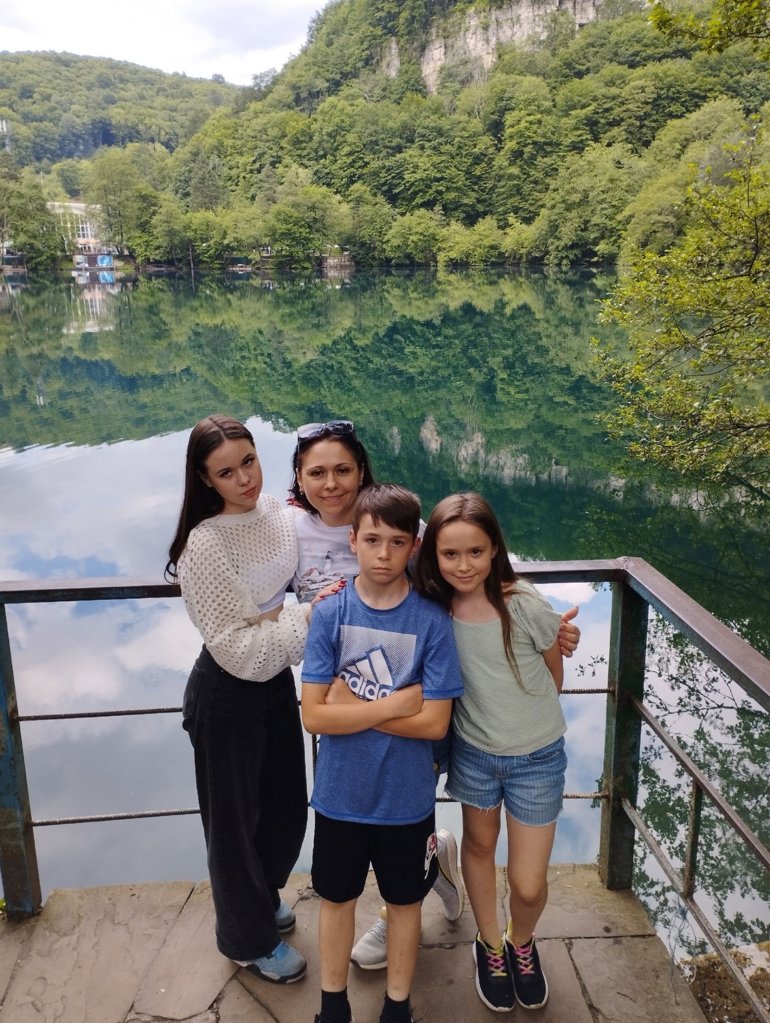 24 июня 2023 21.06.2023 в 11:03, Juliay сказал(а): Ну что ж, а я с отчетом! Всем приветик! По традиции немного обязательной вышивальной программы и много произвольной Продолжила вышивать бабушкин зонт. Ну что сказать, ощущения двоякие: во-первых, после того, как я простирнула канву, она из сильно жесткой превратилась просто в тряпочку, что мне совсем не нравится, чуть крестик затянешь, уже дырка, края ползут не смотря на обмётку, бр, все-таки больше люблю канву пожеще... Во-вторых, сами крестики шерстью больше напоминают просто какие-то пухлые квадратики, а если это бленд, то вообще выглядит как-то не аккуратно..., в-третьих, я немного укосячила, в паре мест, но переделывать не захотела, вроде бы не сильно заметно. Ну и полукрест по схеме должен быть по верхнему стежку, а я делаю по нижнему, по привычке, но вроде смотрится нормально. Ну и в чем двоякость, в том, что не смотря на эти минусы, мне все равно нравится то что получается! Было: стало: А да, еще зашила участок под синим цветком в листике, когда шила, показался какой-то порванный лист, потом, правда, при рассмотрении поняла, что это наверное два листика, один свернут, второй просто и немного зеленушки к синенькому бутончику, но сразу не поняла и сделала просто листик, пусть будет так. (не в гайку) Ну и вернулась к клематисам, правда продвижения совсем не большие, так набросала схематически следующие цветочки, теперь буду раскрашивать))) Было: стало: Ну и так для прикола фото под кодовым названием "сама себе Сага")))) (не в гайку) Ну всё, короткую программу откатала, перехожу к произвольной. Сынок "отслужил" уже второй год, можно сказать привык, сейчас, слава богу, нет ковидных ограничений и увольнения давали без проблем. По учебе чуть съехал, тяжко им самим себя организовывать. Но в любом случае второй год позади. А у Лизы позади первый год танцев! Как же я рада, что попали в этот коллектив, столько за этот год было выступлений и конкурсов, ни одно наше городское мероприятие не обходится без наших танцев, сколько разных и интересных номеров ставит наша руководительница для трех групп (младшая, средняя-наша и старшая), девчонки ее любят, а она их, и видно, что работает с душой. Не буду грузить фотками, просто коллаж, хотя в него далеко не весь репертуар вошел. На выходных получилось собраться всей семьей и съездить куда? конечно в горы))) Ксюша даже посмеялась: "конечно, куда же еще", правда добавила, что они все однотипные, а я ей сказала, что может и однотипные, но неизменно прекрасные. В этот раз поехали в КБР на голубое озеро. Были там очень давно, а дети не были вообще, только Ксюша и то в животе Вообще правильно - Голубые озера, их там несколько, но реально голубое только нижнее. Озеро конечно красивое и очень прозрачное, цвет очень сильно зависит от освещения, в солнечную погоду прям очень голубое. Максимально известная глубина примерно 370 метров, но может и еще глубже, т.к. пока глубже не спускались, вот такое фото нашла в интернете: Ну а дальше наши многофото: Юлечка, наконец-то я смогла все внимательно рассмотреть и написать ответ. Не хотелось это делать на бегу. С удовольствием полюбовалась твоими вышивальными продвижениями. Твоя летняя "клумба" краше день ото дня. Удачи тебе в работе с шерстью, не каждому она "заходит". Ваши поездки в горы очень люблю! У тебя много удачных кадров, на которых хочется задержать глаз. А уж семейны
