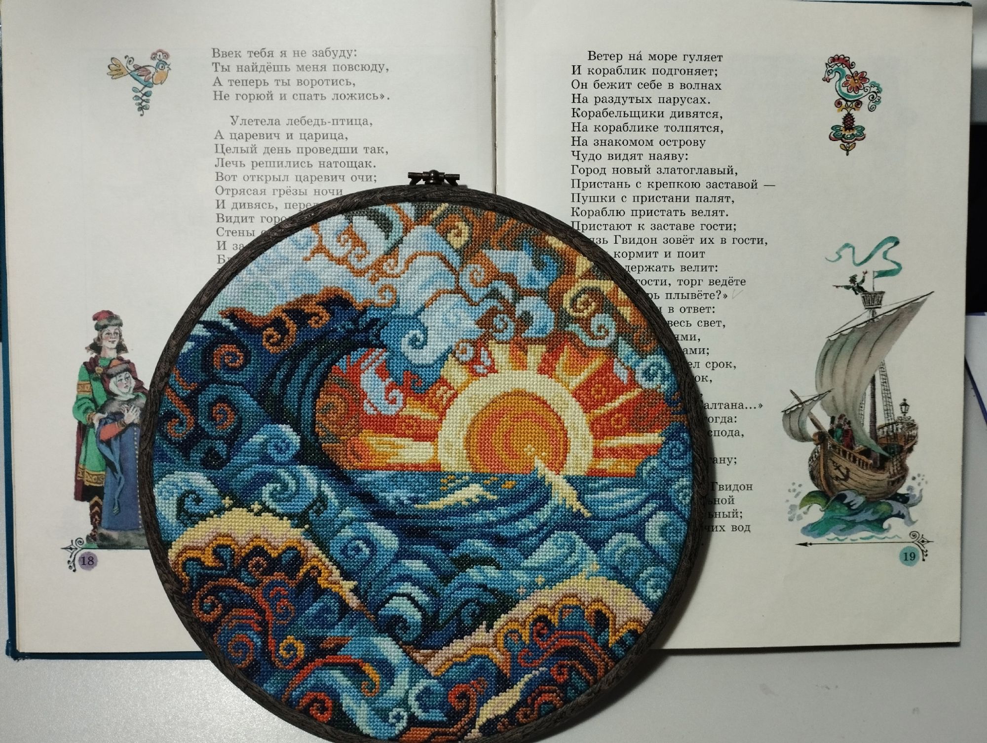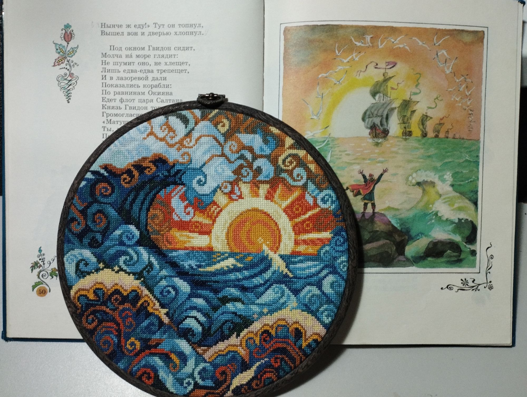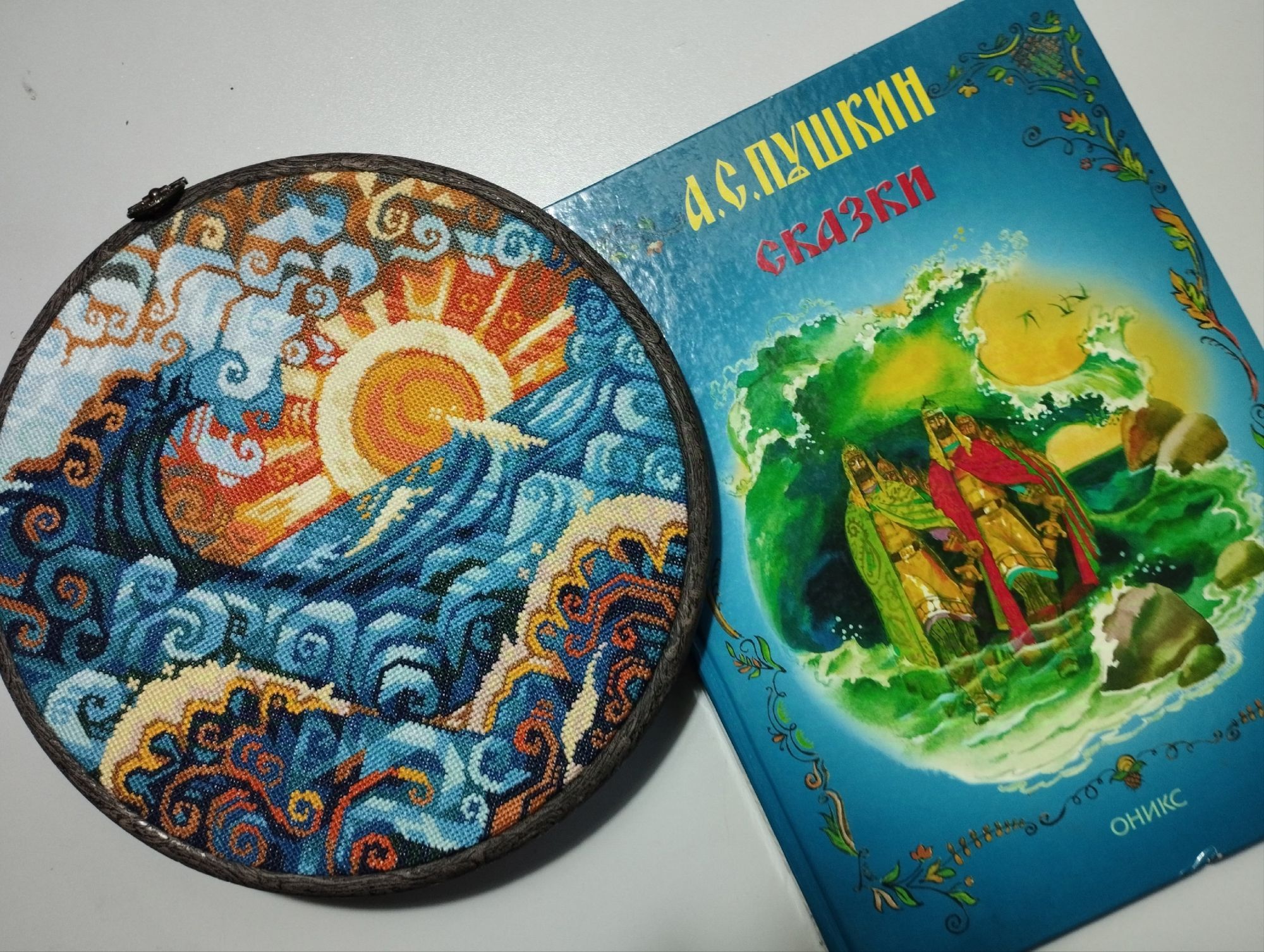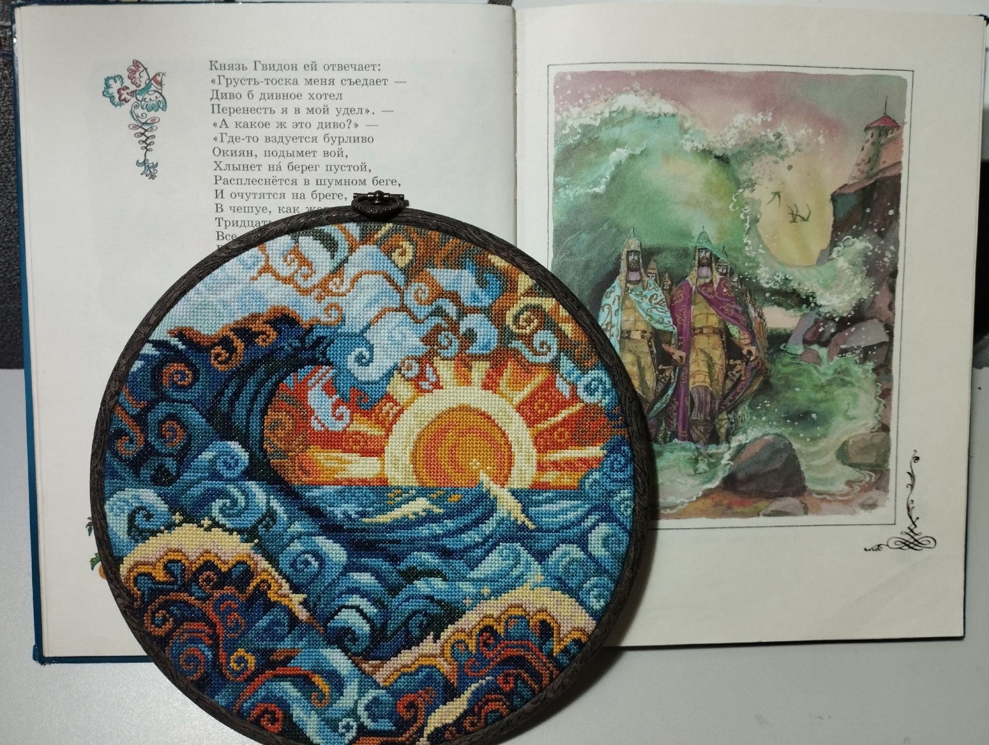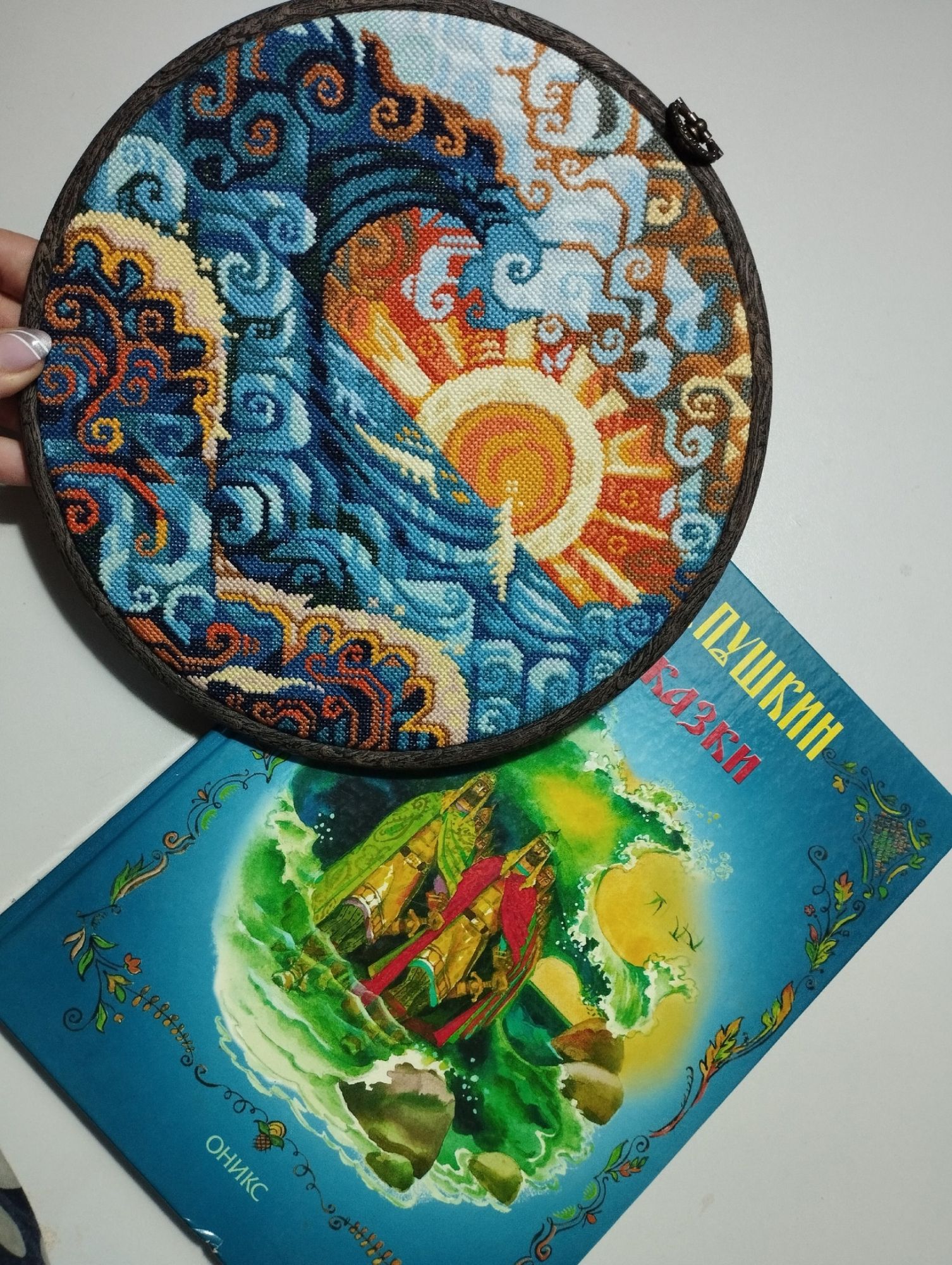 1 октября 2024 Девочки!!! У меня два финиша!!! Конечно же Океан, он же волна от МВ! Всё уже сказала про свои впечатления от этого процесса, повторять не буду (за рекламу не доплачивают) Было: стало: Финальные фото получились немного синюшные, это потому, что я вскочила в 6 утра, мне не терпелось погладить, увидеть результат и сфоткать. И сразу вставить в рамку-пяльца, чтобы посмотреть как это получится. По размеру получилось просто идеально! Результат отличный - бюджетно, быстро, ярко, сказочно, волшебно!!! Довоооооольна, как слон! И попробовала сделать фотосессию с любимыми всеми сказками Пушкина! Ну и многострадальные шары. Про этот процесс тоже уже ни однократно писала свои ощущения... Ну что же после завершения и стирки-глажки впечатления немного улучшились, но сказать, что прям нравится не могу. Но довольна, что завершила и очень хочу довести идею до конца, во всяком случае настроена решительно! Было: стало: Вот мокренькие мне прямо понравились, яаааркие Но что очень порадовало, что с размером я очень четко угадала! Примерила салфеточки, вроде бы должно получиться интересно.... Вот такие у меня вышивальные новости. Из невышивального могу показать вам своих питомцев со своей любимой хозяйкой (на третьем фото Лиза с Дусей песню поёт жаль видео нет) Ну и покажу фото которые прислал муж из командировки в Москву, ездил к Главному Храму Вооруженных сил России. Добирался туда три часа в одну сторону, на метро, на электричке и автобусе, но впечатлился! На этом всё! Обнимаю! vasilisa-1977, Охотница, Snow и 28 других сказали спасибо Поделиться сообщением Ссылка на сообщение