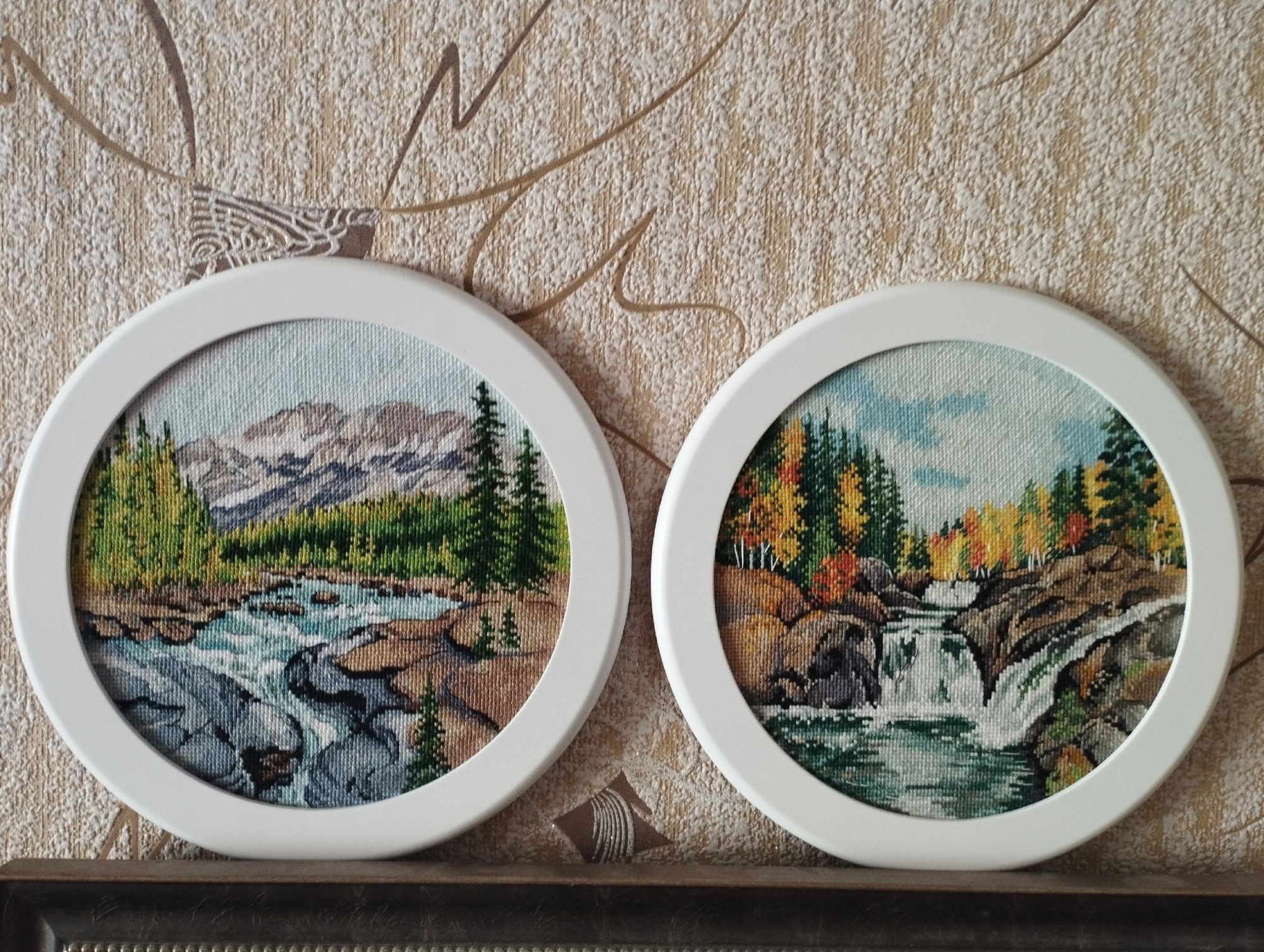 9 октября 2024 Девочки! Всем приветик! Я опять с отчетом. Зачастила, понимаю, но у меня в этот период года всегда так, обострение Не могу не поделиться оформлением своих Овновских кружочков. По совету Мариночки @mag я приобрела круглые рамочки на ВБ, стала примерять свои работы и поняла, что они немного маловаты, для рамок, будут видны пустые края, причем буквально на 2-4 крестика... и я решила, что нужно дошить. Первый раз такое делала, конечно благодаря такому рисунку сделать оказалось это довольно просто, один круг вообще за один вечер дошила, правда до поздней ночи засиделась, второй круг дня за три. Да немного муторно это дело, но не сложно, гораздо сложнее именно психологически вернуться к уже законченным, постиранным и поглаженным работам. Но всё у меня по-моему хорошо получилось. Испросив, опять же совета у Марины по поводу самого процесса сборки, сегодня за час в обеденный перерыв я их натянула и вставила. Картонка на которую натягивала должна быть светлой как я понимаю, но мне очень не терпелось, поэтому красить было некогда, воспользовалось еще декупажным опытом: взяла пищевую пленку, белую салфетку и утюг - дело 2 минут и подложка светлая - нормально! Ну и дальше - покругу наметочный шов, затянула, загладила и вставила в рамку! Вуаля, готово! Очень легко и быстро оказалось! Ну и мой творческий беспорядок на пианино))) В общем, подводя итог, можно сказать, что и опыт дошивания работы и опыт оформления в круглую раму можно считать успешными! Я молодец! Опять! Ну и немного про жизнь. Сегодня моему сыночку 14! Правда мы отметили еще в выходные, потому что среди недели никто бы его не отпустил. Бабушка, как и для Лизы испекла ему тортик! Скрытый текст Когда я 5.10 забирала его из кадетки, он меня повеселил выйдя ко мне вот так, а когда еще снял фуражку и я увидела, что он лысый, вообще чуть со смеху не умерла Дедушка (отец мужа) подарил Артему сборник стихов и песен о войне и подписал, судя по всему, строками собственного сочинения! И ведь какой смысл! Это так трогательно в наше время! А вчера, мама позвонила и говорит: я по ТВ услышала, что сегодня "День вареников!" Принято! Нас уговаривать не надо! Отметили! Ну и на последок покажу фото Ксюши из корпоративного похода к Софийским озерам. Осень в горах великолепная! На сегодня всё. Всех целую! Tata44, OlkaY, Дикая белочка и 23 других сказали спасибо Поделиться сообщением Ссылка на сообщение