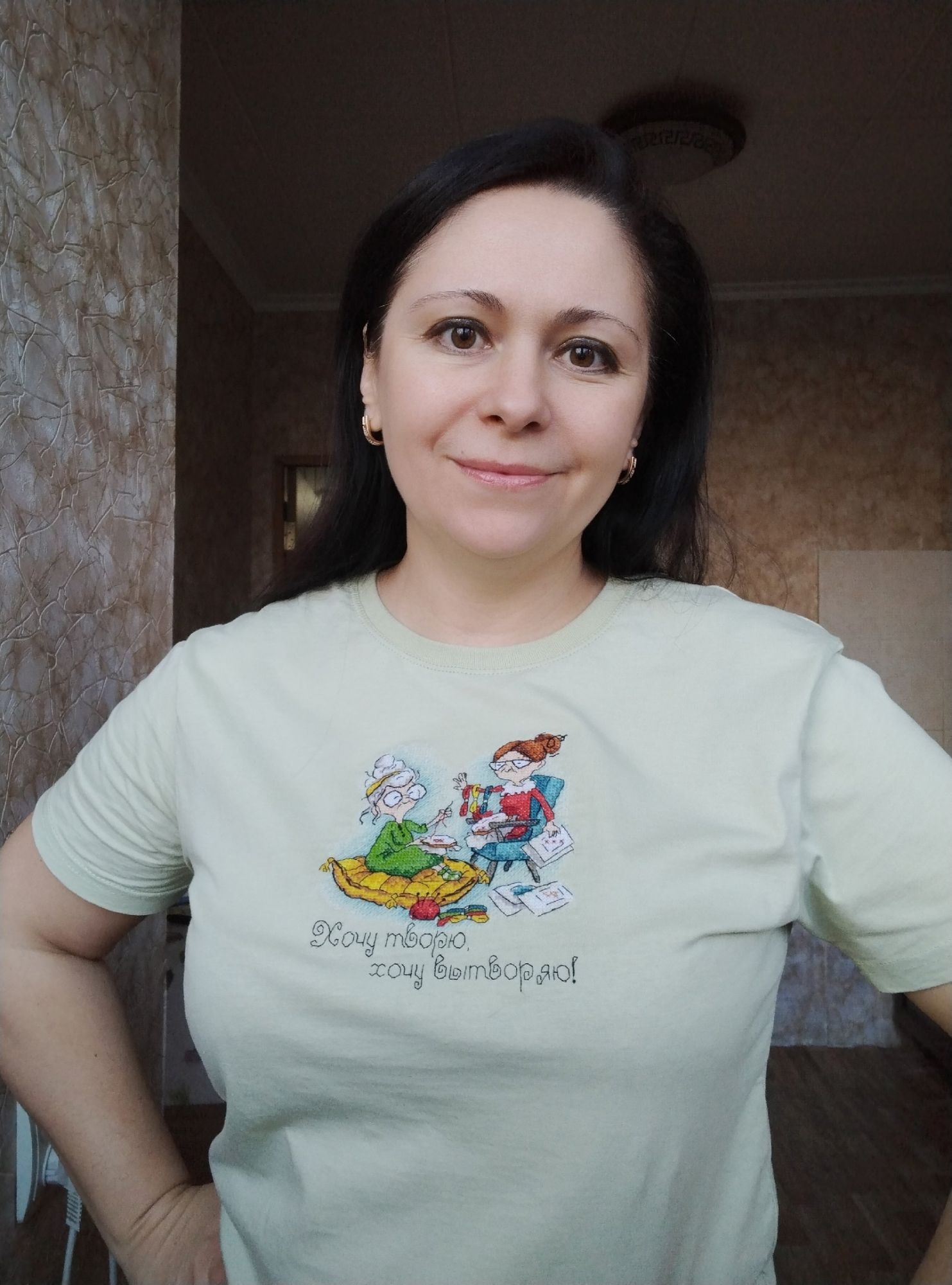 9 декабря 2024 05.12.2024 в 13:48, Juliay сказал(а): Всем приветик! Пришла с отчетом. Сейчас у всех начнутся предновогодние, с подведением итогов, я этого делать не люблю, потому что как правило "подводить" нечего поэтому просто отчет. Продолжила вышивать свой кружок. Процесс-релакс для меня! Шила и настраивалась на проЭкт))) Было: стало: Настроилась таки! Всем вам я уже "уши прожужжала" насчет того, что хочу вышить футболку, всё для этого было куплено уже примерно пол года, точнее сама вышивка, которая натолкнула меня на идею, была мне подарена Наташей @Lorans, растворимая канва была куплена года два назад, а вот придумка созрела как раз где-то пол года как, но всё никак не могла себя заставить сделать первый шаг. И вот, "помолясь усердно богу", испросив советов у Наташи и Оли @Olechka19, я таки решилась! Но решилась не просто на одну футболку, а задумала целый проектище под кодовым названием "Да, не шешнадцать!" Суть проекта - я хочу вышить футболки всем своим университетским подругам и желательно встретиться и вручить, ну на крайний случай отправлю всем почтой. По совету Оли решила начать именно со своей, чтобы, так сказать попробовать, оценить масштаб бедствия работы и понять по силам ли мне задумка. Все футболки планирую сделать в одном стиле, но с разными сюжетами, все сюжеты и надписи подобраны по смыслу для каждой из подруг. Вот как я это планирую. И вот что получилось с моей футболкой. Работа заняла чуть меньше 2-х недель. Самым сложным для меня был процесс подготовки, не сразу поняла, как пришить канву, опять же спасибище наставницам, до последнего боялась, что рисунок будет располагаться криво, но вроде бы всё получилось, надеюсь в следующий раз процесс будет легче. Еще сложно вышивать, когда много ткани вокруг, очень пригодился чехол, который мне Наташенька Лоранс подарила (спасибо дорогая) Ну и медленно, конечно, на футболке, всё время старалась, чтобы крестики ложились ровно, иголочка попадала в серединку дырочки и в "елочку" в структуре ткани. За надпись тоже переживала, и шрифт и расположение вызывали сомнения. Но вроде бы всё удалось. Ну и на модели (не для гайки) Вот такие у меня новости. Из невышивального у нас на той недели выпал снег - красиво и много, но как обычно не надолго. Ну и милота от нашей новой жительницы. Всех обнимаю! Юлечка, ну ты не перестаёшь удивлять, идея замечательная, а первый "блин" просто идеальный, нравится - это не то слово, я в восторге! БРАВО, уверена у подружек, во время получения подарков, на мгновение, а может быть и чуть больше, пропадет дар речи, это будут незабываемые подарки и ваши совместные радостные эмоции! Tatiana2406, АлёNка, Juliay и 5 других сказали спасибо Поделиться сообщением Ссылка на сообщение