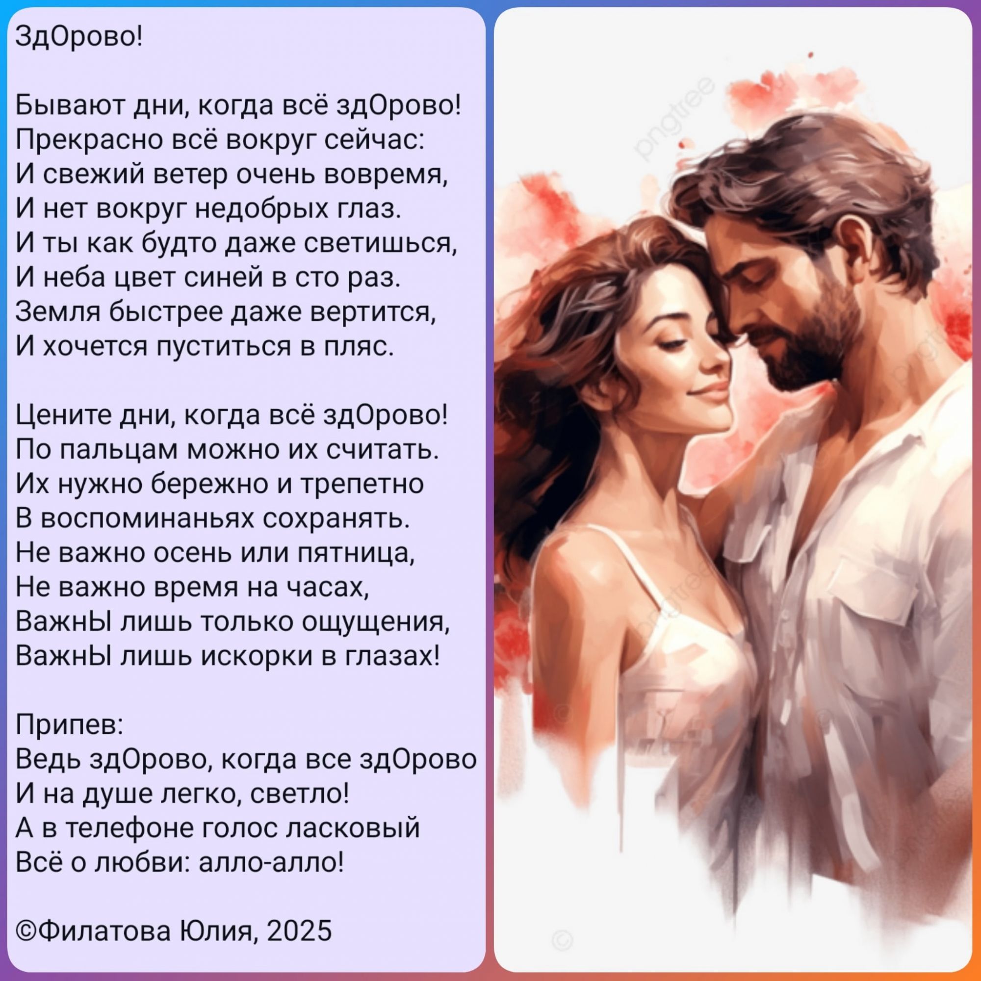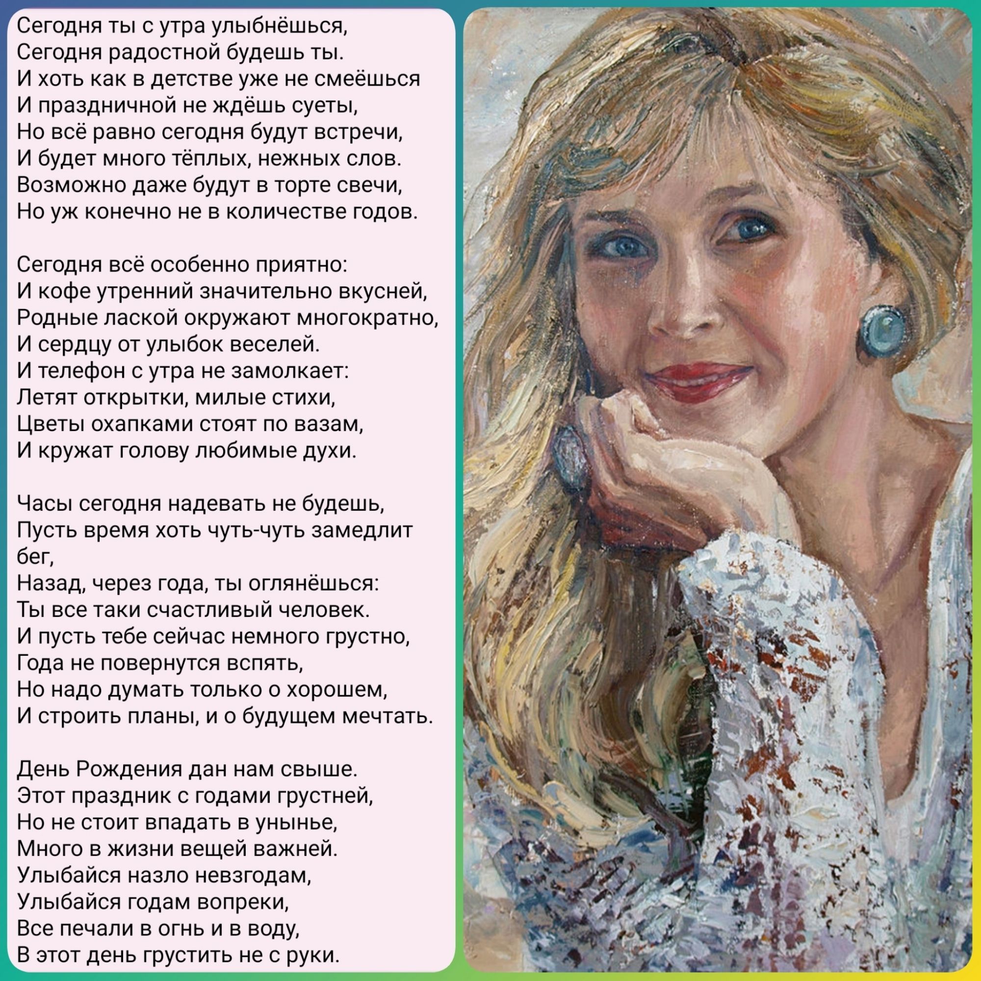 Среда в 12:09 Юля, и я поздравляю тебя с днём рождения! Правда, немного запоздало) Будь счастлива, здорова, любима и удачлива Публикуй и пиши и дальше твои замечательнейшие душевные стихи, рассказы про ваши места и близких! Обожаю всё это. И все ведь обожают! Ты такая, такая... В общем, молодец! Juliay, Полли, Lorans и 2 других сказали спасибо Поделиться сообщением Ссылка на сообщение