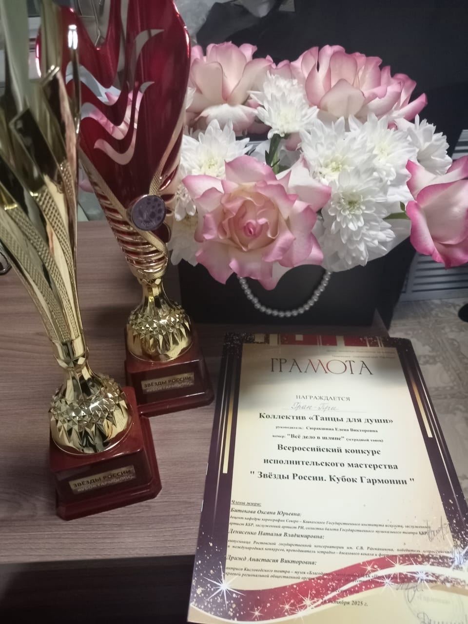 28 октября 27.10.2025 в 15:20, Juliay сказал(а): Всем приветик! Напишу отчетик, правда без вышивальных процессов, потому что я всё таки бездельничаю и пока ничего не начала. Но зато я оформила вышивки, правда не в багетке, до нее так и добралась, а в готовые рамочки, девочки Наташа @Lorans и Маша @Marusya1978 подарили мне на др денюжку (спасибо им еще раз огромное!) и я заказала рамки для овновских пейзажей и заката. Да понимаю, что в багетке мне бы оформили лучше, но во-первых и значительно дороже, а во-вторых, круглое оформление в обычной багетке не делают, а в "продвинутой" стоить это будет прямо таки намного дороже, поэтому пока оставлю так как есть, всё лучше, чем в рулончике в шкафу. Ну и соответственно эти работы отправила на конкурс, понимаю реально их шансы и особенно ни на что не надеюсь, просто люблю участвовать. Для конкурса попыталась сделать фото поинтереснее. Итак, Озеро Морейн и Красная поляна. И Круговорот.Осень. или Закат. Про вышивку всё. Хочу поделиться впечатлениями от моего вчерашнего дня! Мы вчера "звездили" - ездили на конкурс с нашим коллективом "Танцы для души" - как результат шикарно проведенный дождливый день, заряд положительной энергии, много приятных моментов и веселья. Танцевали два танца "Почти забытая мелодия" и "Все дело в шляпе", с первым заняли 1 место, со вторым Гран-при))) конечно, всё условно, потому что в нашей категории 30+ были только восточные танцы, но и им дали такие же награды. Но мы туда ехали, конечно не за наградами, а за позитивом и его было в избытке. Покажу вам фото! Видео почему-то не получается добавить... Ну и конечно нужно было отметить это дело)))) Ну и еще летом я придумывала стих и песню для нашего коллектива, тоже поделюсь. Танцы для души.mp3 На этой приятной ноте прощаюсь. До новых крестиков! Юля,оформления замечательные. Мне,как и Наташе,понравилось фото на фоне воды с листиками. Кружок хорош на всех фото. Поздравляю с победами,как приятно получить заслуженную награду ....так держать! Juliay, Lorans, махно и 1 другой сказали спасибо Поделиться сообщением Ссылка на сообщение