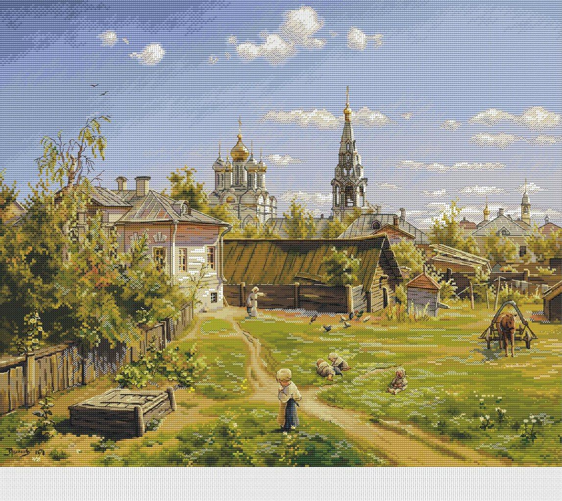 20 мая 2016 Московский дворик. По картине В.Д. Поленова. 280 х 233 крестика. 100 цветов DMC, вместе со смешанными. В схеме используется крест в 1 и 2 нити, дробные крестики, полукрест в 1 и 2 нити, бэк в 1 и 2 нити, французские узелки. alex_sterh, kreolka, Мария_К и 22 других сказали спасибо Поделиться сообщением Ссылка на сообщение