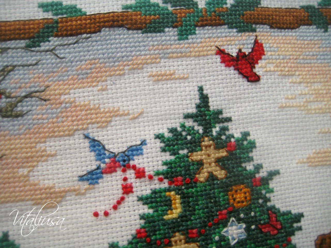 14 января 2016 Всем привет! С прошедшими праздниками! Если честно, то в эти праздничные "типавыходные" времени было гораздо меньше, чем в обычные двухдневные выходные. Ожидания и реальность оказались далекими друг от друга. Думаешь, что будет времени вагон, а на деле не отходишь от плиты и подчищаешь хвосты в домашних делах, которые всегда накапливаются у работающих женщин. И ведь что самое обидное, после окончания праздников снова надо на работу... Как-то беспросветно и бесперспективно. Но не буду о грустном. Назло всему я таки вышивала. Ох, как же долго я ничего не показывала у себя в теме. 1. Календарь. Вышилась елочка и еще один ангел 2. Закончила котиков (еще в декабре). Очень легкий и непринужденный процесс, темная канва не помеха. Димо-котики всегда приятны в отшиве, доски полукрестом очень быстро шьются, ну и немного выкладной нити подчеркнуло натуральность и объем. Последний рыжий котик умиляет, мне кажется, что это самый младший. 3. Начала и закончила новый процесс. Это Dimensions 70-08865 Nighttime Santa по набору. Мини-голды у дим как конфетки - вышиваются всегда интересно и нескучно, и красота в итоге. Сложности - в этом наборе темно-синяя канва, но это полбеды, несколько светлых цветов бороде у санты и красный бленд в костюме вышиваются крестом в три нити. Вот тут приходилось попотеть, чтобы уложить такой объем в маленькие клеточки 18 аиды. Но дизайнеры димыча это не просто так сделали, ведь на темной канве даже мелкой светлые цвета обычно "светят", вот чтобы таких просветов не было, и использовался крест в три нити. оригинал картинки, художница Donna Race В этот сюжет я внесла одно небольшое изменение. Улыбка обезьянки в мешке Санты. Она меня пугала - и улыбка, и обезьянка)) У С.Кинга есть рассказ "Обезьяна", вот его я часто вспоминала, когда смотрела на мартышку с обложки. Короче рот ей не стала вышивать крестиком, а сделала просто бэком в 2 нити, ну и нос обозначила слегка. В таком виде обезьянка мне нравится больше. На сейчас пока всё, а то и так много фото загрузила. Желаю всем вдохновения и неиссякаемой творческой энергии! emeraldrose, Zheneva, Лена1973 и 29 других сказали спасибо Поделиться сообщением Ссылка на сообщение