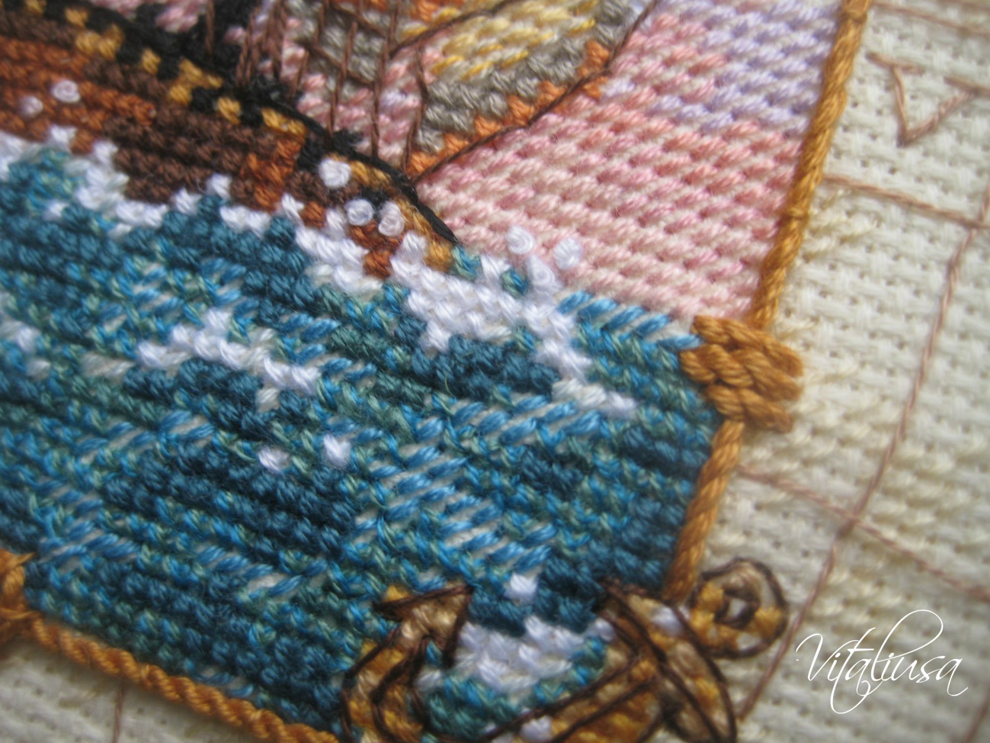 9 марта 2016 Всем привет! Наконец я добралась до своей темы, чтобы стряхнуть пыль) Вышиваю много, но не всегда успеваю красиво фотографировать и выкладывать. Сейчас у меня такой период, когда пишу очень мало и на форум да и в соцсети захожу лишь на поглядеть. Календарь. Я его закончила в последний день зимы. В конце работы пришлось попотеть с кордингом, его было очень много в рамке, да и выкладная нить из металлика в четыре нити тоже удовольствие сомнительное. А еще я неправильно пришила бисерины в числах, куда вешается шармик, так что пришлось их отпарывать и заново пришивать. Но всё уже позади. Поэтому сейчас будет многафотак)))) Нумерацию дат я переделала под нашу православную, а вот надпись не стала переводить. Здесь она очень красиво звучит в стихах, да и аглицкий шрифт мне в данном дизайне милее. Язык знаем, так что это не проблема. Оформила свой морской дуэт. Это рекордное по срокам оформление у меня - в субботу отдала, а в воскресенье утром уже забрала. Оформление было уже в голове, поэтому долго не подбирала. Подарила на 60-летие другу семьи - моряку со стажем. Он в ноябре заказал у меня корабль вышитый, но в моем хомячнике оказались по теме лишь эти два набора. Скажу, что реакция на подарок меня просто поразила - на глазах у мужчины я увидела слезы, было безумно приятно, что смогла порадовать и растрогать своими работами. Ну и новый процесс. Весна уже наступила, у моего подъезда взошли тюльпаны, скоро-скоро цветение. Поэтому достала купленную давно схему и материала и начала эти цветы от Натальи Черепановой. Вот исходник - картина художницы Марджолен Бастин (Marjolein Bastin). У ланарте есть тоже по ней разработка, но дизайн Натальи мне ближе. а это скрин Ну и самое начало Вышиваю на белфасте 32 цвет СахАра с разводами. Цветов очень много 68 штук, вышиваю дмс, есть и бленды, ну и куча разноцветного бэка. Всем отличного творческого настроения! МАМАМИШИ, Wildkatze, Taisiya и 27 других сказали спасибо Поделиться сообщением Ссылка на сообщение