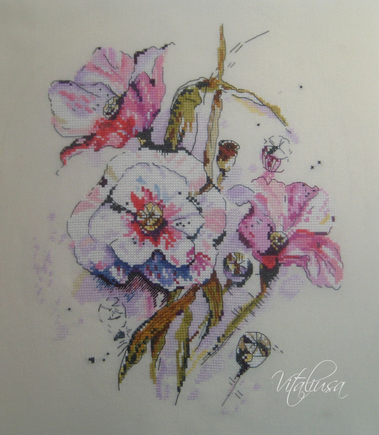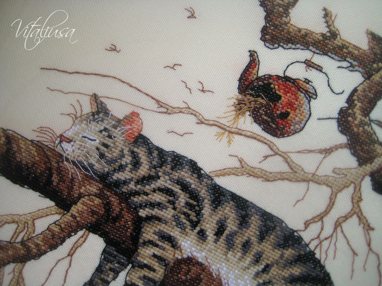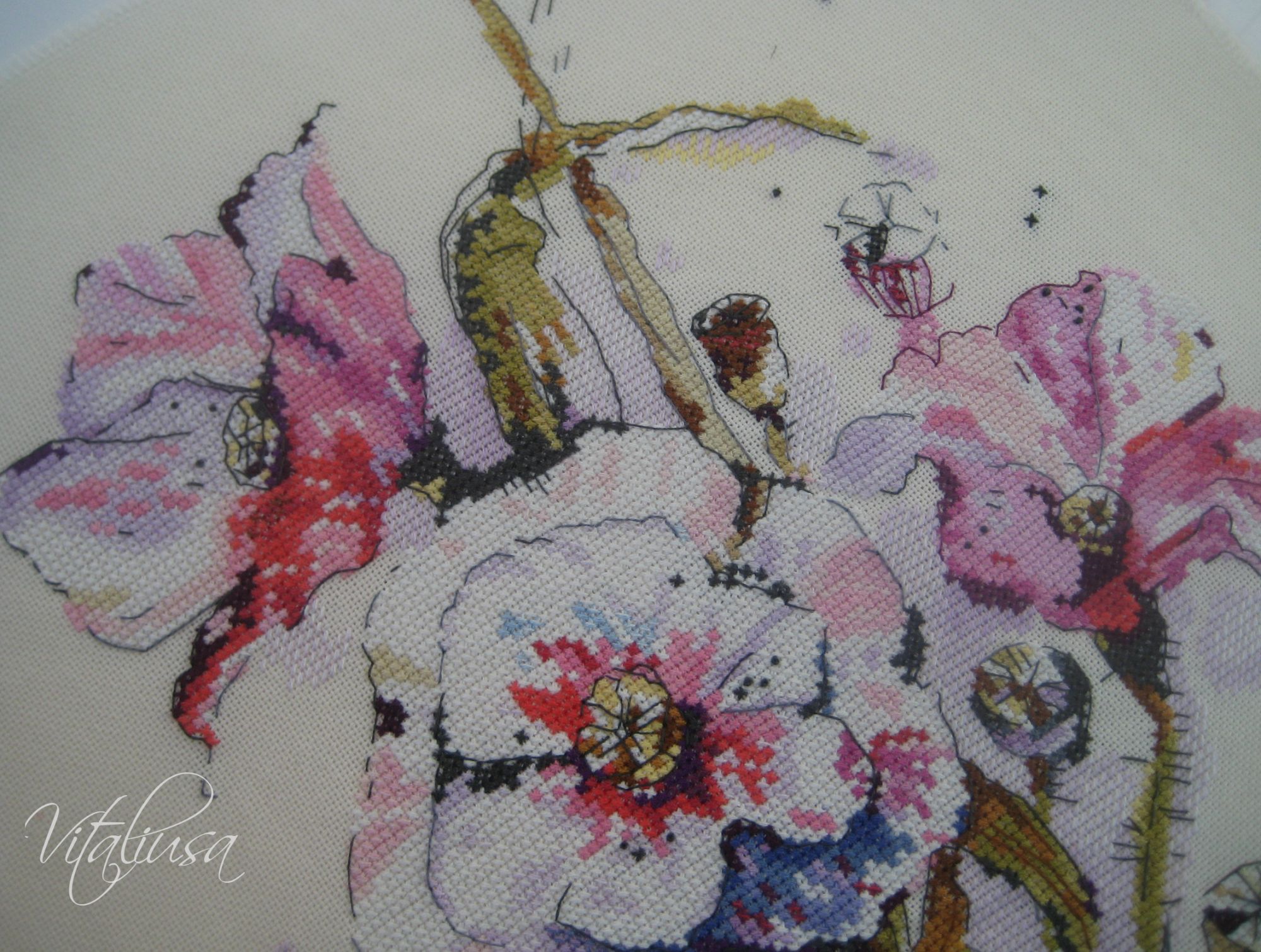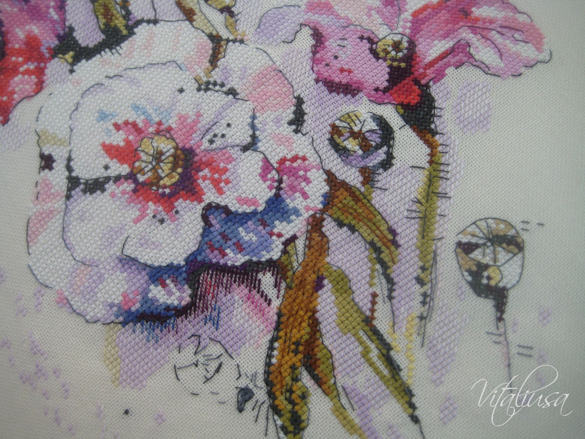 20 июня 2016 Всем привет! Почти месяц меня здесь не было, надо бы стряхнуть пыль со своей темы) Тем более, что мне есть чего показать. Вышиваю я уже восемь лет, заядлая димоманка, а вот знаменитого уставшего котика еще не было в моей коллекции вышитых работ. Теперь это упущение исправлено благодаря моей подруге, поделившейся остатками от своего набора! Котейка вышит на равномерке jobelan 28 каунта цвета слоновой кости. Вышивался в обеденные перерывы и на баскетбольных тренировках у старшего сына. Процесс не показывала, т.к. этих пушистых ленивцев вышивали очень и очень многие, все и так стописят раз видели. Но от этого я люблю этого котяврика ничуть не меньше) Еще один мастхэв готов! Есть примета, что этот котик помогает всем учащимся и обучающимся. Буду проверять - ведь у меня второй год подряд в семье появляется первоклассник)) В прошлом году Макс пошел в школу впервые, а уже в сентябре первоклашкой станет и Мишутка. Живу как в дне сурка Оформлю ближе к осени. Едем дальше) Иногда вдохновение накатит, и с головой уходишь в вышивку. Именно так случилось с этими акварельными маками. Люблю маки, люблю эти оттенки, просто люблю вышивать!) Восемь дней удовольствия пронеслись как один час - и вот акварель готова! Это атворская схема Кристины Геворкян по рисунку Таисии Ковалевой. Основа - линда цвайгарт 264, ДМС по ключу, 33 цвета, 8 блендов. Бэк, крест, полукрест, фрузелки. Оформление пока созревает в голове, но это точно будет не картина в багете. Мой Birch Point продвинулся совсем немножко. Вот люблю этот дизайн, вышивается легко, но, видимо, летом осень у меня не желает вышиваться. было и стало А летом мне хочется и в вышивке лета! Поэтому совершенно спонтанно стала я шить этот пляж от любимого димыча. Набор раритетный и его у меня нет, но зато в закромах куча ниток от уже вышитого дима, вот ими-то я и вышиваю. Цветов немного, поэтому нашлись все. Итак Dimensions 35177 Seaside Retreat, подбор оригинальными нитками дим. Размер 208х127 крестиков, 41х25 см, 31 цвет, 3 бленда. Основа - линда 27 antique white 101 Вышивается на одном дыхании, оторваться не могу) Это обложка набора и картинка художника Michael Swanson, по которой сделан дизайн Вышито уже больше половины, надеюсь скоро покажу готовую. А я желаю всем яркого лета и запоминающегося отдыха. Аленка-2, Prutenok, Wian и 44 других сказали спасибо Поделиться сообщением Ссылка на сообщение