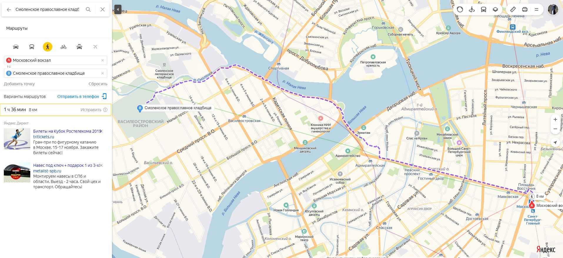 9 июля 2019 1 час назад, Lapyshok сказал(а): Вы лёгких путей не ищете!Мне кажется это то очень далеко Ага, о том же подумала)) С Московского же вокзала? Яндекс сказал, что до Смоленского кладбища 8 кмчаса 2 идти пешком... Lapyshok сказал(а) спасибо Поделиться сообщением Ссылка на сообщение