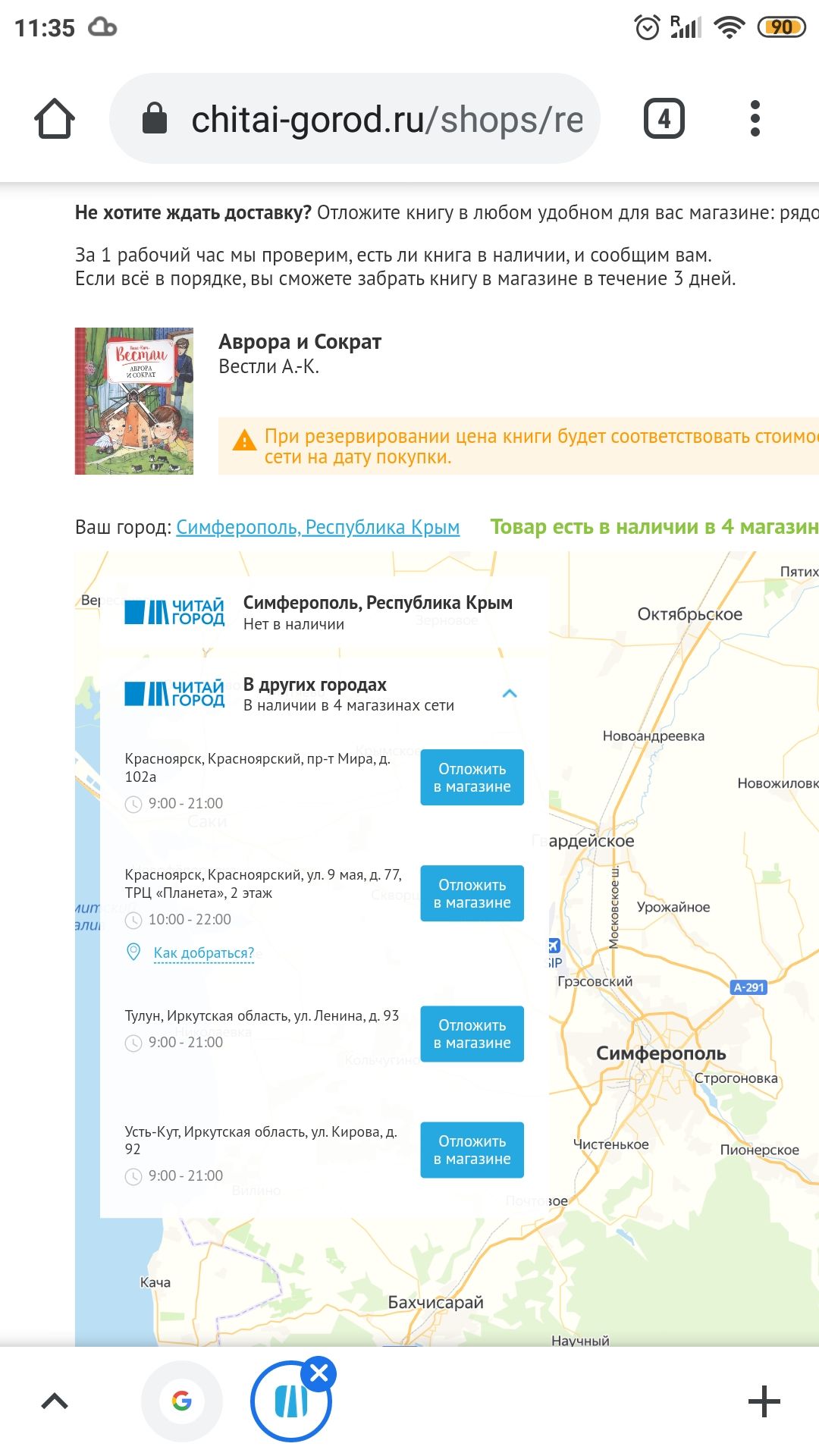 9 марта 2021 06.03.2021 в 11:39, tanya_mirymir сказал(а): Добрый день! Помогите пожалуйста, есть кто-нибудь из Красноярска, Тулуна или Усть-Кута? Очень хочу эту книгу, сама бы за ней поехала, были бы деньги на билет. Хелп! tanya_mirymir, Таня, вот в этом магазине есть https://price-pro.ru/product/knigi-vestli-anne-kat-avrora-i-sokrat-vestli-a-k/ , может они делаю доставку... Поделиться сообщением Ссылка на сообщение