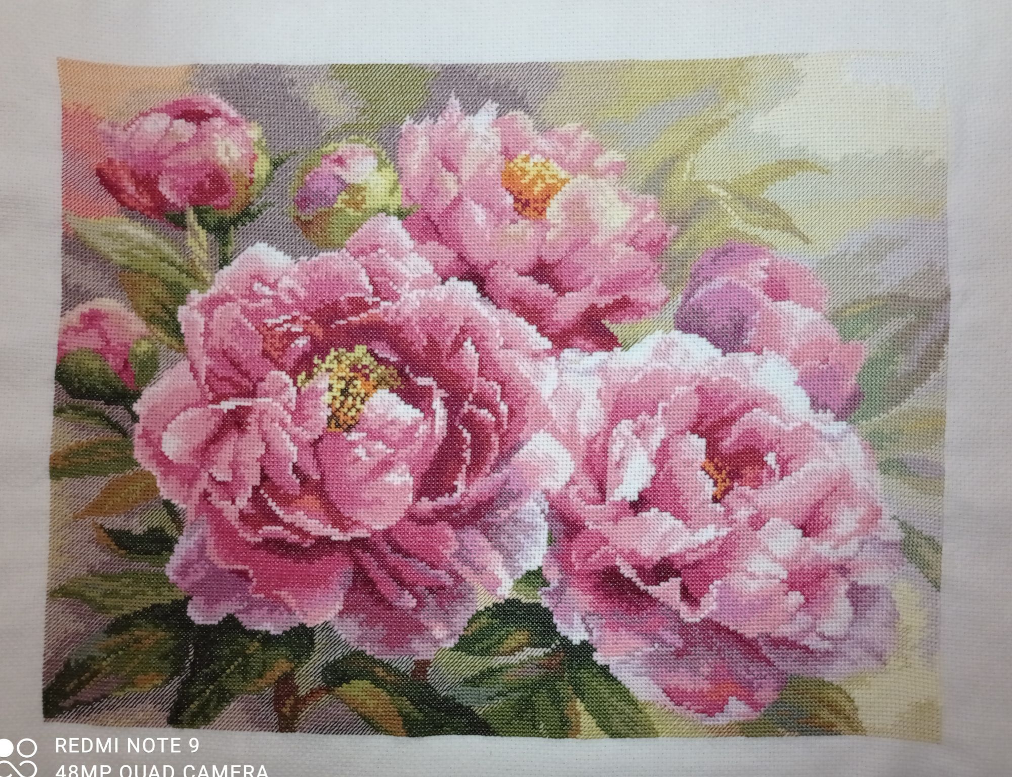 25 января 2022 23.01.2022 в 01:12, Графиня сказал(а): ФИНИШ ПИОНОВ!!! Сегодня завершила их вышивать! Постирала, погладила и оставила на гладильной доске высыхать! В роди бы 22 ноября было выложино первое кодовое слово. Если не ошибаюсь, то стартовала 22 ноября, а сегодня финиш пионов был! Ах, какие великолепные пионы! Чудесные цветы, вся серия изумительная, но пионы-особенно привлекательны! Графиня сказал(а) спасибо Поделиться сообщением Ссылка на сообщение