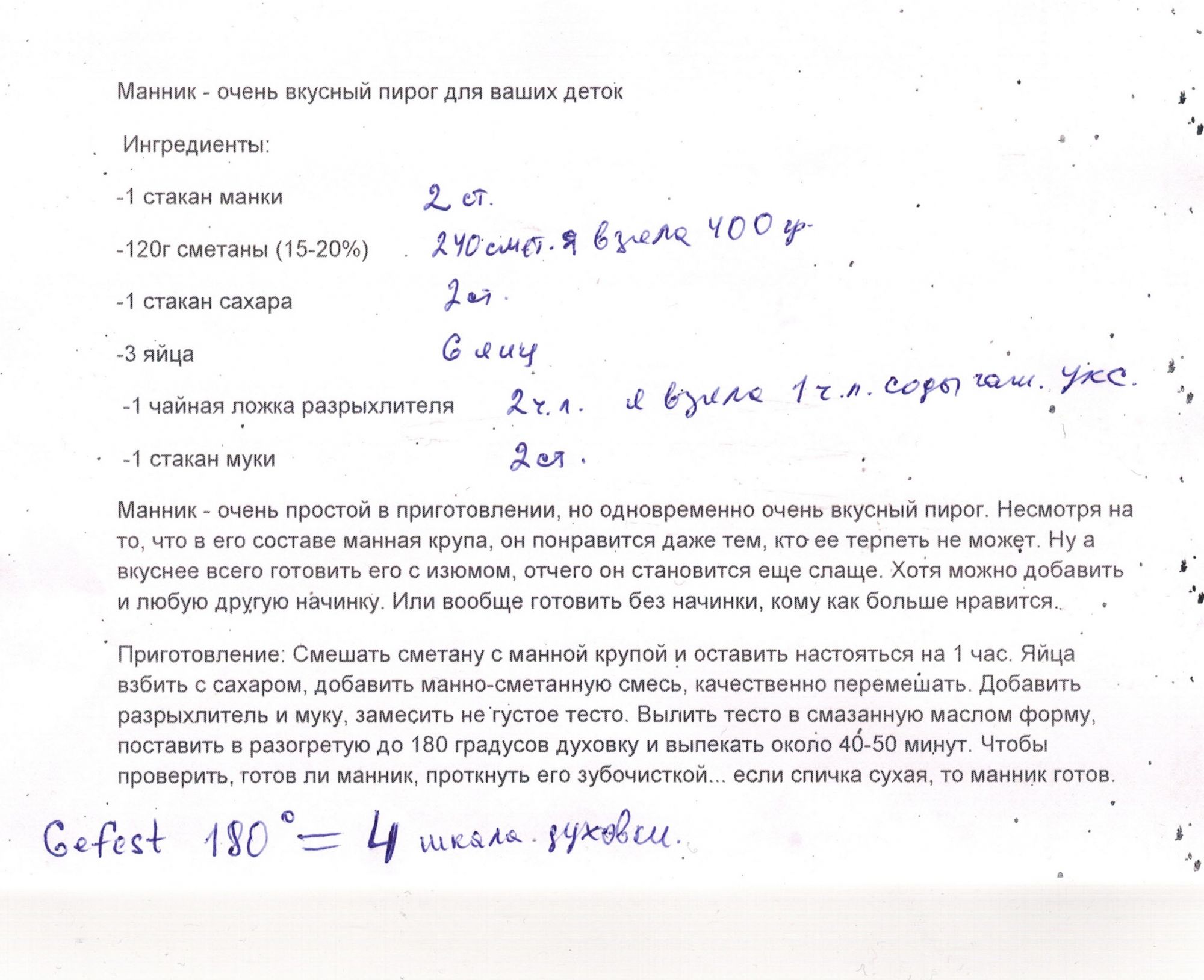 22 июля 2016 Девочки, спасибо большое!!!!!!!!!!!!!!!!!!!! Прочитала недавно в интернете рецепт пирога с манкой и сегодня решила его сделать! Вот рецепт этого пирога(там где дописано ручкой я изменила под себя делая 2-ую порцию, так-как для нашей семьи одной порции будет маловато.....): Ещё я добавила консервированных персиков. Если бы добавила больше то по моему было бы только вкуснее!!!!!!!!!!!!!! Вот фото того, что у меня получилось: Мне понравилось!!!!!!!! Можно ещё разрезать пирог горизонтально и промазать его каким -нибудь кремом с кислинкой(со сметаны может)!!!!!!!!!!!!!!!! Для себя решила, что этот пирог надо делать с кислыми ягодками, фруктами, так-как он очень сладкий(для меня)..... alexa412, Antarktida, ЛАДОМИРА и 22 других сказали спасибо Поделиться сообщением Ссылка на сообщение