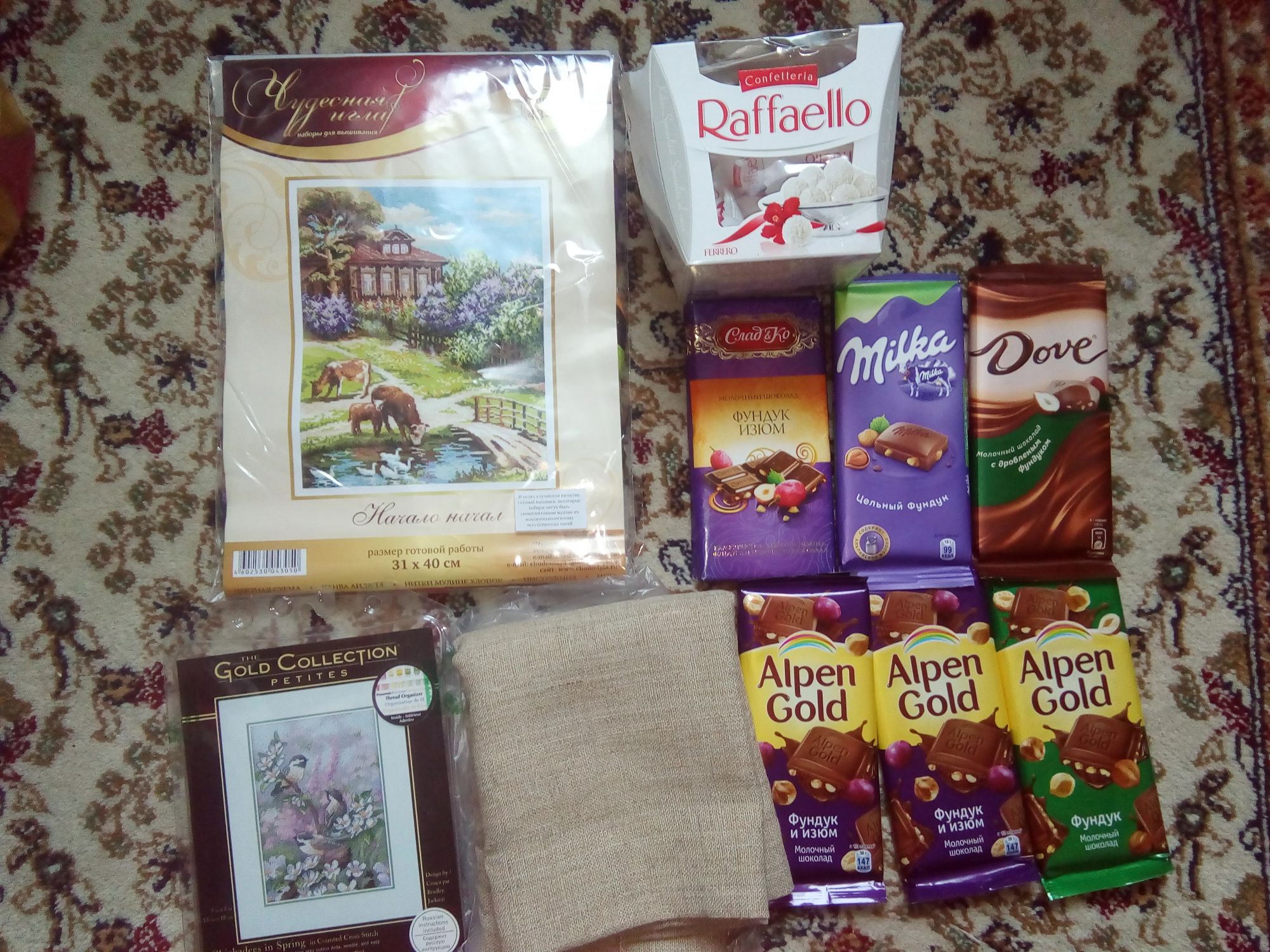 2 мая 2017 А теперь вышивальная и подарочная часть!!!!!!!!!!!! Свободный полёт не много ещё подрос: И я переключилась на новый процесс Матрёнин Пасад Зайчонок(подарочек-конфетка от Леночки aleksaA), я его ещё раньше не много вышивала(но не показывала), но тогда как-то не очень он у меня пошол, а сейчас так нравится его вышивать, что даже нанесённый рисунок не по клеточкам так не напрягает, УДИВИТЕЛЬНО) здесь вышиты полосочки в фоне: А здесь фон вышиваю: Вышивальная часть в роди бы всё... Дальше... Я сегодня получила вкусняшку от Ирочки Воздух, красивых 2-а выигранных наборчика, классная тканюшка и вкусяшки сладости!!!!!!!!!!!!! Ирочка, солнышко, ОГРОМНОЕ СПАСИБО за такую СУПЕРскую посылочку, за твоё щедрое-доброе сердечко!!!!!!!!!!!!! Пусть тебе воздастся во 100 крат больше!!!!!!!!!!!!!!!! оленек, aleksaA, Gala83 и 18 других сказали спасибо Поделиться сообщением Ссылка на сообщение
