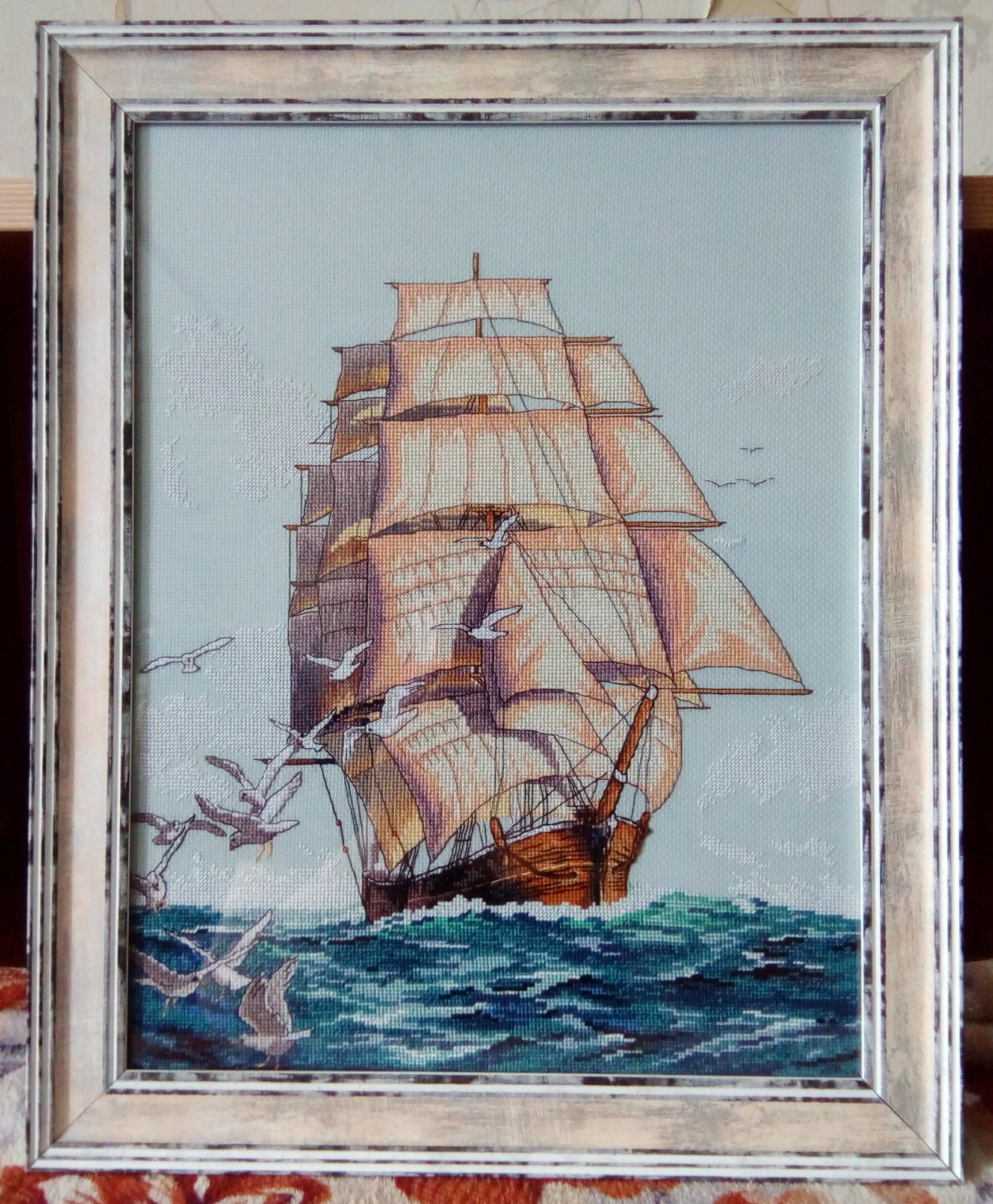 5 мая 2020 13.03.2020 в 04:42, Графиня сказал(а): Сегодня забрала оформленный парусник!!! Выняла из рамы натянутую вышивку и пришила канаты(наверное это якорные канаты) которые забыла вышить до оформления!!! Теперь я спокойна, что они на вышивке есть!!! Наташенька, восхищаюсь твоим выбором багета! Смотрится обалденно nata2017, Графиня, Полли и 1 другой сказали спасибо Поделиться сообщением Ссылка на сообщение