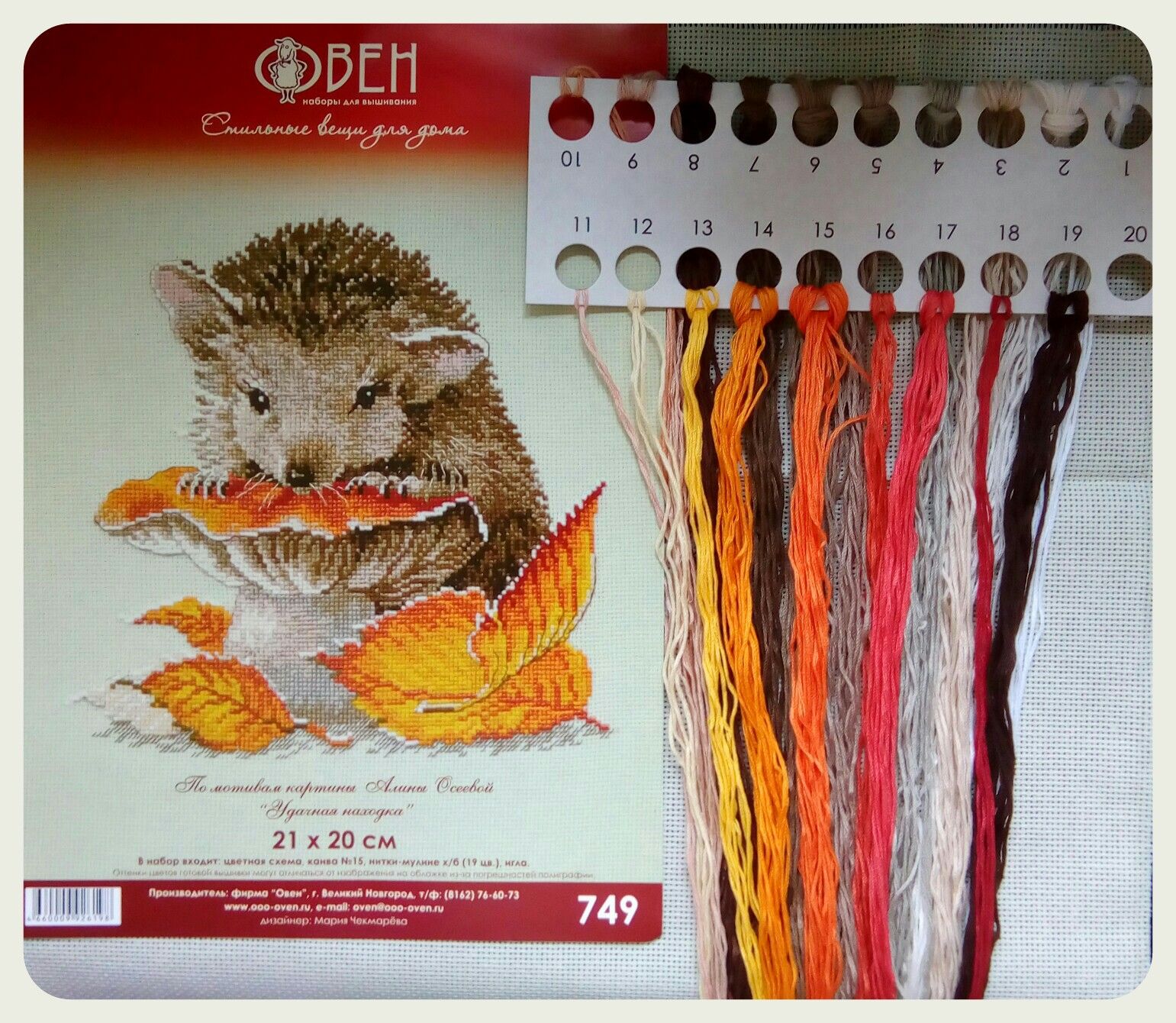 27 апреля 2021 Вышила я наборчик: "Удачная находка". Набор под номером 749 фирмы Овен по мотивам картины Алины Осеевой. Очень мне нравится этот ёжик и листочки с грибочком классные!!! На обложке заявлен размер 21х20 см. Ещё на один наборчик в закромах стало меньше!!! Очень меня радуют завершенные процессы!!! Нравится мне этот ёжик с грибочком и листочками!!! Красивая разработка!!! musya, татьяна0674, Любушка1985 и 30 других сказали спасибо Поделиться сообщением Ссылка на сообщение