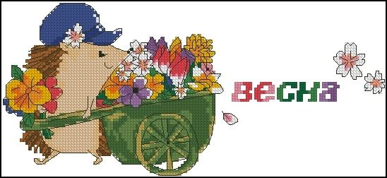 17 апреля 2020 Размер 150х175 крестиков, 32 цвета бесплатные. Ёжик везёт весну. Размер 135х60 крестиков, 20 цветов. Весенняя песня Поделиться сообщением Ссылка на сообщение