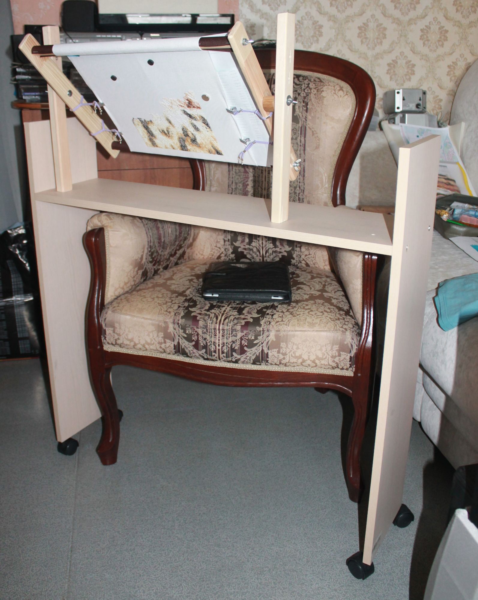 19 октября 2017 продолжаю неспешно вышивать Сову от Ланарте...до чего же приятно его вышивать было/стало муж сделал вот такую систему для рам на колёсиках, чтобы было удобно вышивать в кресле ещё будет дорабатываться) ЛАДОМИРА, BlueeYeS, Людмила Мизина и 15 других сказали спасибо Поделиться сообщением Ссылка на сообщение