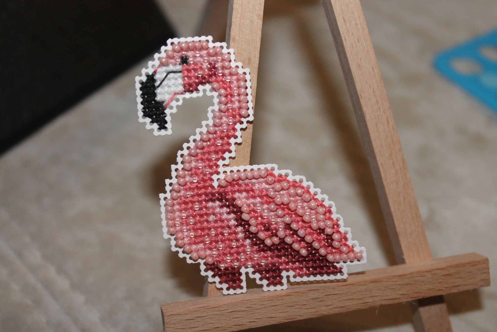 18 сентября 2018 Всем доброго здравия! Вот и готов мой очередной маленький процесс. На сей раз по набору Милл Хилл из коллекции Весенний букет "Фламинго"( для дочери), MH18-0105. В наборе как всегда перфорированная бумага с одной стороны белая с другой-бледно розовая, так же бисер разного размера и стеклярус, иглы тоже есть, но одну пришлось заменить на меньший размер. Выполняется работа крестом в три нити и есть малость бэка, ну прям чуть-чуть, а бисер пришивается крестом и полукрестом в две нити. Конечно же процесс доставил много приятного, особенно процесс пришивания бисера)) э-э-э малость подвзбешивает вырезание, пластик всё же лучше вырезается), а в целом нравится. Как бы хотелось, чтобы они, всё же, научились делать заднюю сторону! Набор задуман в виде магнита, но у меня будет подвеска, как только прикуплю фетр подходящего цвета и плотный, но тоненький шнурочек) и фотки На сим откланиваюсь. Всем хорошего настроения, крепкого здоровья! nogres, Lenara, ОльгаВл и 17 других сказали спасибо Поделиться сообщением Ссылка на сообщение