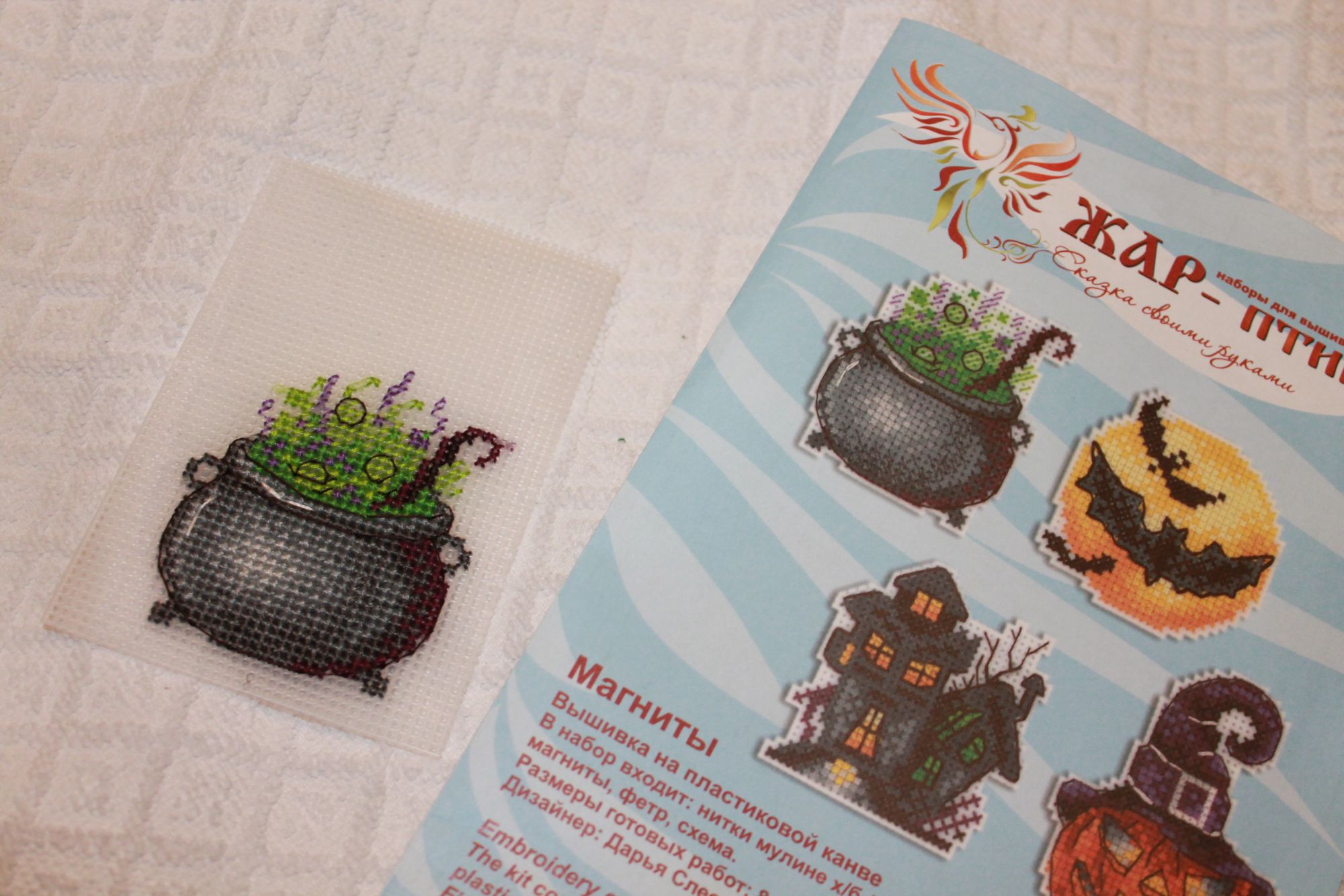 2 октября 2019 Всем доброго здравия В очередной раз пропустила недельный отчёт и сегодня будет много фоток С чего бы начать, а начну-ка я с новых-завершённых и старых-завершённых, и новых процессов дочери) главное не запутаться))) Дочь с пластиковой канвой сроднилась) она вышивает, я же вырезаю и сшиваю или приклеиваю фетр) Завершён Домик тыква по карточке Готов Оленёнок от МП Студия А Пряничный домик на стадии сшивания И приступим к новенькому. Прошу любить и жаловать Ворона из каталога 2019 "Осенние идеи" . В место канвы взяли пластиковую, по ключу ниточки Гамма 8цв, но мы заменили на ниточки СХС. Крест и бэк. И получилась эта красотка 9,5х6,5 см. И следом из этого же каталога Улитки. Так же на пластиковой канве. Мулине Гамму заменили на СХС, 15 цв., крест, полукрест и бэк. Размер готовой работы 10,5х11,5 см. Далее Весёлые страшилки магниты от МП Студия. В наборе пластиковая полупрозрачная канва, мулине 15 цв и 2 бленда из них, ч/б схема, белый фетр на заднюю сторону и магнит. И котёл уже готов И конечно же начат процесс на равномерке, а точнее на Мурано "Винтажный зелёный" из лимитированной коллекции. Весенний дракончик по схеме дизайнера Надежды Казариной. По ключу 26 цв дмс + 6 блендов из них, стежки: крест, полукрест в две нити; бэк в одну нить и в две, фрузики в одну нить. Размер готовой работы на 32 ct 20х21 см. продолжение следует... Светкин, Наталья2013, Egelia и 24 других сказали спасибо Поделиться сообщением Ссылка на сообщение