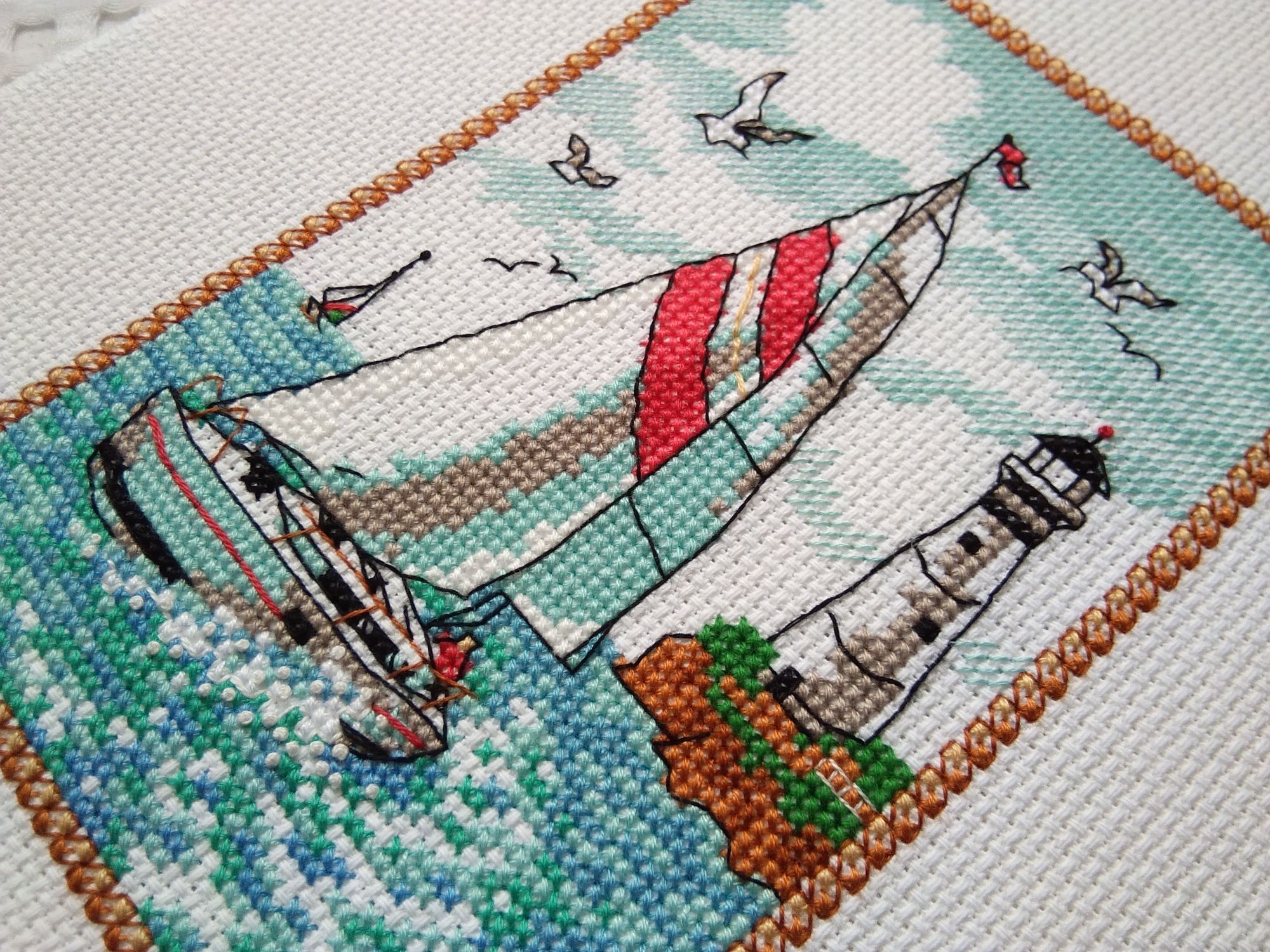 19 февраля 2021 Девчата, всем приветики Я тут с частично завершённым процессом Почему с частичным, потому что вышиты все крестики, полукрестики и проложен бэк. Осталось пришить бубенчик и вместо фрузиков пришить бисер. И главное, сделать мешок с кофе. Ну не нравится мне пришитый кусок мешковины А пока меня осеняет озарение и приходит вдохновение на пошив мешка, я начала новый процесс по набору Dimensions 6744, Sailing. Это простая серия. Набор давно снят с производства и мне просто повезло его купить) Готовую работу увидела у Яны Бебре в инстаграм и загорелась. Написала в инстаграм одной девушке и через минут 30 она мне написала, что есть и он у меня. Я не любитель раритетов и американцев, сугубо из-за их линяющих ниток. У меня потекло 5 цветов: 2 красных, 2 коричневых и 1 серый. Два красных легко подобрала по палитре dmc - это 347 и 3705, серый приблизительно 3895, а с коричневыми пока не очень. Зато очень порадовала канваПерейдём к технической характеристике) В работе 13 цветов, крест, полукрест, бэк, фрузелки. Блендов нет. На сим откланиваюсь! Всем крепкого здоровья и хорошего настроения irinka-mandarinka, nadyusha, ОльгаВл и 14 других сказали спасибо Поделиться сообщением Ссылка на сообщение